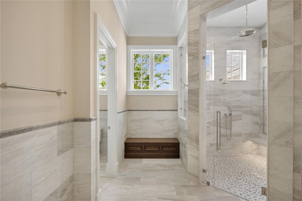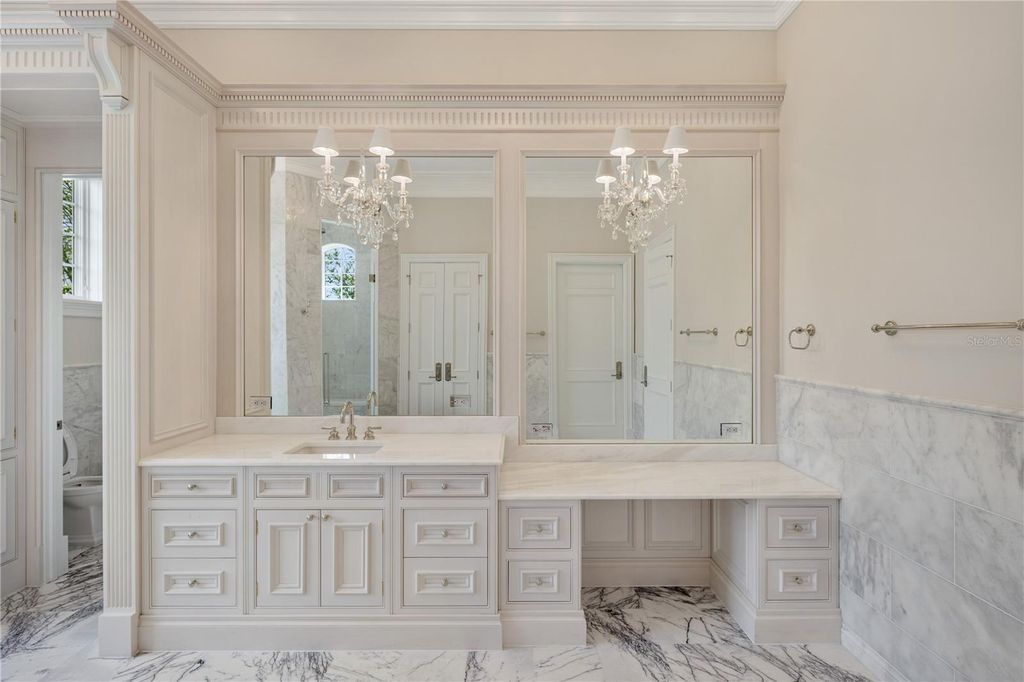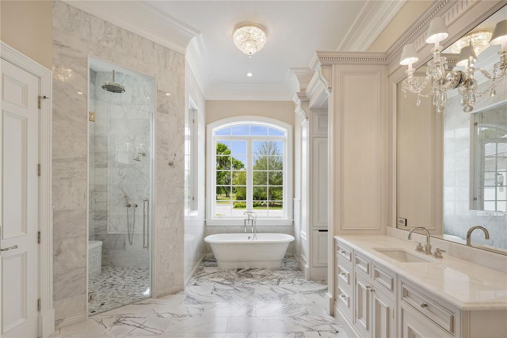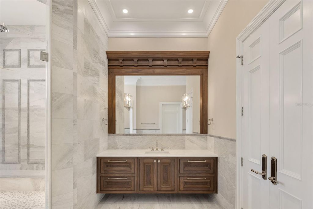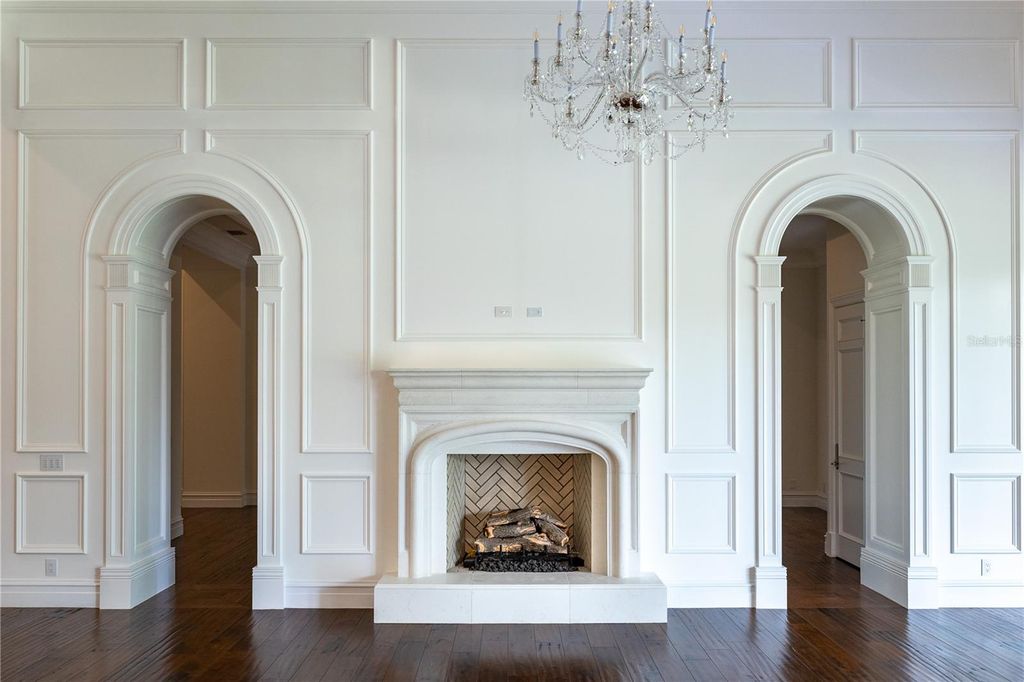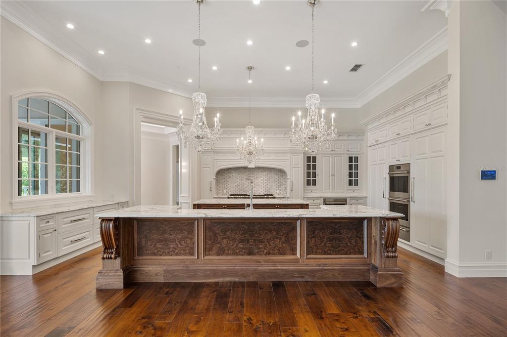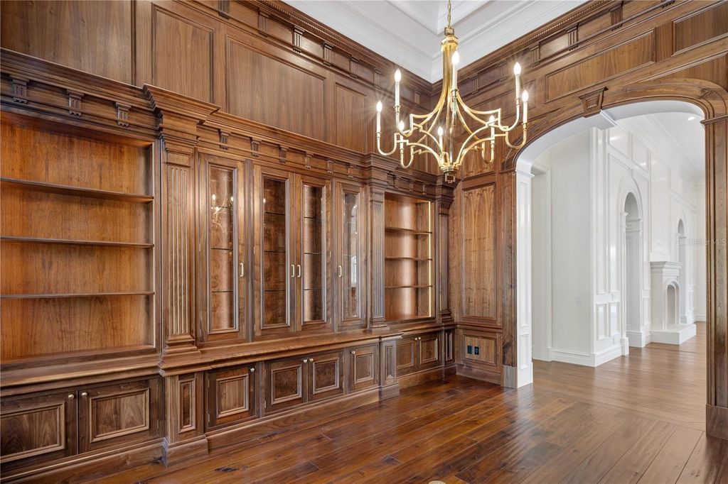 Stunning New Construction by Equestrian Luxury Homes: An Architectural Masterpiece Nestled in a coveted locale, this magnificent model home, built by Equestrian Luxury Homes and designed by the award-winning Roberts Design Group, epitomizes custom luxury and sophisticated design. With an unwavering commitment to quality, this estate features exquisite details and unmatched craftsmanship. Enter through a custom designed marble foyer, leading you through spaces enriched with Italian and lilac marble and topped with quartz, granite, and marble countertops. Floors in living areas and bedrooms are laid with hand-scraped hardwood, while hand-painted custom cabinetry and polished nickel hardware enhance the aesthetic elegance. Experience grandeur as you enter the main living area, with 16' high ceilings, multi-layered custom crown molding, and expansive 28' folding glass doors that seamlessly blend indoor and outdoor living. The heart of the home boasts a gourmet kitchen with double islands and state-of-the-art appliances by Sub-Zero, Wolf, and Cove. The kitchen flows effortlessly into a spacious living room, making it perfect for entertaining. A luxury equestrian room with fine walnut cabinetry complements the sophisticated theme. Specialized entertainment is provided by a state-of-the-art, Rococo-inspired theater room featuring plush seating for eight and an elegant snack bar. The private walnut library exudes classic charm with European-style millwork alongside a secluded wine cellar for the connoisseur. Bathrooms feature frameless glass shower enclosures, luxury fixtures including rain heads, and bespoke dressing rooms with leather accents, creating a spa-like atmosphere. The lanai and outdoor kitchen are crowned with walnut ceilings, providing a lavish space for al fresco dining and relaxation. The property boasts a fully hardscaped entrance and a driveway leading to a spacious four-car garage. Advanced home automation includes a full house Crestron sound and lighting system, ensuring every element is controlled at your fingertips. This home is a true sanctuary, offering a blend of luxury, comfort, and technology, ideal for the discerning homeowner looking for an extraordinary living experience. Welcome to a life of luxury and elegance in this architectural gem.