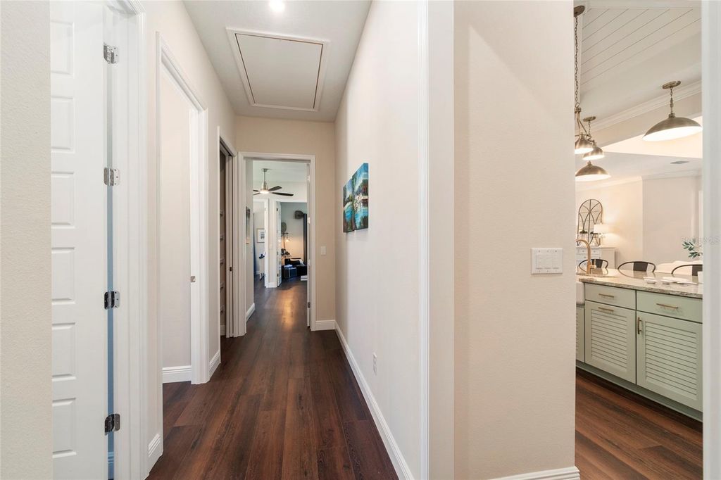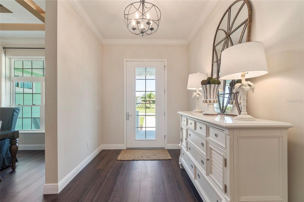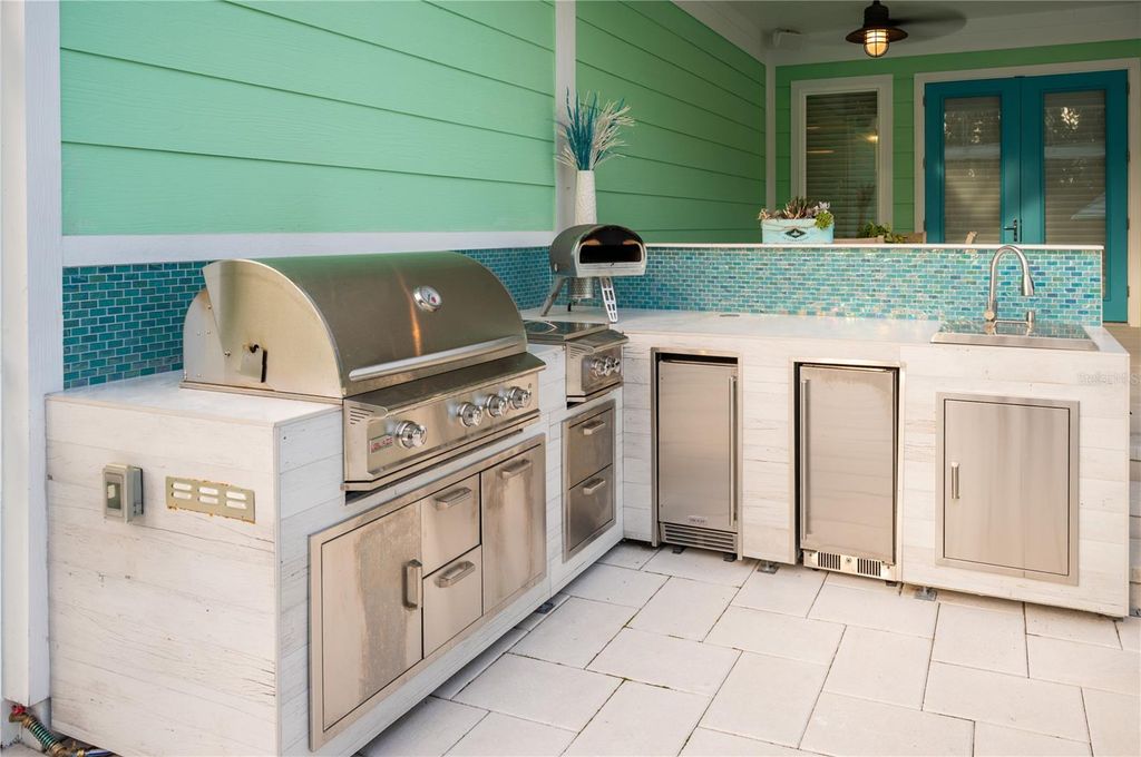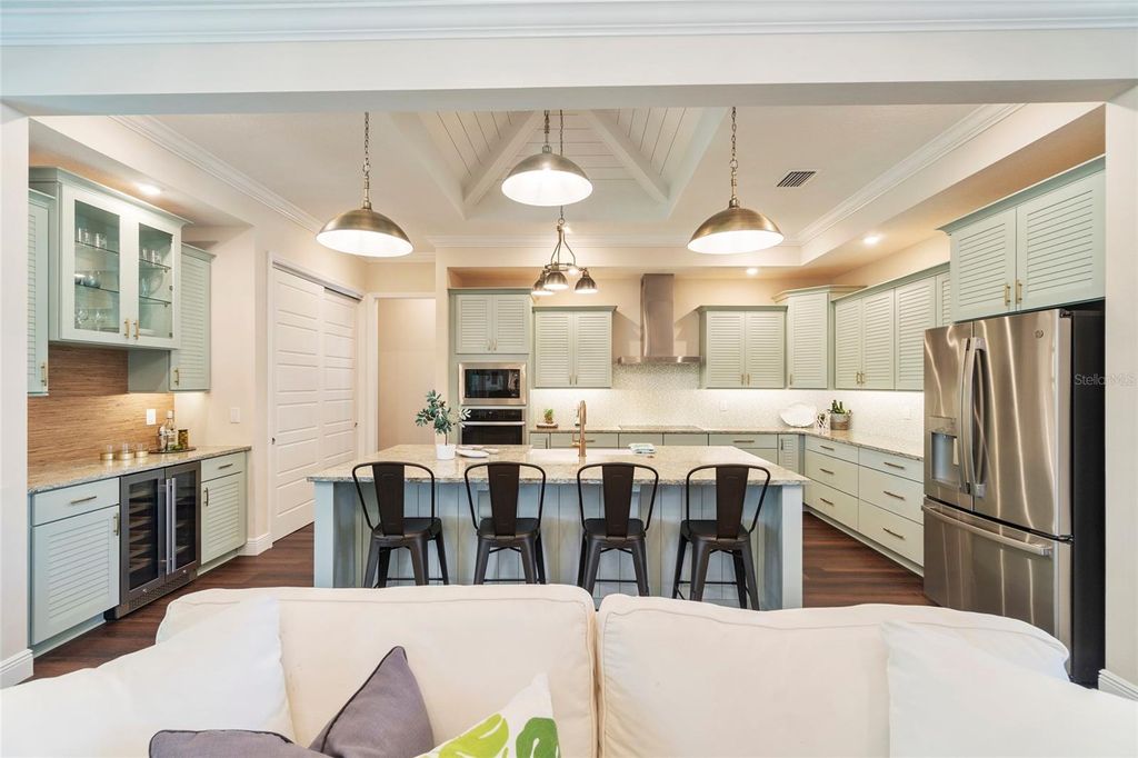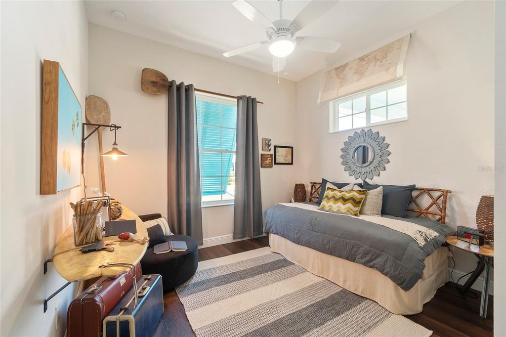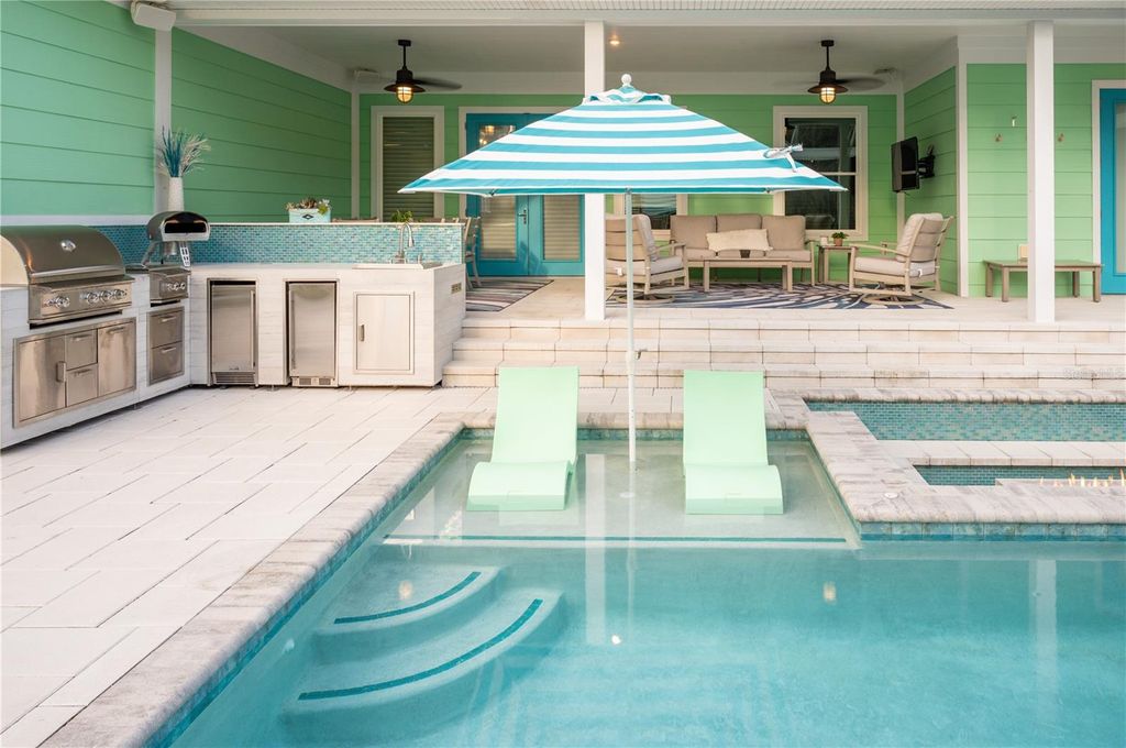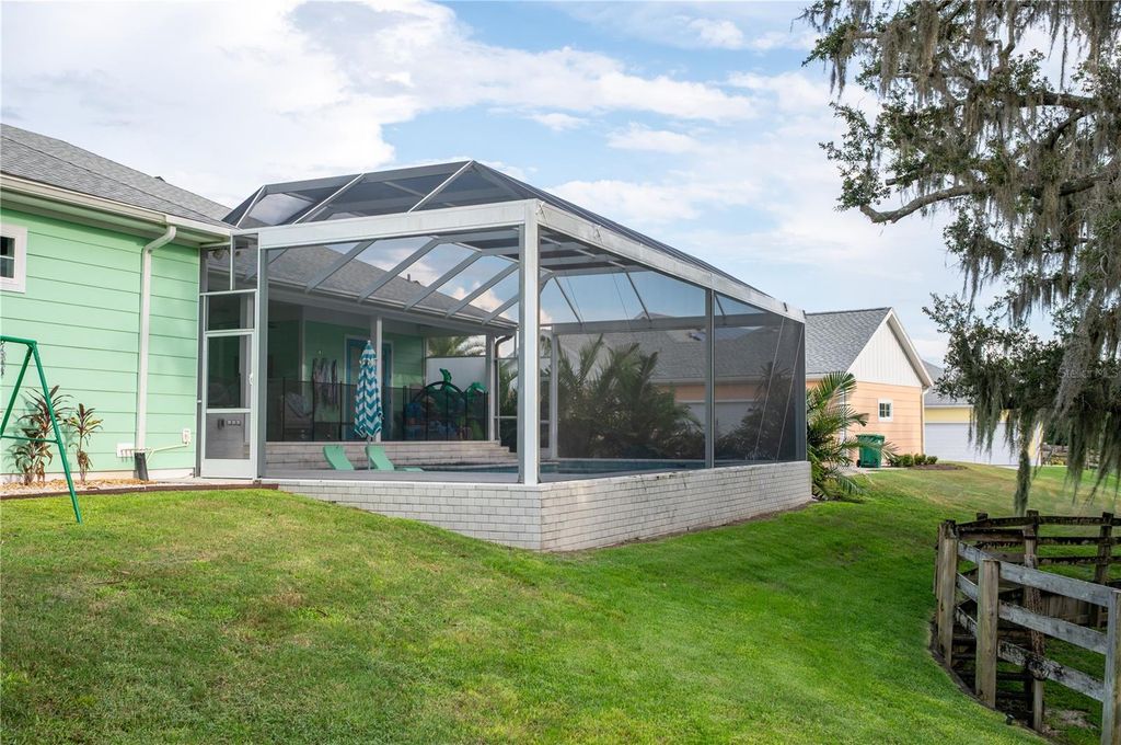 A Home That Speaks Your Language of Luxury. If your lifestyle demands excellence, this Duval model in Green Key Village rises to the occasion with bold design, expansive living space, and a host of high-end features. Boasting 4 bedrooms, 3.5 bathrooms, a versatile flex space, and an impressive 4,395 total square feet, this home is tailored for those who love to entertain, host extended family, or simply indulge in everyday luxury. Step into a grand interior where tongue & groove wood ceilings with exposed beams, a linear gas fireplace with stacked stone surround, and custom twin built-ins set the stage for stylish living. The chef's kitchen is a showstopper with shutter-style maple cabinetry, Cambria quartz countertops, a cast iron farm sink, and top-of-the-line appliances, including a wine and beverage cooler. Every interior door is 8' tall solid core, and the luxury plumbing and lighting fixtures elevate each space. The owner's retreat is a private sanctuary featuring French doors that open to a serene lanai, remote-controlled silhouette and blackout shades, and a spa-inspired bathroom with a massive luxury shower. Additional comforts include dual water heaters, a whole-home water softening system, epoxy-finished garage flooring, and pre-wired outdoor surround sound. Outside, this home truly shines with a resort-style pool (2023) featuring a lap lane, sun shelf, and XL flush spa, all enclosed by a picture-frame screen cage and surrounded by lush, tropical landscaping with a French drain system. Entertain year-round at the custom Blaze Professional Series outdoor kitchen complete with infrared burner, rotisserie, side burners, ice maker, refrigerator, and sink all powered by an in-ground propane system. Enjoy evenings around the sunken firepit with built-in seating, and celebrate the seasons with custom roofline holiday lighting. SOLAR-POWERED FREEDOM Built with sustainability and durability in mind, this home includes a solar array system offering little to no energy bills, 2x6 frame construction with spray foam insulation, 40-year CertainTeed architectural shingles, insulated garage doors, and plantation and Bahama shutters on the front elevation.This home's state-of-the-art solar system generates more energy than it uses "” keeping the average electric bill less than $50 / month. A 20 kW whole-home battery backup keeps life running smoothly through any outage, powering your A/C, heat, and appliances even if the grid goes down. True independence, year-round comfort. Life at Green Key means being part of a vibrant, close-knit community. Enjoy monthly socials, pool parties, game nights, book clubs, and ladies' luncheons, plus two big annual celebrations hosted by the neighborhood's Social Committee. There's always something happening and new friends to meet. RESORT-STYLE AMENITIES include a zero-entry pool, pickleball and basketball courts, a dog park, fire pit lounge area, and community garden "” everything you need to relax, recharge, or play the day away. Schedule your private tour today, your slice of paradise awaits!