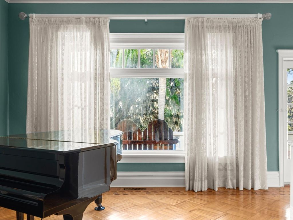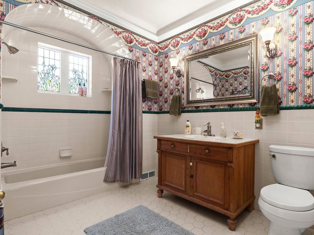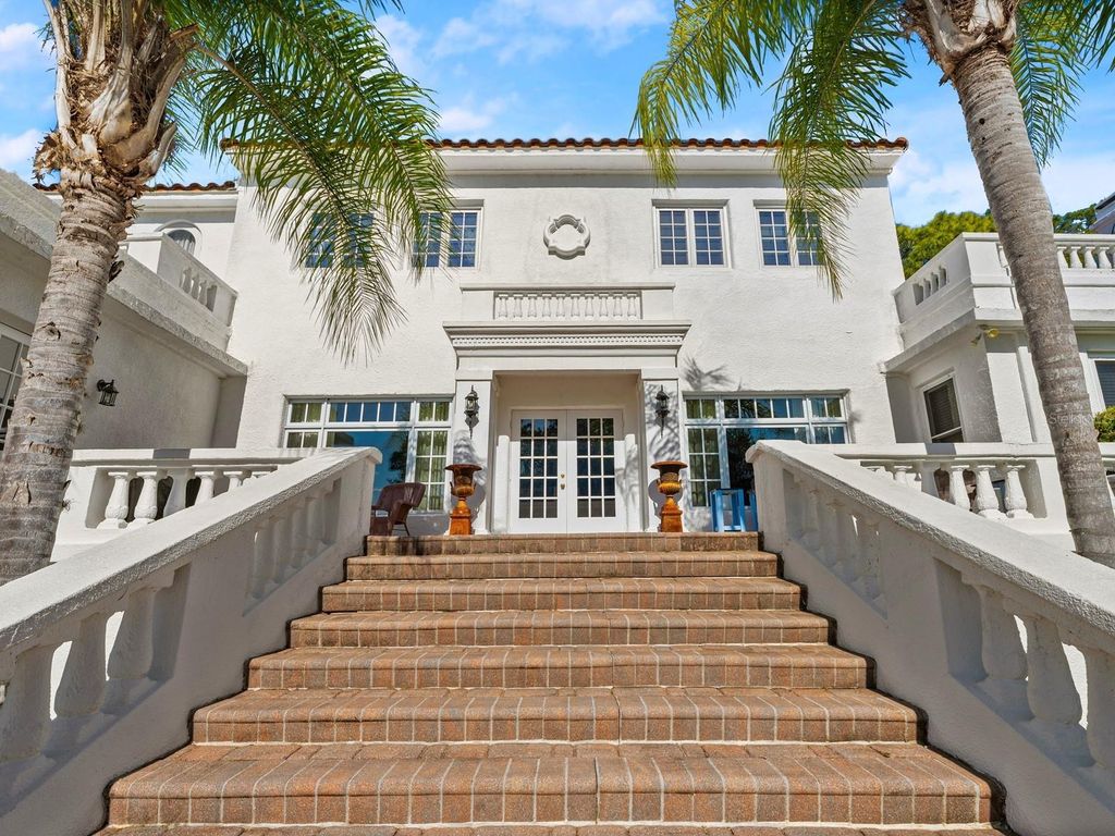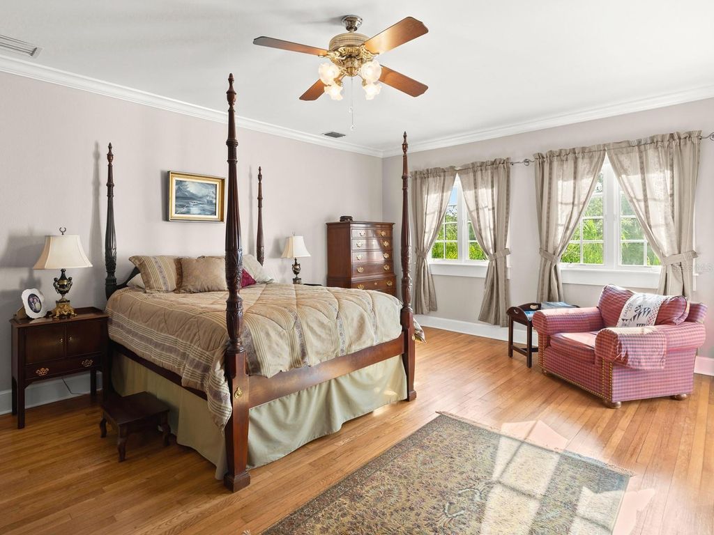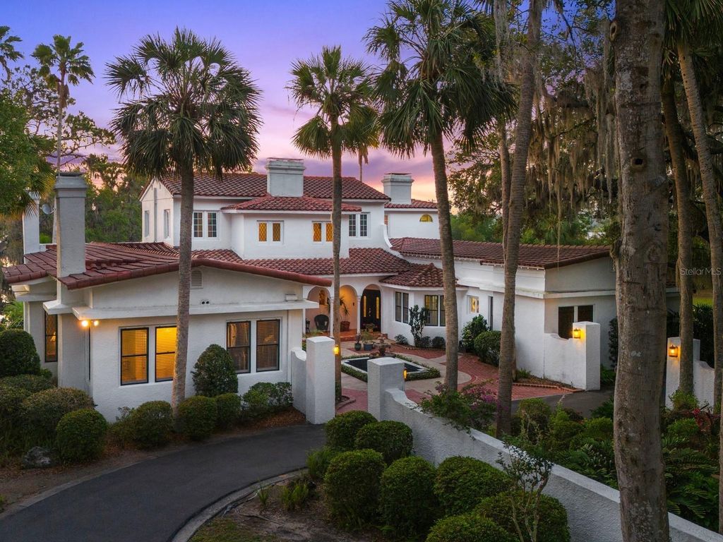 Come, step back into time to a magnificent waterfront Mediterranean estate that is perfectly positioned on 6 acres and 442 feet of direct frontage on pristine spring fed Lake Dalhousie where residents enjoy swimming, fishing, boating, water skiing and kayaking. A true retreat from the city life and one of the prettiest areas in Lake County. It enjoys the best of both worlds, uncrowded, peaceful country living, but close to shopping, major highways and the beaches. The grounds are enchanting but become sublime as you take in the spectacular early morning sunrise and golden hour that reflects on the home in a rich fairy tale glow. Stroll through the grounds where you will find stately grandfather oaks, bricked walkways, 1926 domed pavilion and emerald lush gardens all irrigated from the lake. You will notice the original 4-story water tower which, is no longer in use but stands tall capturing attention, making it one of the homes most iconic features. Commissioned with grandeur and built to endure in 1926 by Dr. Edgar J. Banks, a noted archeologist who began coming to Eustis in 1916 and today, this spectacular Mediterranean is ready to celebrate her 100th year old birthday. A peaceful courtyard entry with a stately fountain, loggias and Mahogany glass door entry add to the excitement and hint at the elegance within. Approximately over 6,200 square feet of living area consist of 2 master suites, 4 guest bedrooms and 5 1/2 baths. Upgraded plumbing and electric, volume ceilings, graceful arches, beautiful oak wood flooring, ornate fireplaces, large baseboards, iconic chandeliers, original Tudor style windows and newer windows that include Pella, Andersen, Marvin and Jeld-Wen, blend period charm with newer and modern conveniences. The grand ballroom overlooks the lakefront and features large parquet flooring and cherry wood inlay. The volume ceilings are graced with beautiful chandeliers, decorative hand carved plaster border and showcased with a handsome Artisan European gas fireplace. French doors open wide to the outdoor terrace which overlooks the 20x40 inground pool with stone paver decking, and mesmerizing views of the lake. The formal dining room features parquet flooring, Tudor style windows, coffered ceilings and original gas fireplace with a white mantle that has been delicately carved with the words Dolce Far Niente, meaning Sweetness of Doing Nothing. The generous kitchen, breakfast room and family room overlook the lakefront and have been completely redesigned with oak flooring, Quartz countertops, stainless steel appliances, French Country cabinetry and marble backsplash. The exterior back of the home stands tall and magical and features a magnificent focal point, designed with an abundance of white balustrades, the 20x40 inground salt pool, a terrace that spans the back of the home and a private master suite second story balcony. Perfectly designed for grand scale entertaining or tent the lawn for a beautiful outdoor wedding. The back yard features a gentle slope to the lakefront with long extended dock and a boathouse that currently houses a 21-foot boat and room for another. The main house features a 2-car garage, and another 4-1/2 car garage was added to the 4-story water tower. Other highlights include a very clean and neat large basement with upscale Kinetico water system and other mechanicals. This is a rare opportunity to own an original and architecturally stunning Mediterranean period home that seldom comes to market.
