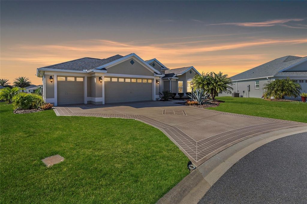 One or more photo(s) has been virtually staged. Welcome Home ! Price improvement for this amazing Laurel Oak model conveniently located in The Village of Pine Hills. New Price $ 825,000.!! You'll be amazed at this spacious 3 bed 2 bath hom. It is in pristine, like-new condition. Situated in a cul-de-sac and sitting high on an oversized lot large enough for a pool/spa. Curb appeal is evident as you approach the painted driveway, custom landscaping and large front entry. Inside you'll find an open floorplan with dining, living, kitchen, island seating and eat-in kitchen nook spaces all overlooking a sprawling enclosed rear lanai. This spacious lanai has room for plenty of outdoor entertaining options and is air-cooled for year-round enjoyment. Step out onto the open-air patio to BBQ or enjoy fresh air and a view of The Villages. The entire home is presenting a pleasant palette of fresh neutrals in tile, luxury vinyl plank flooring and wall tones. Crown molding accents the high volume, vaulted and tray ceilings throughout. Kitchen boasts rich cabinets with pullouts and custom lighting. The home includes a Pegasus whole house water filtration /softening system to help keep all the appliances & fixtures clean of mineral deposits. The spacious laundry room is enhanced with lots of cabinet storage and an interior utility sink. The garage is 2 car + golf cart garage - 24' deep for extra parking space and is immaculately maintained with epoxy flooring. Come and see this lovely home today !