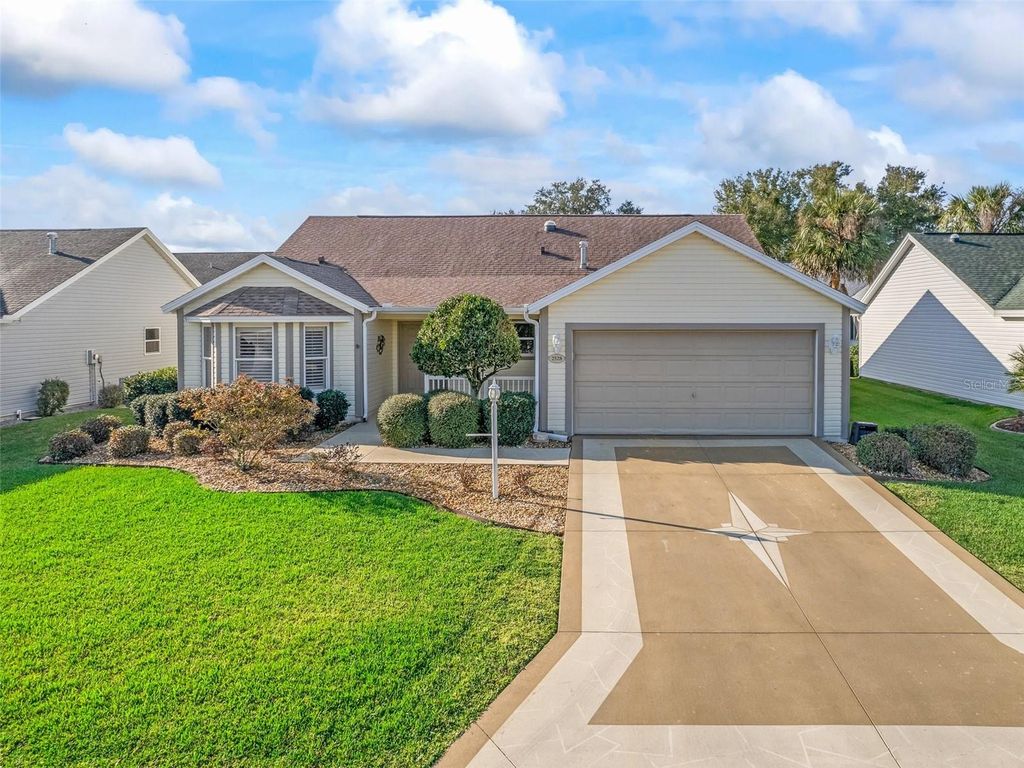 One or more photo(s) has been virtually staged. Welcome to this ever popular Cypress Designer Model, located in the village of Santiago. Greeted by crisp landscaping and a beautiful color coated driveway, this home has been recently updated and is move-in ready. This 3 Bedroom, 2 Bath, SPLIT FLOOR PLAN home offers 10' CEILINGS throughout, ENGINEERED HARDWOOD FLOORING, HAND TROWELED CEILINGS throughout, PLANTATION SHUTTERS and SOLAR TUBES for that added natural light. The spacious, well designed Kitchen hosts an eat-in Breakfast area framed by a Bay Window, Solid Wood Cabinetry, Breakfast Bar, Custom Tiled Backsplash and QUARTZ COUNTERTOPS. The airy Living Room is open to the Dining Room and the enclosed Lanai, perfect for family and entertaining. The Master Suite boasts a Double WALK-IN CLOSET, DUAL SINK VANITY, QUARTZ COUNTERTOPS and a WALK-IN SHOWER. Spacious, INSIDE LAUNDRY including the Washer and Dryer. The extended 2 Car Garage is perfect for extra storage and features a new WiFi compatible Garage Door Opener. Newer Roof-2018, Hot Water Heater-2021, HVAC-2010 and NO BOND! With Southern Trace Plaza, Spanish Plaines Shopping Center, Lake Sumter Landing and Spanish Springs Town Square nearby, shopping, dining and recreation opportunities are just minutes away!