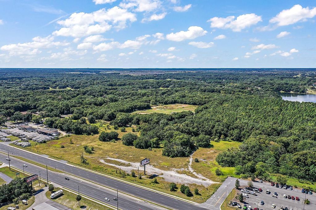 13.28 Acres w/ 860 feet highway frontage on US 27/441, the only 6 Lane Highway through the Villages, Florida. Next door neighbor to one of the largest Buick/GMC dealers in the Southeast. Virtually the only piece of vacant land of this size in the area which is totally on level ground, at roadside eye level. Can be seen from 1000 feet away, coming from either direction. City utilities available. St Johns Water Management permit obtained, to expedite build out. Massive billboard highly visible, provides annual income. Likely eventual Traffic light at northeast corner. Nearly 30,000 vehicles pass daily. Zoned PUD-Industrial with C-2 uses also allowed. Endless possibilities!!! All information is believed to be accurate and correct but not guaranteed or warranted and should be verified by buyer to their satisfaction.