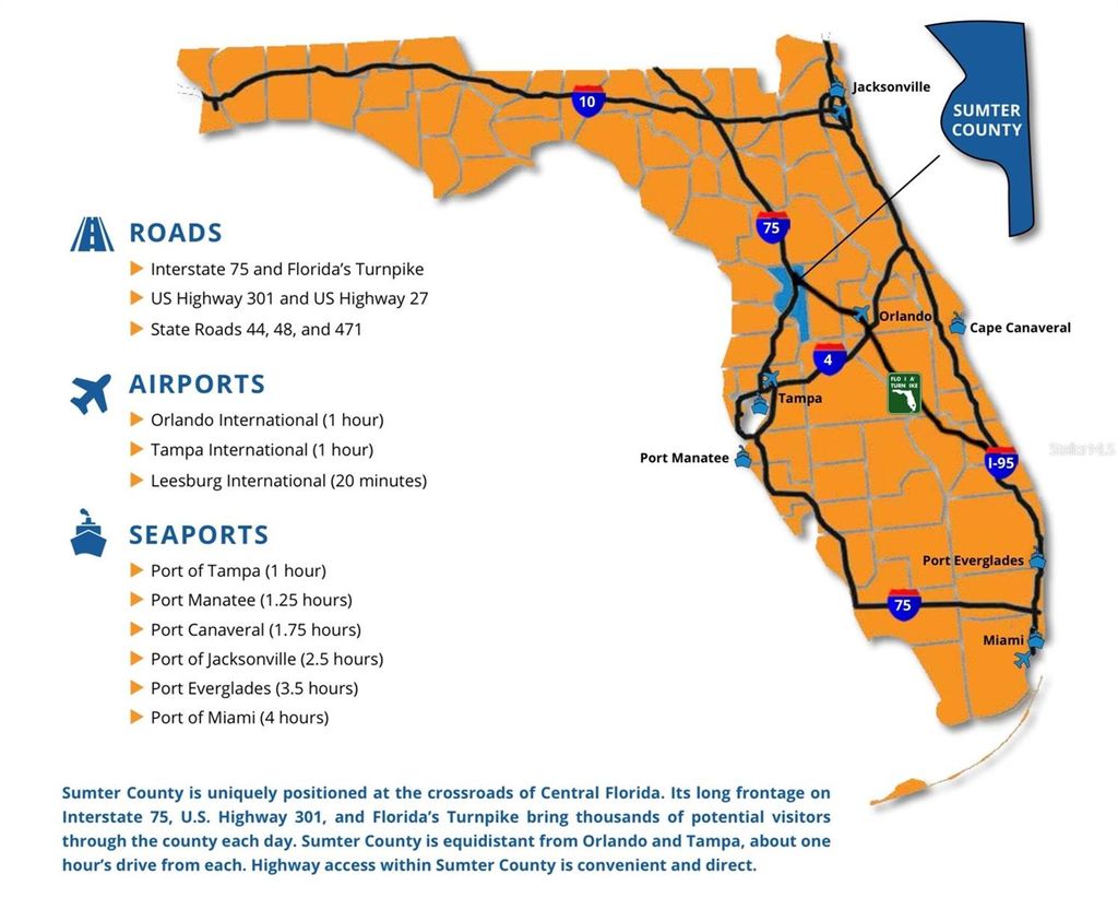 Current Industrial zoning already in place. COUNTY DESIGNATED ECONOMIC ACTIVITY CENTER. If potential had a physical location this would be it. Heavy industrial zoning across the street. Commercial zoning as adjacent use. Future land use could be potentially converted to heavy commercial for the right project and end user. Almost 27 acres with 450 feet of frontage on SR 471. Possible small access to HWY 50 after DOT expansion. 3 parcels being sold together. Currently the property is only serviced by a residential well and the septic system attached to the residence on the property. High traffic area with future growth in all directions. Average daily traffic count in this area can exceed 14,000 vehicles per day. Please do not go on-site without an appointment. The property is owner occupied. Proof of funds required for offer submission. Sumter County is a pro-business county with an emphasis on manufacturing, distribution and agribusiness as targeted industries. Commute to Ocala, Tampa, Orlando or Lakeland in approximately 1 hour. Information deemed reliable but not guaranteed. Buyer or Buyers agent to verify dimensions and zoning information. Site visits are available by appointment only 7 days a week with 24 hours notice. For more information, call today.