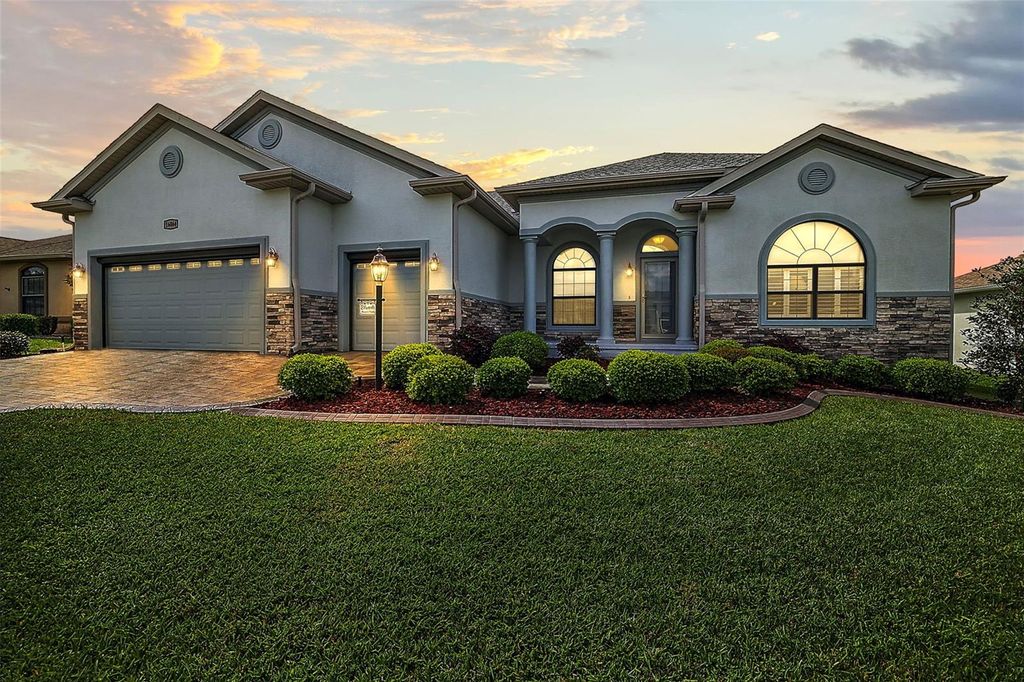 Motivate Seller!!! This home is Priced to sell !! Its loaded with upgrades and beautiful finishes. Step into this Cedar model home and prepare to be captivated by its custom upgrades and impeccable design. As you approach, the stacked stone accents on the front facade and the meticulously landscaped surroundings set a tone of elegance and curb appeal. Upon entering the home, you notice the 10ft high ceilings, and open concept gives you the feeling of grandeur. To your right, you're greeted by a stunning office space adorned with built-in wooden cabinets, a functional desk area, and an inviting window that fills the room with natural light. The tile flooring adds a touch of sophistication to the space. The French Doors can be closed for privacy. The heart of the home unfolds into an expansive open-concept living room, kitchen, and dining area, perfect for hosting gatherings and entertaining guests. The kitchen features granite countertops, premium Maple, Wellborne cabinets with soft-close doors and drawers, and a generously sized island for culinary creations. Not one, but two Florida rooms providing additional living space to enjoy the outdoors in comfort and style. The first boasts custom blinds, ceramic flooring, and tall doors with built-in screens, while the second provides a waterproof retreat with outdoor screens, tile flooring, and a canvas waterproof top on the Birdcage. Retreat to the spacious primary bedroom with its luxurious en-suite bathroom, complete with dual sinks, a relaxing tub, a glass shower enclosure, and a separate water closet for added privacy. The two additional bedrooms and bathrooms are thoughtfully situated on the opposite side of the home, ensuring tranquility and convenience for guests or family members. The garage accommodates two cars and a golf cart, with motorized screens adding versatility to the space. Inside, you'll find two separate water heaters, each catering to different sides of the home's hot water needs for optimal efficiency. Throughout the home, plantation shutters, custom blinds, and internal blinds on the doors enhance both style and functionality. With its myriad custom features and thoughtful design elements, this Cedar model home is sure to exceed your expectations. Schedule a showing today and experience its beauty firsthand"”you won't be disappointed.