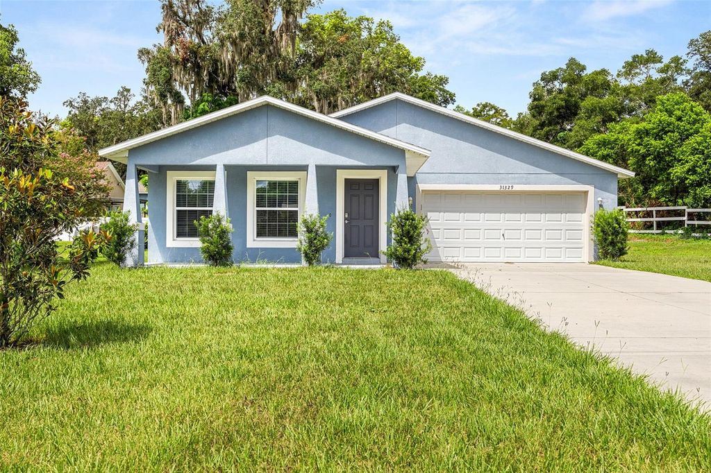 Spacious 4-bedroom, 2-bathroom RENTAL home located in unincorporated East Lake County, with no HOA restrictions and an attached garage! This charming property in Sorrento sits on over 1/3 acre, featuring an open floor plan with vaulted ceilings. The kitchen with stainless steel appliances overlooks a large great room, perfect for entertaining. Enjoy outdoor living with covered porches at the front and rear of the home. Additional flex space in the hallway offers versatile use. The interior laundry room for added convenience includes washer and dryer. Lawn care included with rent. Easy access to SR 429 (Western beltway).