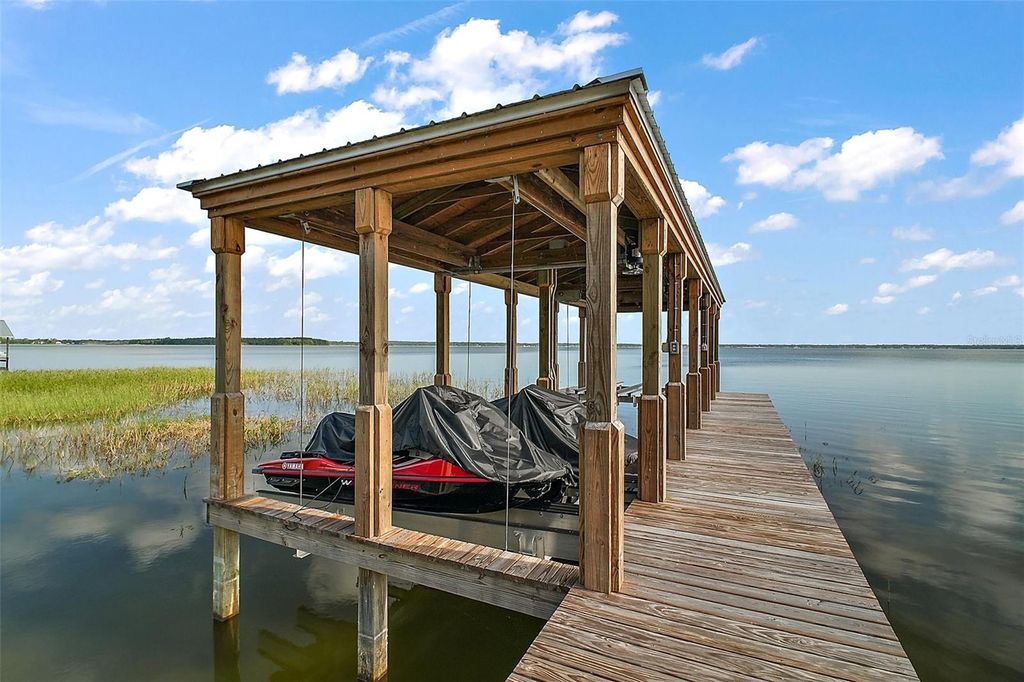 Motivated seller - make an offer and let's see if we can make it work. This is one of the most unique homes you will ever find/see - the owners were in the process of a complete make over to a very high-level upgrade of everything, they completed the inside and the deck, dock and boat house - then due to heath issues decided to sell this fantastic home. When you enter the entrance, you are in the Kitchen of a great room that looks like an artist just finished with the painting and color coordination of everything, yet it feels like you just entered your home (a very comfortable and warm home).This home feature top line appliances - unbelievable Lake Weir view (best I have ever seen) - High ceilings Large master bedroom suite - The deck is large and very interesting (you need to see to get what I'm trying to say - the dock and boathouse - the beach area is inviting and very nice, scenic and usable. There is only one way to experience all that this lake home offers, call and get a private tour. Truly a one-of-a-kind property