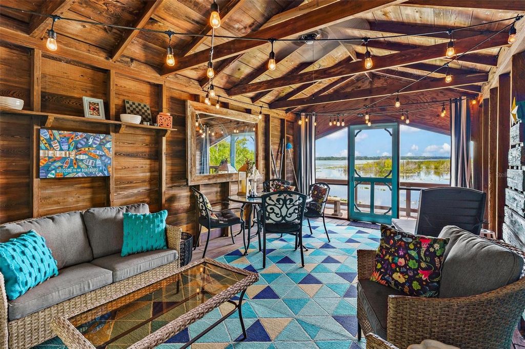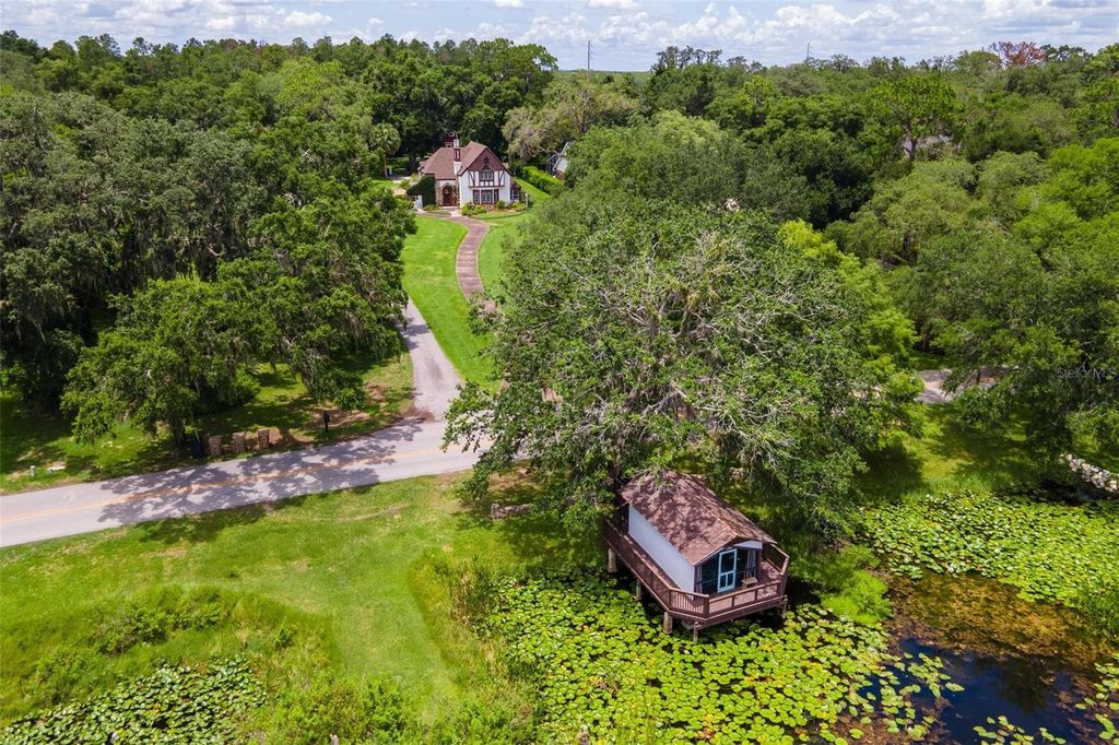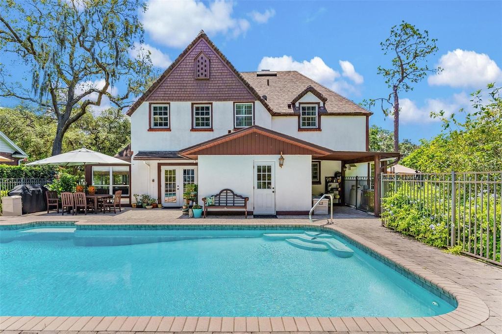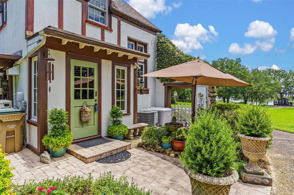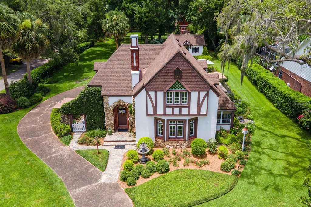 LAKEFRONT HISTORIC "ENGLISH TUDOR" ESTATE... POOL HOME! Start living your own fairy tale in this "one of a kind" residence with a separate full guest apartment PLUS a custom recreation boathouse on the water with electric & water! Beautifully maintained & restored, year built 1927 home located in prime location in the heart of central Florida. NEW ROOF& one of the HVAC REPLACED in 2024! Seller has added new French Casement & Double hung insulated windows with UV protection (except in Sunroom), updated plumbing & electric, installed energy efficient Hybrid electric hot water heater & tankless gas hot water in cottage offering a perfect blend of modern convenience. This spacious property features a 3-bedroom, 2-bath main house with a walk-in finished basement for additional storage, along with a separate 1-bedroom, 1-bath guest house"”ideal for extended family, guests, or rental income potential! Plenty of room for everybody to relax and entertain! Step outside to enjoy your private swimming pool, perfect for cooling off on warm summer days. While there's no garage, the previous concrete slab is there to park vehicles and ready to build a new one. The handyman will love the detached 2 story 16 x 16 Barn with electric! Your pets will run freely in their private fenced dog run area under the shade trees...Enjoy the gardens to include Cherry Laurel, Maple, Palms, Gardenias, Jasmine Shrubs and Vinery plus Fig & Key Lime fruit trees! Fish & entertain from your wrap around dock with room for small boat underneath your 19 x11 screened in boathouse! Great views of firework displays and rocket launches!! Don't miss your chance to own a piece of history with this rare find!