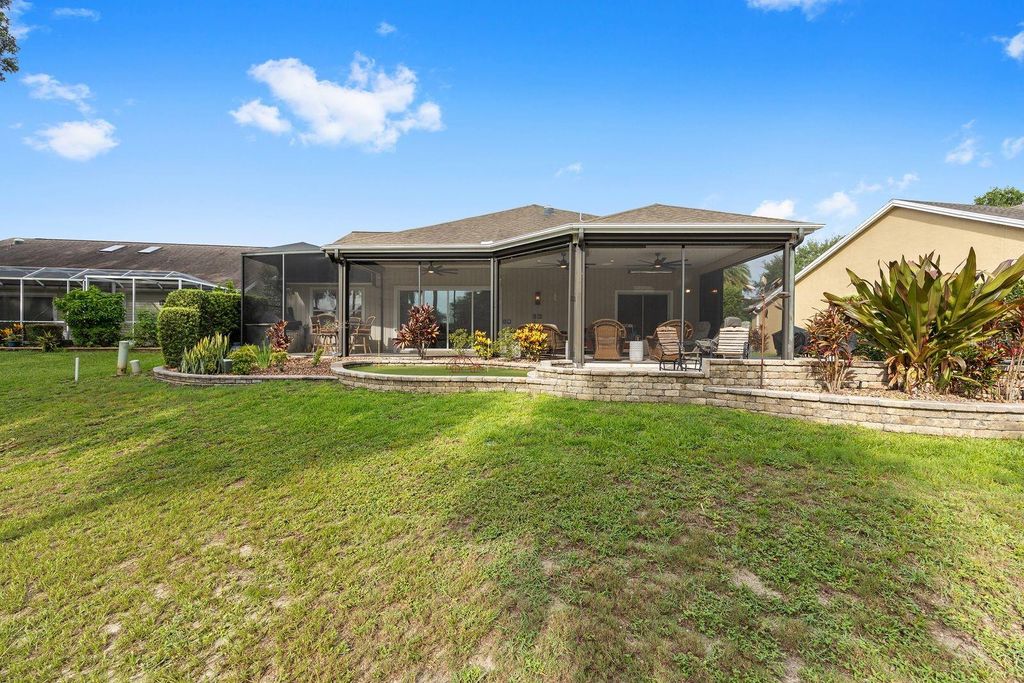 Motivated Seller has dropped the price of this Beautifully Remodeled and Redesigned golf front home with superb updates and upgrades throughout the interior and exterior. This is not a cookie-cutter home. Dare to be different! This is the fabulous home you have been waiting for. From the curb you see the mature landscaping and the expansive paver driveway and walkway to the front door. Don't miss looking inside this home. Your eyes are immediately drawn to the beautiful and serene golf course view of the full #7 fairway of the Hacienda Lakes Course through the extra height 4 panel stacking sliding glass door. A view you can't resist! Progressing past the entryway, you are greeted by the spacious living room with dry bar hosting 2-drawer refrigerator, pull-out shelves in the cabinets, storage for all your glasses and beverage accessories. To the left is recently redesigned and remodeled eat-in kitchen with all Pull out drawers and soft close doors as well as LED lighted cabinets. An incredible kitchen island, top-tier appliances including Electrolux Icon 32' Freezer and 32" Refrigerator w/custom double vent, GE Monogram Cafe' doors convection oven and GE Monogram induction cooktop with Wolf power ventilator/light. The kitchen island countertop is custom powder coated metal from Arkansas and hosts an abundance of storage with pull out drawers. There is a separate coffee bar with water hook-up for your convenience. Entering the Primary bedroom enjoy 10 ft high closet storage with double hanging and additional shelves for storage. The Primary bathroom has double sinks with storage tower between them. Custom large glass enclosure shower. Enjoy the privacy of a split floor plan with the guest bedrooms across the living room. Guest bedroom 1 has a closet. Guest bedroom 2 has a space for a closet or could be converted into a large work space w plantation shutters. The oversized interior laundry room has plenty of space for storage and large laundry sink. The garage is an extra deep 2 car garage with an additional 3rd stall golf cart garage/shop space. Want outdoor living? How about outdoor living with Twin Eagles ceiling mounted electric radiant heaters for the cool nights, additional power sunscreens over the entire lanai. Visitors will enjoy the putting green and outdoor patio space or just relaxing with their favorite beverage while watching the golfers on the green. Stunning sunrise view with a variety of pine, palm, and oak trees. Close proximity to the multi modal path available on the other side of the golf course. Click on the virtual tour link for a walk through look.