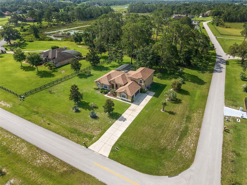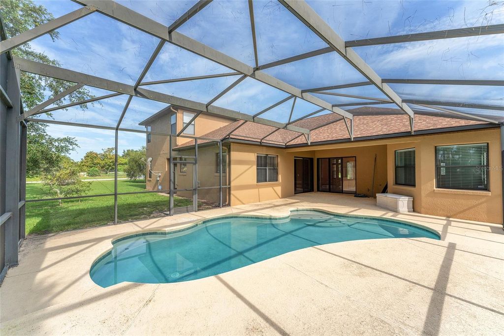 Peaceful, Private Perfect! This spacious 5 Bedroom, 4 full baths, 3 car garage, Pool home is located in the quiet neighborhood of Arrowtree Reserve. The 1.15 acre corner lot has mature landscaping with irrigation and a beautiful view. When you enter the home you see right through the formal living area through the triple sliding glass doors to the pool area. The salt water pool is concrete and gunite and was resurfaced in November 2024 and a new pool pump in June 2025. There is plenty of room to entertain in the covered area or screened area around the pool. There is propane connection for your grill. The roof was replaced in May 0f 2023. There are two HVAC units one was replaced in 2021 the other was replaced in 2022. The water treatment system is owned and was installed in 2023. Security system and whole house surge suppression collar is owned. The kitchen has plenty of pantry and storage space, wood cabinets, granite countertops and an island. The refrigerator is new in 2024. The cook top is gas and the double oven is a microwave oven and a larger oven. The Kitchen is open to a breakfast nook and the Family room. The family room features a gas fireplace with built in cabinets on each side. The sliding doors in the nook area open to the pool area. High ceilings throughout the home with ceiling fans in most of the bedrooms and the family room. The inviting primary bedroom has plenty of room for a sitting area and a door that opens to the covered area of the pool deck. There are two walk in closets. The luxury ensuite bath has a large jetted tub, a separate walk in shower, and private water closet. The double sinks and cabinets are separated by the vanity. All of the bedrooms have plenty of room for a king size bed and much more with 4 of the 5 bedrooms have walk in closets. Four of the bedrooms are on the main floor. The Bonus room and 5th bedroom and a full bath are up stairs. The Bonus room has wet snack bar with space for under counter refrigerator and has cabinets with space for an overhead microwave. Come make this beautiful home yours.