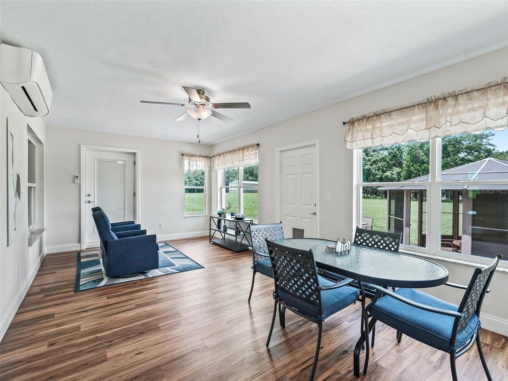 Custom-Built Home on 5+ Acres in Gated Equestrian Community of Saddle Ridge! Welcome to this beautifully crafted custom home nestled on over 5 acres in an exclusive gated equestrian community. This spacious property offers the perfect blend of luxury, functionality, and serene country living. The property offers the perfect combination of cleared, established grassy fields and mature trees! The home features 4 bedrooms and 2 bathrooms, with a thoughtfully designed floor plan. A long, elegant driveway leads you to the residence, where you'll be greeted by immaculate landscaping, stacked stone-accented columns, and a covered front porch with tile flooring, a ceiling fan, and a cozy sitting area"”perfect for relaxing evenings. Inside, enjoy luxury vinyl and tile flooring throughout, granite countertops, and a chef's kitchen complete with a breakfast bar with pendant lighting, stainless steel appliances, eat-in nook, and a formal dining room or bonus sitting area. The great room boasts soaring ceilings, a 65" mounted TV, and a sleek electric fireplace"”ideal for entertaining or relaxing. The master en-suite offers spa-like comfort with a Roman walk-in tiled shower, soaking tub, his and her vanities, his and her walk-in closets, and a private water closet. Three additional bedrooms and a full guest bathroom with a tub/shower combo and glass sliding doors offer plenty of space for family or guests. The climate-controlled Florida room with luxury vinyl flooring overlooks the expansive acreage and opens onto a concrete patio"”ideal for outdoor gatherings. A charming enclosed gazebo completes the inviting backyard space. For the hobbyist or car enthusiast, the property includes both a 3-car attached garage and a 30x30 detached garage/workshop with a storage cabinet, an electric door opener and 100-amp electrical service. Additional features include - Smart Home technology with programmable light switches and occupancy sensors in the laundry, garage, and shed; and a Wireless Dog fence System covering the entire property. Located in a secure and peaceful equestrian-friendly community at the end of a cul-de-sac. This is a rare opportunity to own a move-in ready home with acreage, space, and upscale features. Schedule your private tour today and experience the lifestyle you've been dreaming of!