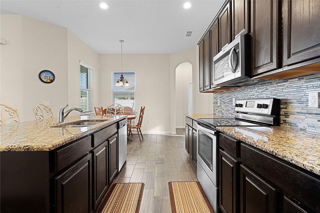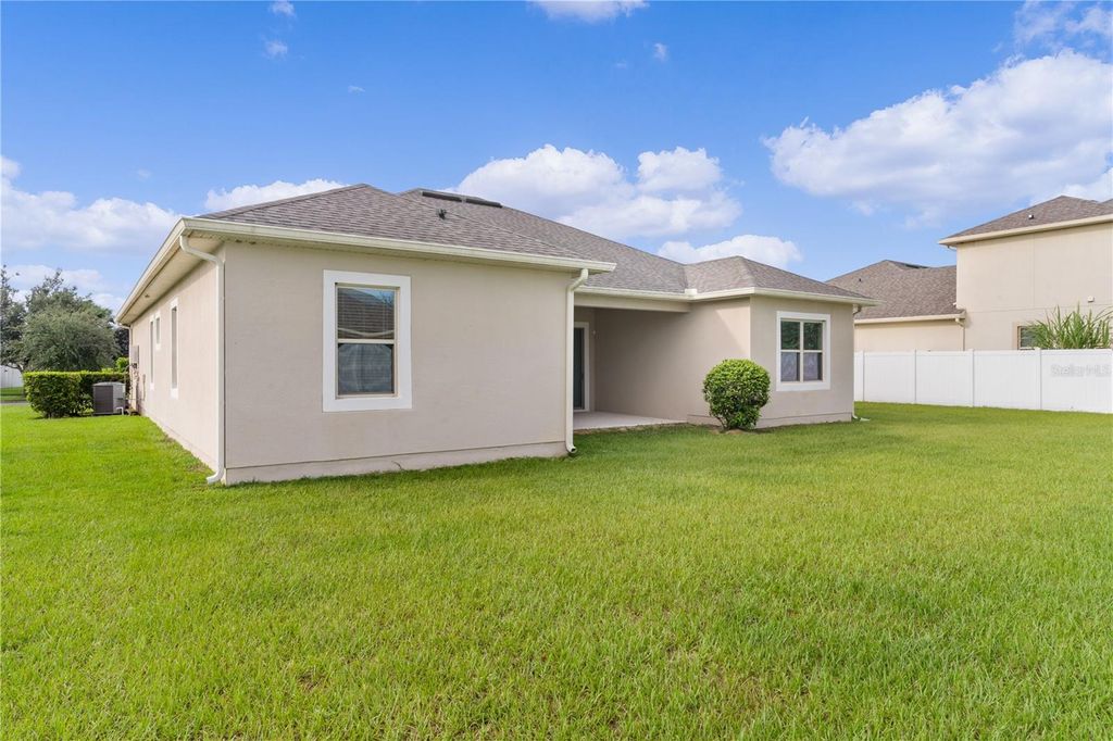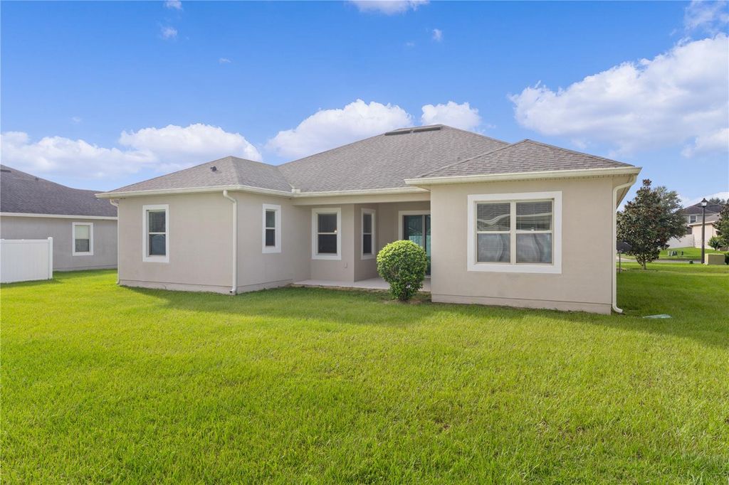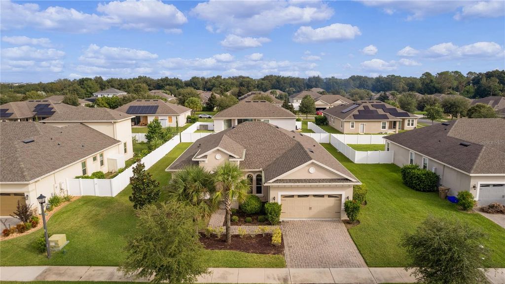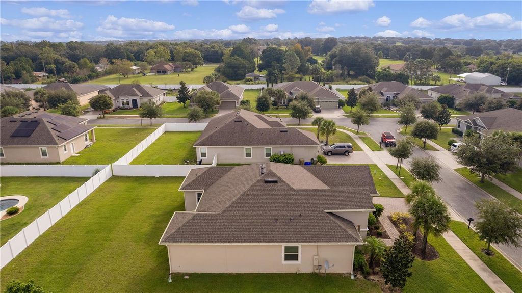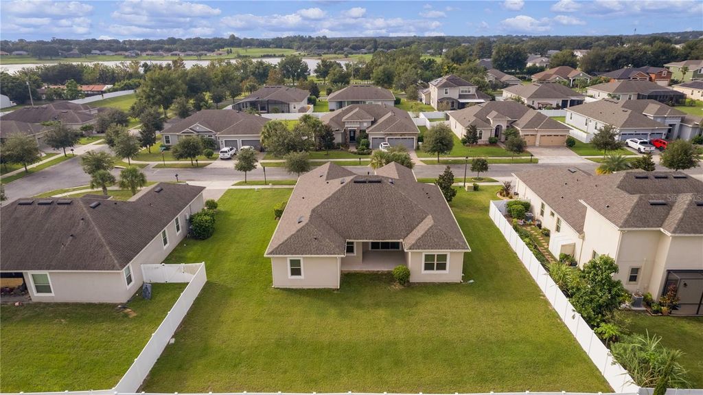 One of the largest, flattest backyards in the neighborhood - low HOA, no CDD, and room to add the pool and outdoor space buyers actually want. Set on a .27-acre oversized lot, this 4-bedroom, 3-bath home offers something most nearby homes can't: real, usable backyard space. The lot is wide, level, and already enclosed on all sides by neighboring fencing, requiring only side gates and a few corner boards to be fully fenced - ideal for a pool, pets, play areas, or a future outdoor living setup. Inside, the layout is practical and flexible, with a split-bedroom floor plan that works for families, guests, or home office needs. The kitchen anchors the living space with granite countertops, a large island, ample cabinetry, and stainless steel appliances, making it functional for everyday use and easy entertaining. Additional highlights include a tankless water heater, covered front and rear porches, and a low annual HOA with no CDD, keeping long-term ownership costs down compared to many newer communities nearby.