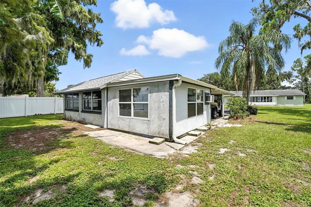 If you are looking for LAKEFRONT on the Chain of Lakes, here is a diamond in the rough. This property has 2 HOMES, private dock with mature shady trees all on an acre of land with 125' lake frontage. The main home is a 2 bedroom /2 bath with a great enclosed lanai for those relaxing times while enjoying the water views. The cottage has 2 bedrooms & 1 bath and located closer to the lake. This property is in the COUNTY and NO HOA. New central a/c in main house 2024. Located only 5 minutes to the Hospital and close to businesses & shopping on Hwy 441. Great possibilities with this property. Live in one home & rent the other or maybe renovate & enlarge to get your personal dream home. You might want to take a closer look at this property.