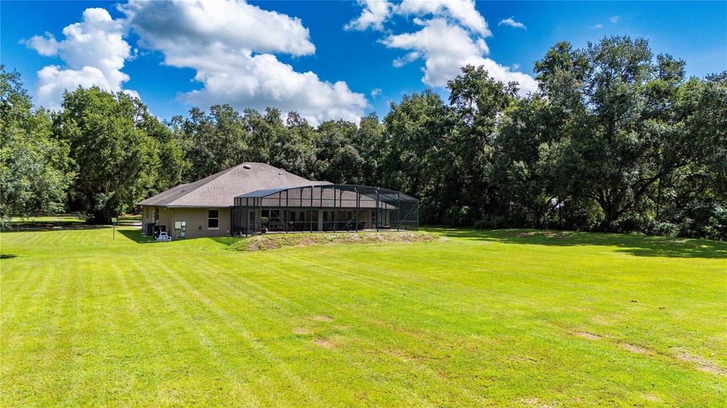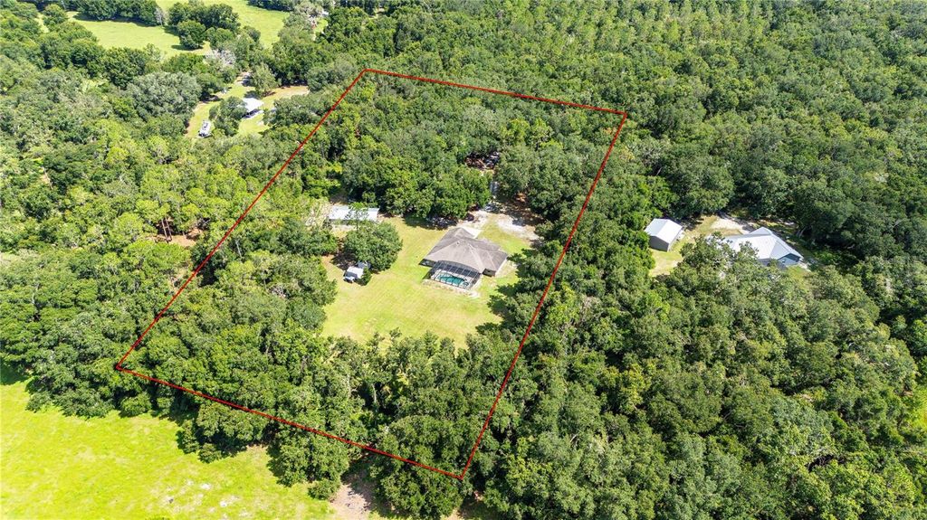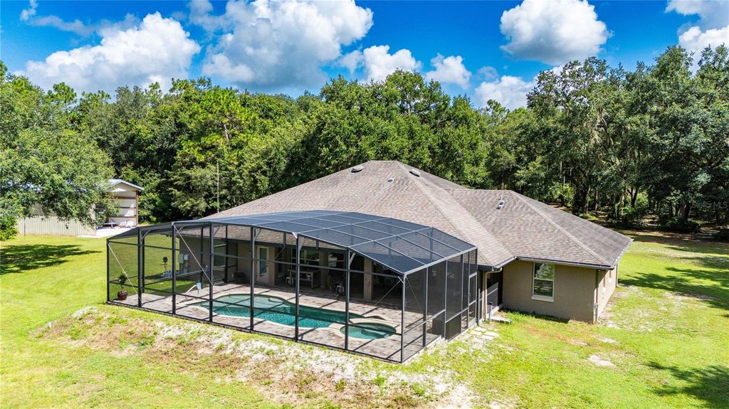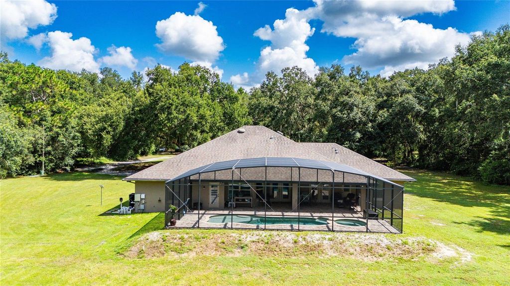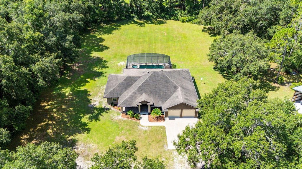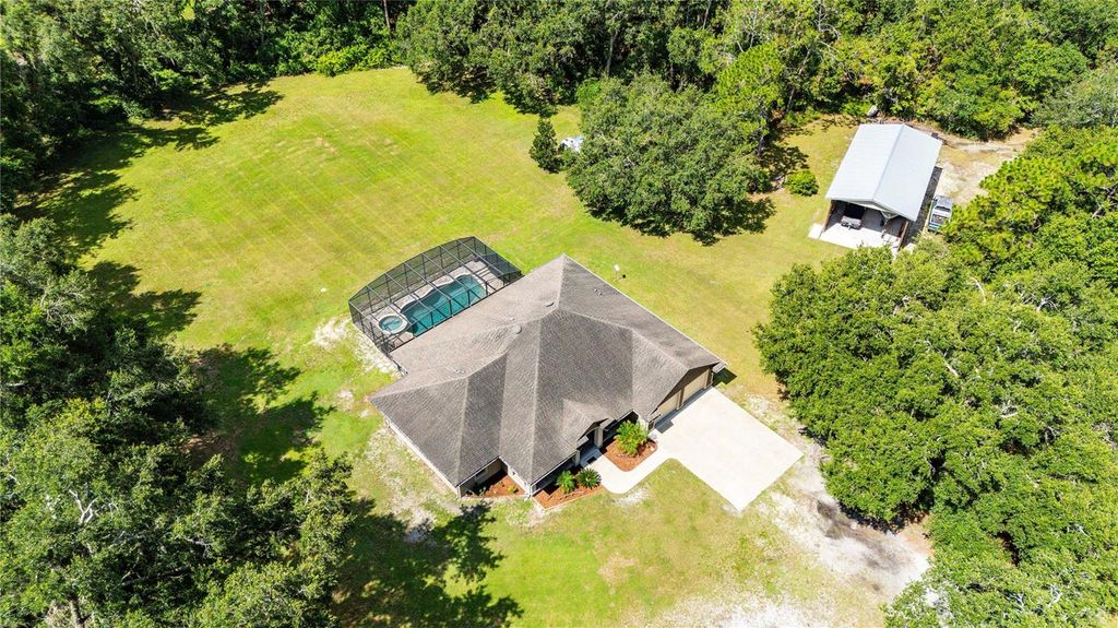 Escape to your own private paradise with this stunning 3-bedroom, 3-bathroom custom home, built in 2015 and nestled on 5 acres at the end of a quiet dirt road. Offering 2,440 square feet of thoughtfully designed living space, this property combines luxury, functionality, and total privacy "” all just minutes from I-75. Step inside and fall in love with the cathedral ceilings, open floor plan, and abundant natural light. The heart of the home is the huge chef's kitchen, featuring stone countertops, a massive center island, stainless steel appliances, and a huge pantry perfect for culinary enthusiasts and entertainers alike. The spacious primary suite offers a true retreat with a spa-like bathroom and ample closet space. Two additional bedrooms and a dedicated office provide plenty of room for family, guests, or working from home. Enjoy year-round Florida living in the screened-in in-ground pool with spa, perfect for relaxing or entertaining, especially with the expansive seating area and perfect outdoor kitchen space. The adorable front porch offers peaceful views of your expansive property. Additional features include: "¢ No HOA, no deed restrictions - bring your toys, animals, or build your dreams "¢ 24 x 48 Pole barn with concrete floors - ideal for storage, workshop, or hobbies "¢ Indoor laundry room "¢ 2-car garage "¢ Easy access to I-75 for commuting, shopping, and dining This one-of-a-kind property offers the best of both worlds: peaceful country living with modern conveniences and excellent location. Don't miss this rare opportunity!