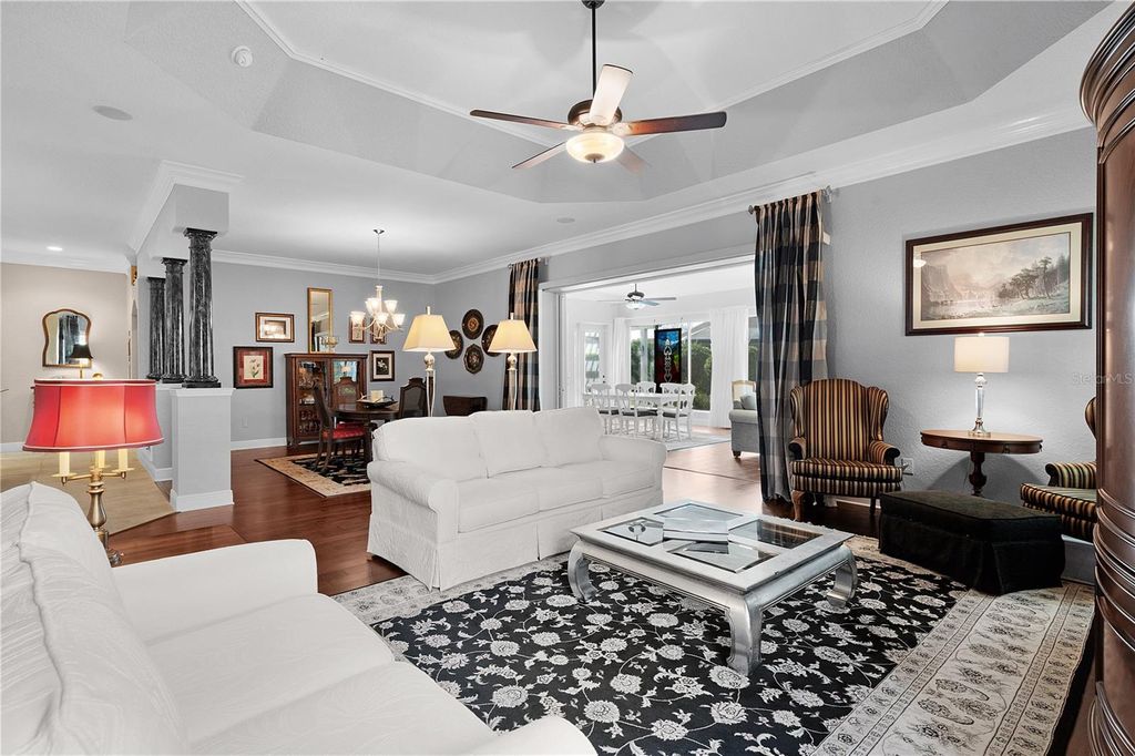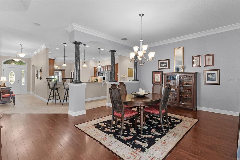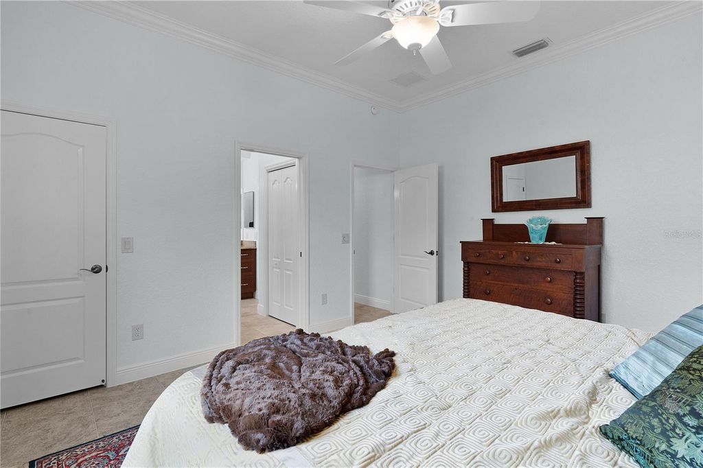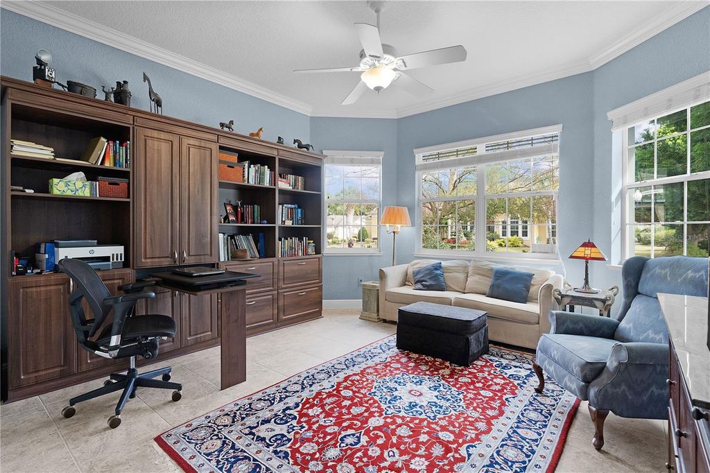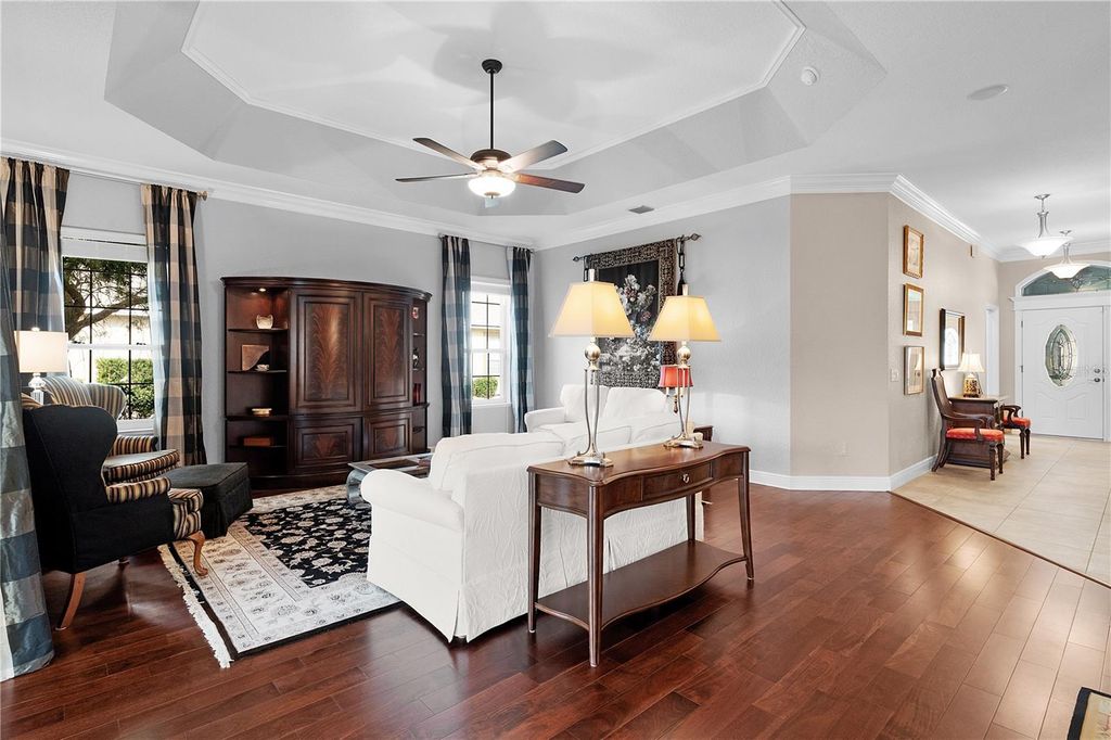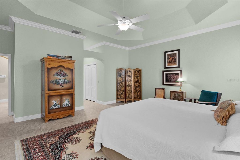 Live the life you've always imagined in this STUNNING Expanded WILLIAMSBURG PREMIER with over 3200 sq. ft. of beautiful living space, a Huge (844 sq. ft) 3-CAR GARAGE...and the Bond of over $25,000 HAS BEEN PAID! All about LOCATION! Situated less than 3 miles to LAKE SUMTER LANDING, this amazing home is tucked in the PREMIER Community of BRIDGEPORT of MIONA SHORES, just a short golf cart ride to numerous golf courses, recreation centers, pools, restaurants, shopping, medical and more! Truly ELEGANT, yet WELCOMING, you'll fall in love with this meticulously maintained ONE-OWNER beauty the moment you step inside. Spacious rooms with 12' ceilings, Engineered HARDWOOD floors, PORCELAIN Tile, CUSTOM TRIM WORK, TRAY Ceilings and CROWN Moulding barely begin to set the stage for what awaits. You have plenty of options when entertaining family or friends, whether the occasion is more casual or formal - take your pick? The Spacious Kitchen is more than just functional - offering beautiful Glass-faced and Lighted CHERRY Cabinets with Pull-out Shelves, GRANITE Counters, CUSTOM Backsplash, STAINLESS Appliances with a NATURAL GAS Range, ISLAND, Large Counter Bar, Cozy Breakfast Nook and Specialty Lighting. The VOLUME Knockdown Ceilings and OPEN CONCEPT enhance the already SPACIOUS feel of this light and bright home. Upon entering, your eyes will be drawn to the FABULOUS 578' Climate Controlled NE-Facing SUNROOM with Tinted Glass accessible off the main living area (with Stack-back sliders) or the Primary Suite with French doors. Situated on over 1/3 acre, your own PRIVATE retreat awaits as you relax on the back Patio with Pergola surrounded by beautiful landscaping...and plenty of room to add a Pool or Expand! The spacious Primary Suite with 2 Walk-in Closets, boasts a retreat-like bath with a ROMAN Shower, GRANITE Counters with his & hers sinks, Make-up Vanity, Glass-Block Accent, Privacy commode...and the JETTED SOAKING TUB offers a perfect opportunity to unwind and treat yourself to a bit of pampering after a day enjoying your favorite activities! The SPLIT plan is ideal for the occasional guests affording privacy for all, and you'll appreciate the extra closet space! One guest bedroom offers a Walk-in Closet and the other has 2 spacious closets, plus a large Built-in Cabinet and hide-away desk. The ROOF was REPLACED in 2024, HVAC in 2023 & TANKLESS GAS WATER HEATER in 2022. So many extras include Porcelain Tile and Engineered Hardwood Flooring (No Carpet), Lightning Rods, Whole-house Water Softener, Wireless ADT Security on every opening, Electric Garage Door Screens (on both doors), Attic Solar Fans, Solar Tube, Attic Insulation and Stairs, Lots of Shelving in garage, Freezer in garage will remain, and most appliances have been replaced (list available), +++. A list of items included with the sale, and those available for purchase will gladly be provided upon request. The BOND IS PAID! The tax line reflects property taxes only, and the CDD line reflects the combination of the annual maintenance and fire district. So....what are you waiting for? If not now, when???
