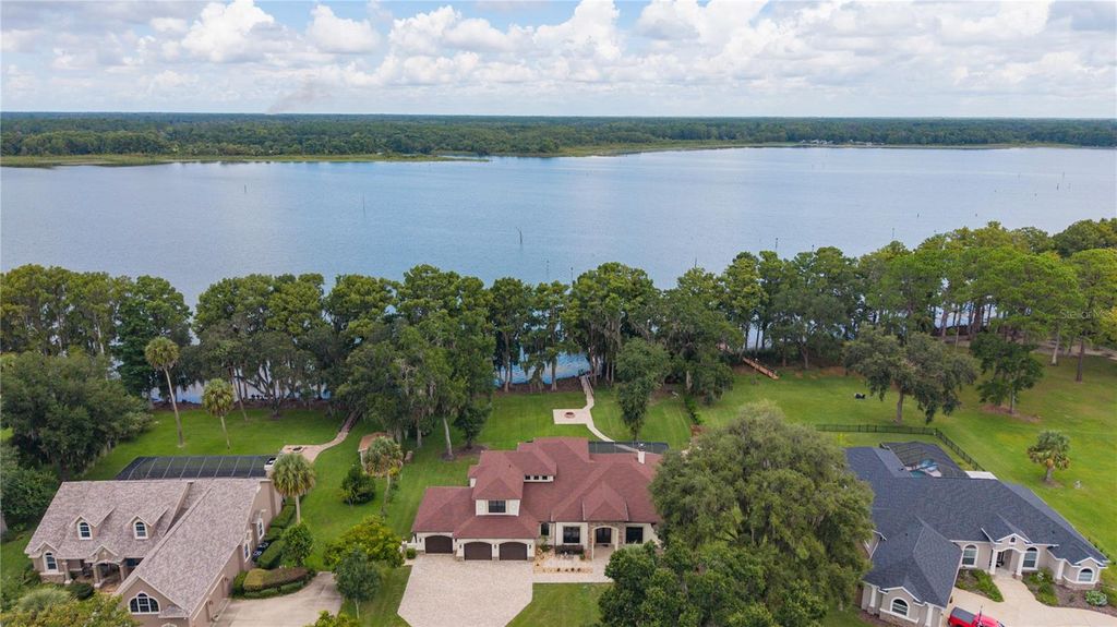 If you're looking for that wow factor, you found it! It's gorgeous, custom built on Lake Rousseau. Enjoy the most spectacular sunsets and a quick boat ride to Rainbow Spring for your swimming, snorkeling or floating down the river and of course, that great bass fishing in your own backyard. Florida life at it's best. Gated community, house on 1.2 acres. House is absolutely impeccable, as well as the outside grounds. Brick paved driveway leads you up to the home w/4 bedrooms plus 2 offices, almost 4000 sq ft living. Upon entry, large foyer, stepping in to the massive great room with gas fireplace, tall, vaulted ceiling, creating a spacious and airy atmosphere with beautiful kitchen to your left, formal dining room up front, along with an office, and another office after you walk thru the kitchen. Master bedroom to your right and yet a second bedroom on the 1st floor as well, with half bath in the hallway. Kitchen overlooks great room with island, granite countertops, dbl convention oven, stove cooktop is gas, wine cooler, 2 mini fridges. Walk in pantry, wine bar and coffee bar, breakfast nook a one end with lake view. upstairs you have a large sitting area of 18x20, so spacious stunning view of the lake. Another 2 bedrooms with jack n jill bath between, upstairs as well. Double car grg is very over sized 25x32 along with another one14x28 pull thru with grg doors on both sides. Makes it for plenty of storage , or store your boat. Outside offers you the lakeside living area you deserve. Enormous screened in lanai for your grilling and entertainment. Dock with boat lift (covered), pier. Sit on your hanging swing & enjoy the beautiful view..