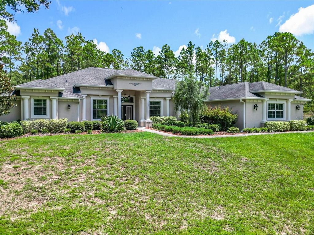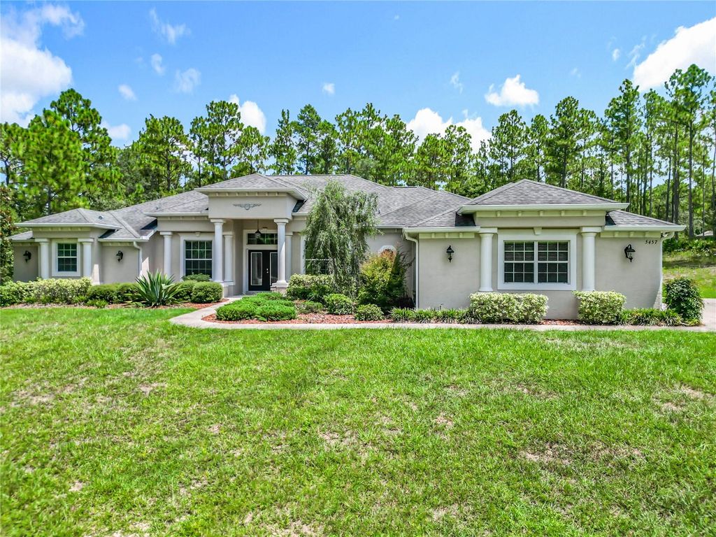 ***5.64 Acres*** Built in 2017, This beautiful 3Br/3Bth has over 3000 sq.ft. Split floor plan. NO HOA!! in PINE RIDGE FARMS community. Tile throughout except Brs...Gourmet KITCHENAID appliances in kitchen with Island. Granite countertops and walkin Pantry. Oven and Fireplace are (LP gas appliances). The Living room boasts beautiful high ceilings with crown molding and double tray detail. Enjoy the warmth of your fireplace (LP gas) on cooler evenings (remote controlled). Step out to the heated SALT water swimming pool and spa. Screened and a BRAND NEW PENTAIR CHLORINATOR smart pool pump system. Enjoy the outdoor summer kitchen on pavers with BBQ and refrigerator. The split floorpan offers 2 BRs with pocket door privacy for guest as it has a separate entrance with kitchenette in 3rd BR... Shower and tub. 50 amp RV hookup on the outside. TRANE 5 ton AC system. Plenty of room on expanded driveway. The Primary suite has a huge walk in closet...separate tub and shower and dual vanities. Access to the pool. Conveniently located close to restaurants...shopping and major roads. This home is on a quiet Cul-de-sac. Enjoy all that FLA has to offer. Come see it TODAY!!