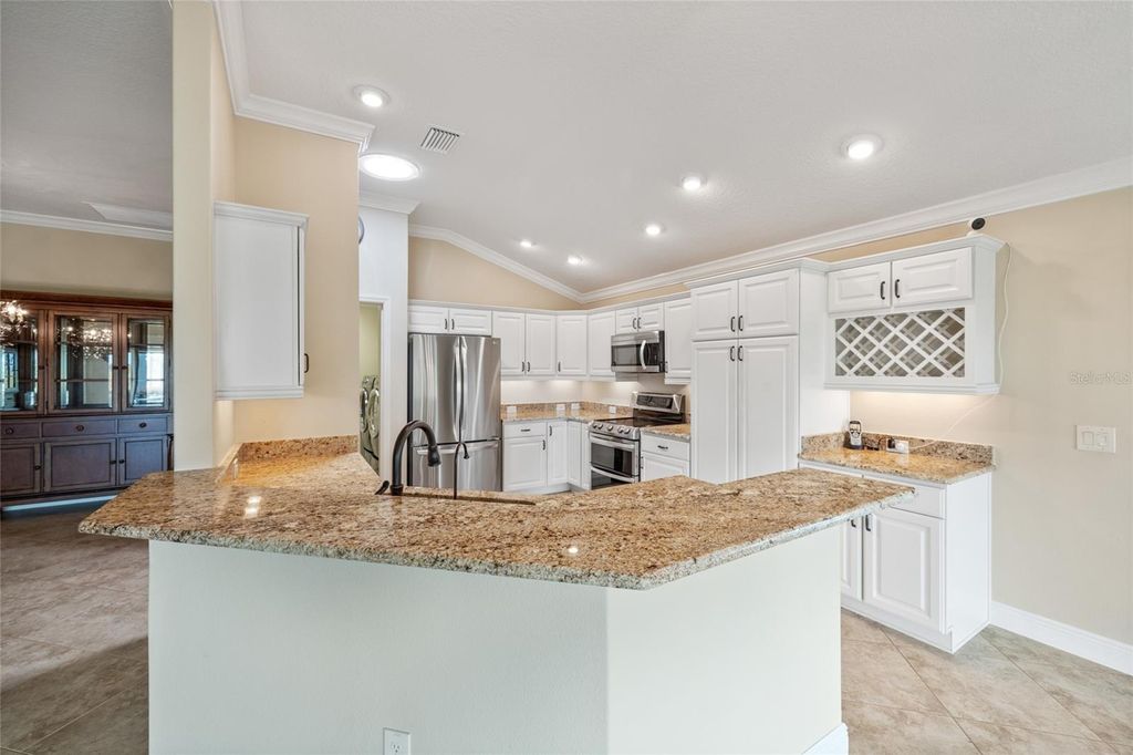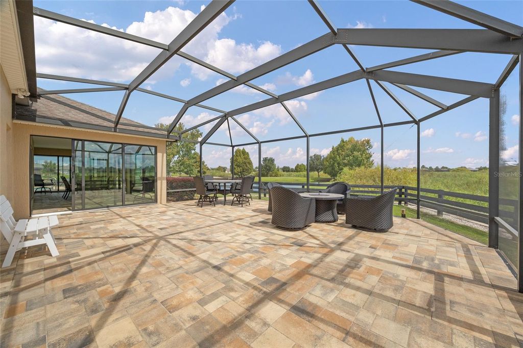 Welcome to this BETTER THAN NEW, Stunning 3-Bedroom, 2-Bathroom LANTANA model home located at the end of a CUL-DE-SAC with an expansive pie-shaped view of a LAKE as well as a very PRIVATE WATER PRESERVE. This homesite comes with the ultimate in curb appeal with desirable, gorgeous, and meticulously maintained landscaping. As you enter, you'll be greeted by an elegant interior, featuring DIAGONAL TILE FLOORS, CROWN MOLDING, and HIGH BASEBOARDS throughout the main living areas. The kitchen is a chef's dream, boasting STAINLESS STEEL APPLIANCES, GRANITE COUNTERTOPS, CUSTOM CABINETRY with convenient PULL-OUT SHELVES, and two SOLAR TUBES for abundant natural light. The bathrooms also feature matching granite countertops, maintaining a cohesive and luxurious feel. The spacious master suite offers a tranquil retreat overlooking your view, while the whole house is adorned with custom PLANTATION SHUTTERS and DECORATIVE VALANCES that are installed throughout the entire home. Step outside to your private oasis. A HUGE SCREENED IN AREA with a BRICK PAVER DECK on one side of the home that opens out to your million dollar water and preserve view creating an ideal space for entertaining. This screened in entertainment area connects to your ENCLOSED LANAI. POCKET SLIDING GLASS DOORS from the interior of the home open up the inside of the home into the enclosed lanai for that seamlessly blend of indoor and outdoor living. Your enclosed lanai also opens up on the other side of your home to your own private CUSTOM SCREENED IN POOL with a water curtain feature that offers that soothing running water sound as you lay out sunning by your private pool. This whole backyard paradise backs onto a serene water feature and preserve, that invites water birds and wildlife to feed along the shore offering the ultimate in privacy and natural beauty as well as hours of entertainment... and best of all...no golf balls or mowing at 6am in the morning, like you have with a golf course view. This home is as functional as it is beautiful, with a GOLF CART GARAGE, a high-end decorative STAMPED CONCRETE DRIVEWAY AND WALKWAY with the whole garage having PAINTED FLOORS and custom STORAGE CABINETS. The property also includes a WHOLE-HOME WATER TREATMENT SYSTEM and energy-efficient features like SILVER SHIELD ATTIC INSULATION and INSULATED GARAGE DOORS. Experience the perfect blend of luxury, comfort, and efficiency with all the added upgrades in this exceptional home. There is literally nothing more that you have to do to this home. This home is worth every penny of the listing price. Low Low Bond Of $17,084.74 compared to $50,000+ for new homes.