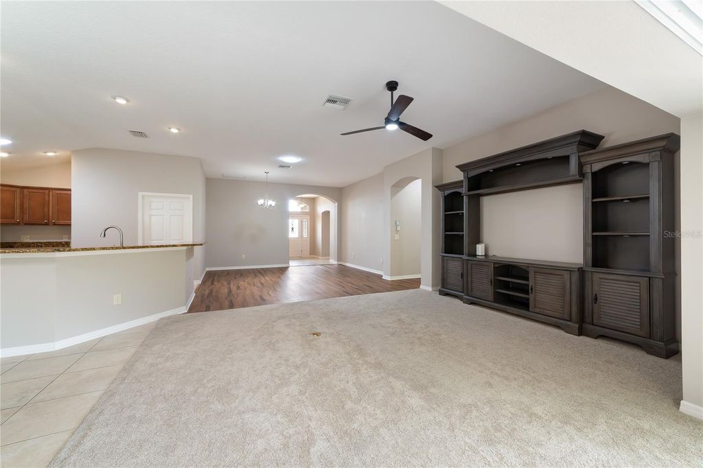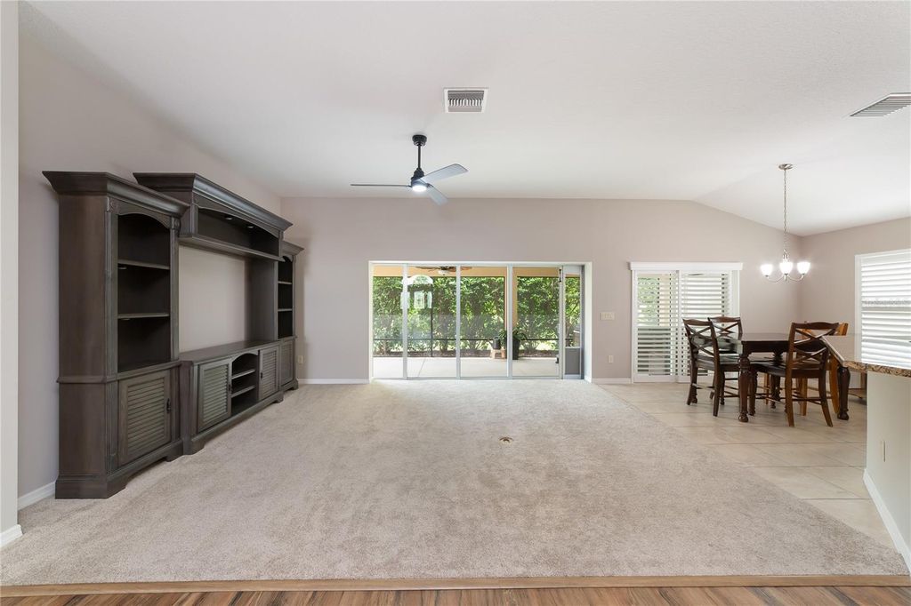 Under contract-accepting backup offers. One or more photo(s) has been virtually staged. PRICE REDUCTION! Stunning 3-Bedroom, 2-Bath Lantana in The Villages, FL - Pristine Condition & Prime Location! Welcome to this beautifully maintained Lantana floor plan, offering 3 bedrooms, 2 bathrooms, and an oversized (26 ft) 2-car garage with room for a golf cart. Nestled in a peaceful cul-de-sac just minutes from Brownwood Paddock Square, this home boasts the perfect combination of comfort, style, and convenience. Spacious Living: Large foyer entry sets the tone for this inviting home. Open and bright living spaces with updated flooring and fresh paint throughout. Upgraded ceiling fans complete the modern touches. Hiding sliders off the living and breakfast nook to the screened and private lanai. Updated Kitchen: Enjoy the gourmet kitchen with stainless steel appliances, granite countertops, maple cabinets with double rollouts, a breakfast bar, and a cozy breakfast nook. Elegant Touches: Plantation shutters and five solar tubes throughout the home bring natural light into every room, creating a warm and welcoming atmosphere. The glass inlay front door adds a touch of class. Luxurious Bathrooms: Main bathroom features a stunning Roman shower, dual vanity, plenty of cabinets and a private water closet. Main Bedroom: Large enough for a king-size bed along with two nightstands, dresser and any other type of furniture or seating. The main closet has custom built-in shelving. Two Guest Bedrooms and/or In-Law Suite: Spacious in size and with a tub/shower combination in the guest bathroom. Nice sized linen closet in the hallway. Living Room and Dining Room: Located off the kitchen for convenience with plenty of room for everyday living as well as entertaining guests or family. Relax & Entertain: Screened lanai and a beautifully landscaped yard with lighted landscaping and rear privacy for outdoor enjoyment. Washer/dryer in utility room with cabinets overhead and utility tub. Upgraded Features: New blower for HVAC (under warranty), new garage door motor, and a painted garage floor. A year-old screen on the garage. Convenience & Comfort: Stucco exterior, ample storage space in this home along with pull down staircase for attic. Plus, the home is located close to all the activities and amenities at Brownwood Paddock Square. This home is move-in ready and waiting for you to enjoy the best of The Villages Florida's lifestyle! Contact me today to schedule a private showing. $204 monthly amenity fee