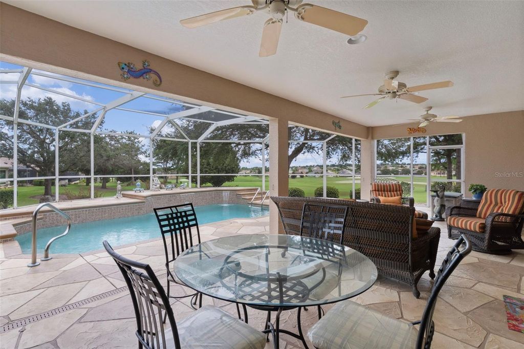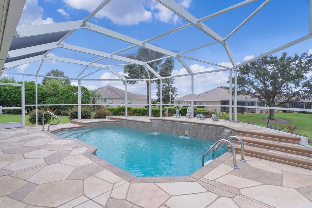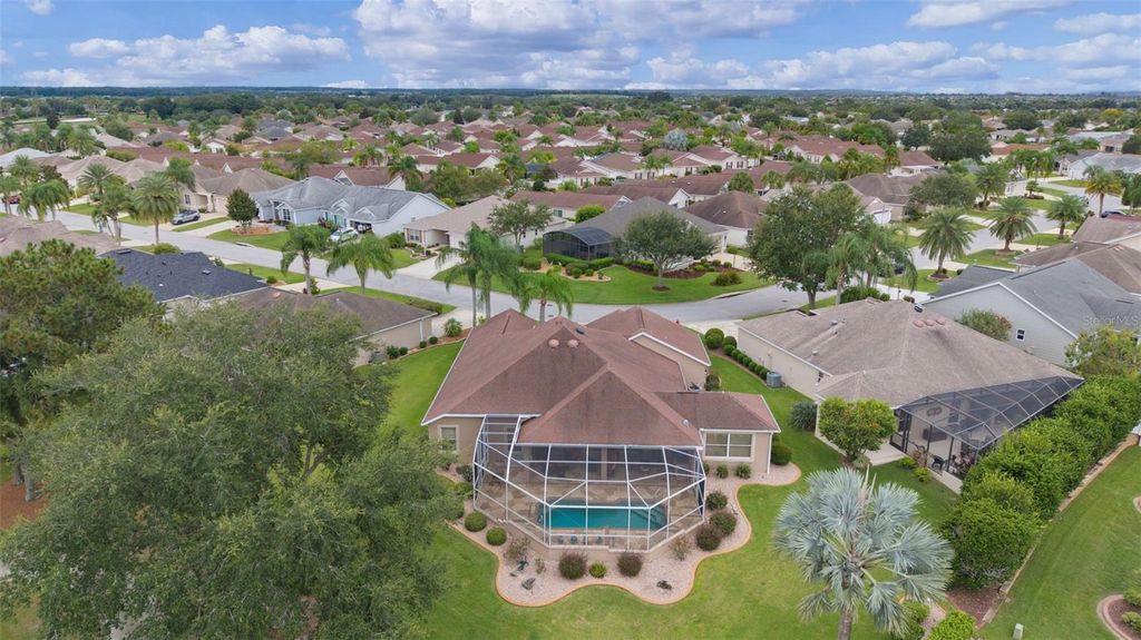 Under contract-accepting backup offers. Location, Location, Location! This stunning expanded Lantana Model with pool and bonus room is perfectly situated on an elevated homesite overlooking the Havana Kenya Championship Golf Course in the desirable Village of Hemingway. Offering 3 bedrooms, 2 baths, and a spacious 15x15 bonus room, this home combines comfort, style, and countless upgrades. Major updates include roof (2013), HVAC (2017), washer & dryer (2022), pool pump (2022), summer kitchen refrigerator (2023), freshly painted exterior, and pool cage rescreened (2017). Outdoors, enjoy enhanced landscaping, a private pool with waterfall, stamped concrete lanai and pool deck, paver driveway, and lightning rods for peace of mind. Inside, thoughtful details shine with an etched glass front door and sidelights, retractable garage screen doors, extra garage cabinetry with attic stairs, solar tubes, granite countertops, and a guest bath with a glass-enclosed shower. The spacious primary suite features dual sinks, a tiled shower, and generous storage. Whether entertaining by the pool or relaxing with tranquil golf course views, this home is truly an entertainer's paradise. Schedule your private showing today and start living the lifestyle you've been waiting for!