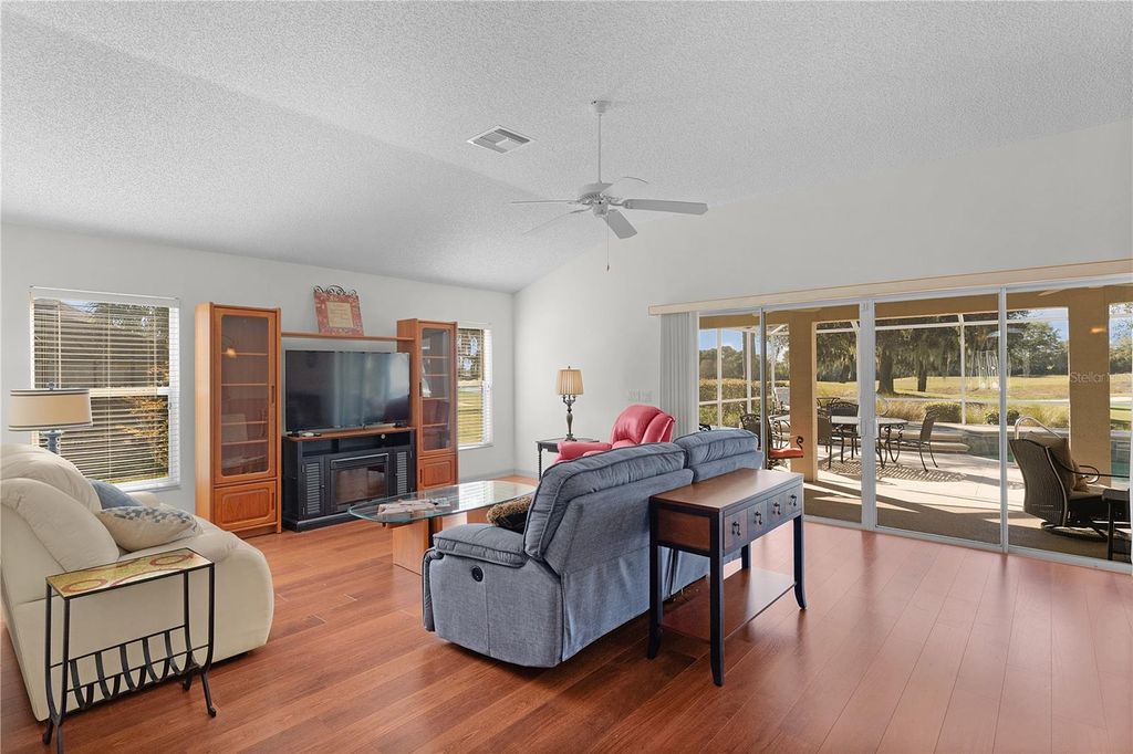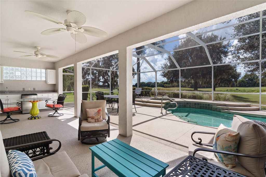 NEW FRESHLY PAINTED INTERIOR 12/2025 ! EXQUISITE GARDENIA MODEL |GOLF FRONT! POOL HOME | GOLF CAR GARAGE! NO BOND! BRAND NEW ROOF ! VILLAGE OF GLENBROOK Experience the pinnacle of luxury living in The Villages with this stunning 3 Bedroom, 2 Bath Gardenia model, gracefully positioned on a quiet cul-de-sac in the coveted Village of Glenbrook. (Third Bedroom Does Not Have A Closet) This exceptional residence offers an unparalleled blend of sophistication, comfort, and resort-style amenities. BRAND NEW ROOF, HVAC 2024, NAT GAS AND COMES FURNISHED! From the moment you arrive, the home's golf front setting and spectacular panoramic views set the tone for an extraordinary lifestyle. The interior showcases refined upgrades including granite countertops, elegant tile and laminate flooring, and an open, light-filled layout perfect for entertaining. Located on The No 7 Hole of The Foxrun Championship Golf Course. The owner's suite provides a serene retreat and a luxurious en-suite bath designed for relaxation. Two additional guest rooms ensure comfort and privacy for family and friends. Step outside to your private oasis "” a sparkling swimming pool with screened lanai, enhanced by a fully equipped summer kitchen and ample space for lounging, dining, and entertaining under the Florida sun. Whether enjoying a quiet evening or hosting guests, this outdoor sanctuary captures the essence of upscale living. Additional highlights include: Golf Car Garage for added convenience and it fits two golf carts ! Cul-de-sac privacy with mature landscaping. RECENT UPGRADES: NEW ROOF JULY 2025, HVAC 2024, Nat Gas Stove 2023, Fridge 2022, Dishwasher 2025, Disposal 2025, Garage Dr. Opener 2024, New Shower Heads 2025, Garage Floor and Pool Deck Repainted 2023 Prime location close to Glenview Championship Golf, recreation, dining, and shopping. This is not just a home "” it is a statement of lifestyle, offering the perfect balance of elegance, comfort, and leisure in one of the most desirable villages in The Villages. The Village of GLENBROOK offers Multiple Golf Courses as part of the Glenview Country Club and Championship Golf Course. Direct access to The Savannah Recreation Center and Pool. Also Dining and Music at the Glenview Country Club, The Saddlebrook Recreation Center and Softball Fields, Hawks Bay and Saddlebrook Executive Golf Courses and nearby medical services at The VA Hospital, easy connection to Buena Vista Boulevard, leading to Southern Trace Shopping Center and numerous restaurants, banks and other amenities. You'll also enjoy being just a short golf cart ride to Spanish Springs Town Square only about 15 minutes away. This home offers not only a prime location but also a host of updates and lifestyle conveniences that make it truly special and the BOND IS PAID! Please enjoy the Virtual Tour and Pictures and call to schedule your own Private Showing.