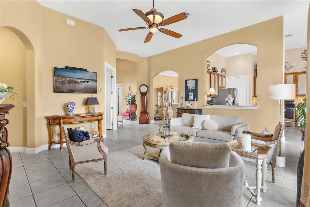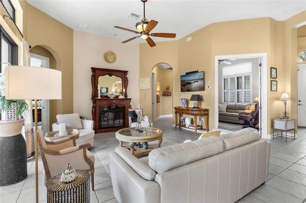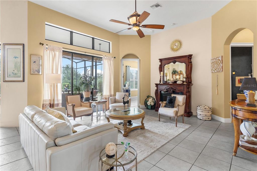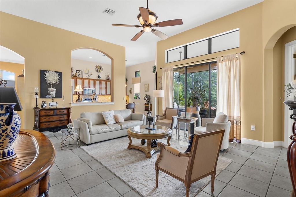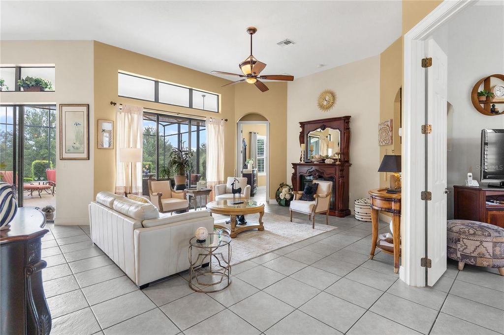 DAZZLING DESIGN- UNIQUE HOME! Roof and HVAC approximately 3 years new...Step into over 2,300 sq. ft. of beautifully planned living space with this 3-bedroom, 2.5-bath home featuring huge screened in porch with "birdcage" and IN-GROUND SPA! Oversized 2-car garage with a separate golf cart entrance! Located in this sought after, 24/7 guard-gated golf community, this home blends style, comfort, and convenience. Home features great room that flows seamlessly into the oversized kitchen and breakfast area"”complete with abundant cabinetry and Whirlpool "Gold Series" newer appliances to delight the family "chef""”plus a separate formal dining room ideal for entertaining! Home has a large private office/den with elegant double French doors. The primary suite boasts dual closets to include a walk-in. Enjoy a luxurious bath with privacy door, raised dual vanities, a walk-in shower, water closet and a large soaking tub with jets for "bubble bath" relaxation! The split-plan design provides privacy for bedrooms 2 & 3, which share a convenient Jack & Jill bath. Convenient inside Laundry Room with built in sink convey a washer & dryer. You will love the half bath for your guests to enjoy! Come see why this home is a standout in a premier side walked community! Clubhouse membership is optional and available for a separate fee... where you can enjoy a Community Pool Tennis, Fitness, Marina access and more! Call Today to view, it is AFFORDABLE AND ADORABLE!!