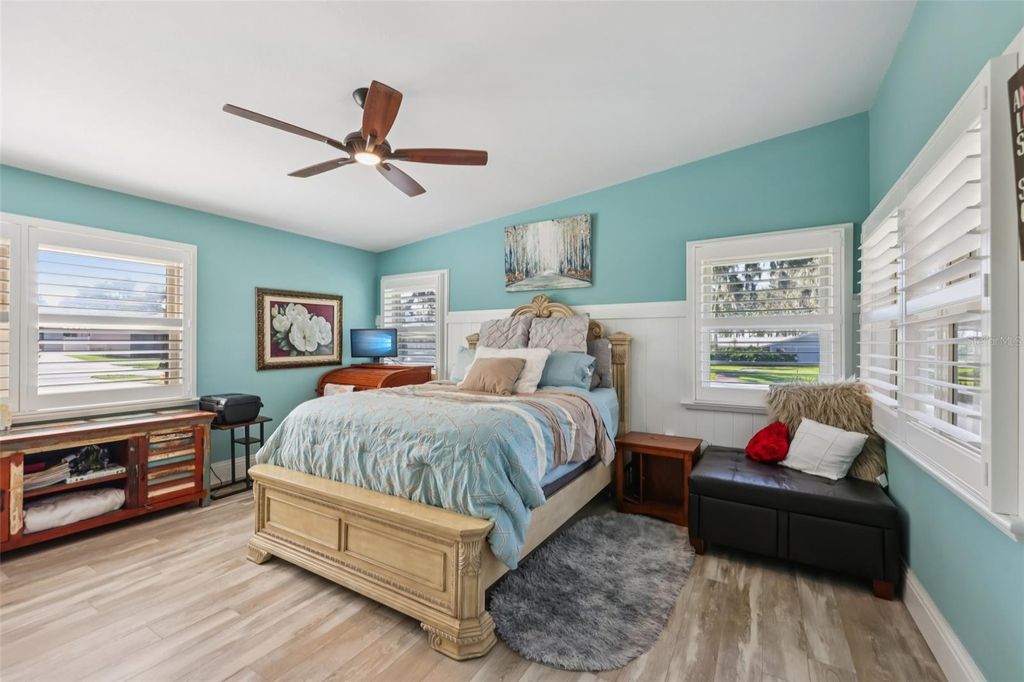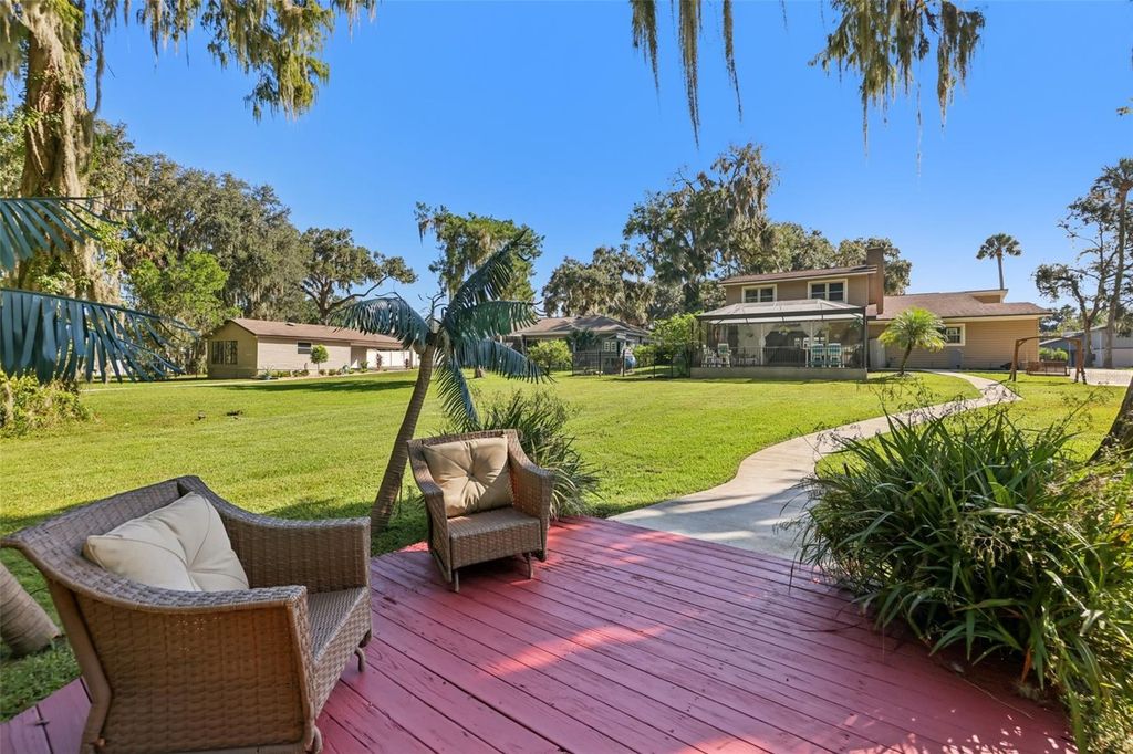 Welcome to this stunning waterfront home in the highly desirable Palmora Park, one of Leesburg's most established and sought-after neighborhoods. This spacious 3,000+ sq ft lakefront property offers direct access to the Lake Harris Chain of Lakes, making it ideal for anyone seeking a true Florida boating lifestyle. Enjoy your own private screened-in dock with electricity, water, mini-fridge, and boat lift. This dock is perfect for sunset views, fishing, and relaxing on the water. Inside this beautiful professionally renovated 1949 home, over 3,200 sqft blend vintage character with modern comfort. This home features a split floor plan, multiple living areas, and an expansive screened patio overlooking the lagoon. The main-floor primary suite offers a wheelchair-accessible bathroom and a unique hidden walk-in closet tucked behind a mirrored door. Upstairs, a large secondary master suite provides outstanding space for guests or multigenerational living"”a highly sought-after feature for today's buyers. The gourmet kitchen offers ample storage, dedicated instant hot water faucet, smart fridge and much more. The kitchen has a huge eat in dining area and easy access to living spaces. Large windows bring in natural light and capture peaceful water views throughout the home. Outside, the private backyard flows gently to the water's edge, creating an ideal indoor-outdoor living experience. Located in a golf cart-friendly community with neighborhood parks and quick access to downtown Leesburg, this home combines luxury, lifestyle, and location. Rarely does a waterfront property in Palmora Park with this much character and square footage become available. The seller has put a lot of thought into this property to make it not only move in ready for the next owners but to make it, so they don't need to worry for years to come. Example is when getting a new AC earlier this year they had all ducts cleaned and sealed throughout the whole house and added a UV Light for cleaner air. They also just installed a brand-new roof with top-of-the-line shingles with a 15-year warranty and maintenance package where Eustis Roofing will clean and maintain the roof for 15 years so the roof will last even longer. This home is designed for you to enjoy your life on the water while also providing plenty of storage from the kitchen cabinets, loads of closets, 2 car garage, long driveway and an oversize shed that was lifted and rebuilt in 2024. This shed is a great workshop as it has electricity and a waterspout outside. The shed is also insulated and ready for whatever the next owner wants to store or work on!! All of this in Leesburg's most beloved, golf-cart-friendly neighborhood just steps from downtown shops, dining, and festivals, with no HOA. A new roof (Oct 2025), new AC (April 2025), and professional renovations (2021/2022) make this rare Palmora Park treasure move-in ready for its next chapter.