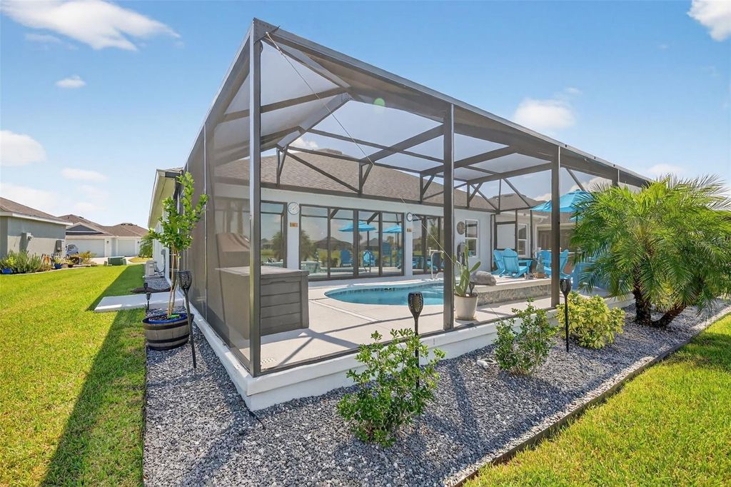 ENJOY SPECTACULAR WATERFRONT VIEWS in this ABSOLUTELY STUNNING 3/2 EXPANDED BEGONIA with CUSTOM SWIMMING POOL, PAVER DECK, 330sf CLIMATE-CONTROLLED ENCLOSED COVERED LANAI, and OVERSIZED 667sf TWO CAR + GOLF CART GARAGE in the CONTEMPORARY Village of Newell! JUST MINUTES from Sawgrass Grove; Franklin, Homestead, and Ezell Pool and Recreation Centers; and Southern Oaks Championship Course! STONED planting beds with CURBED edges, DECORATIVE STAMP driveway, and a beautiful FROSTED GLASS door with transom, side-lite, and RETRACTABLE SCREEN welcome you into the foyer of this MAGNIFICENT home! Built in 2023, this nearly NEW home offers LOW-MAINTENANCE peace of mind with MODERN DESIGN and boasts an ABUNDANCE of UPGRADES including PLANTATION SHUTTERS, LUXURY VINYL PLANK FLOORING throughout, HIGH BASEBOARDS, and Nova WATER FILTRATION and FULL HOUSE SURGE PROTECTION! The main living area features an EXPANSIVE OPEN LAYOUT with SOARING VAULTED ceilings adorned with CROWN MOLDING. From these rooms, sliding glass doors with a CUSTOM CORNICE lead you into the 30'x11' CLIMATE-CONTROLLED ENCLOSED LANAI! This FANTASTIC room adds 330sf of living area and features a MINI-SPLIT and four sets of FULL-PANEL, TINTED sliding glass doors that open to the INCREDIBLE OUTDOOR OASIS of the POOL and SPA area! The HEATED POOL boasts a WATERFALL and a HIDDEN, IN-GROUND SOLAR COVER! If you've been dreaming of RESORT-STYLE LIVING AT HOME"”THIS IS IT! Dive into the refreshing POOL, soak up the sun on the deck, or simply enjoy the PEACEFUL WATERFRONT VIEWS! Back inside, the AMAZING kitchen showcases STAGGERED EBONY cabinetry with PULL-OUTS, QUARTZ countertops, built-in PANTRY, STAINLESS appliances, herringbone TILE backsplash, GAS cooking, COUNTER-HEIGHT EAT-IN counter, and an ADJACENT DINETTE. The luxurious primary bedroom boasts a TRAY ceiling and TWO LARGE CUSTOMIZED WALK-IN closets. Its en-suite bathroom features JACK & JILL vanities, QUARTZ counters, TILED WALK-IN ROMAN shower, BUILT-IN LINEN closet, and separate water closet. The SPLIT floor plan offers two additional bedrooms and second bathroom, conveniently hidden behind a POCKET door near the front of the home, creating a PRIVATE GUEST WING and/or QUIET home office. Bedroom two boasts a walk in BAY window, TRAY ceiling, and built-in closet. A third bedroom features VAULTED ceiling, DOUBLE windows, and built-in closet. The second bathroom offers a SPACIOUS blue vanity with QUARTZ countertop, TILED WALK-IN shower, and a hallway LINEN closet. A centrally located INTERIOR laundry room features EBONY cabinetry, shelving, and a utility sink. Completing the package is an OVERSIZED 31'x25' TWO CAR + GOLF CART GARAGE with MOTORIZED garage SCREEN, attic insulation and exhaust fan, insulated garage doors, and attic access stairs. DON'T MISS YOUR OPPORTUNITY TO MAKE THIS EXCEPTIONAL WATERFRONT POOL HOME YOUR OWN! The Village of Newell is close to Sawgrass Grove, Brownwood Paddock Square, and the new upcoming Eastport Square; six neighborhood pools and recreation centers (Franklin, St. Catherine, Bradford, Aviary, Hawkins, Homestead); three large regional recreation complexes (Ezell, Everglades, and Rohan); Southern Oaks Country Club and Championship Golf Course; Clifton Cove Putting Course; Mickylee Pitch and Putt; shopping and dining at Magnolia Plaza; Homestead dog park for your furry friends and more! PLEASE WATCH OUR WALKTHROUGH VIDEO OF THIS EXCEPTIONAL HOME and call today to schedule your Private Showing or Virtual Tour!