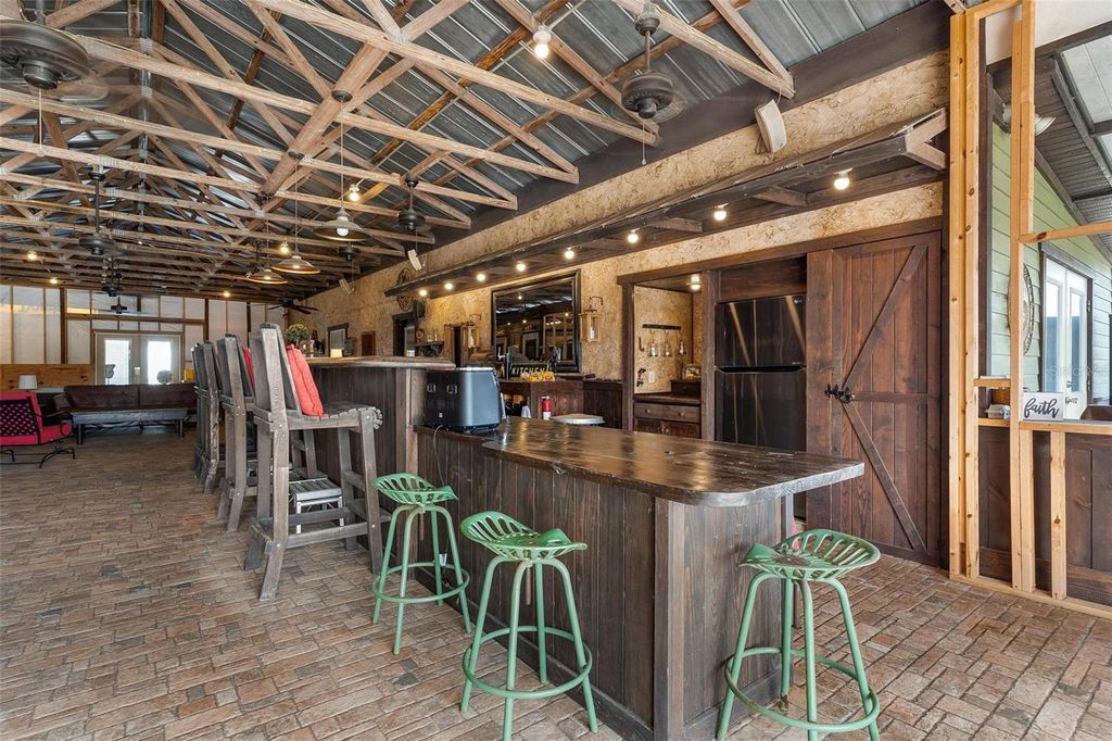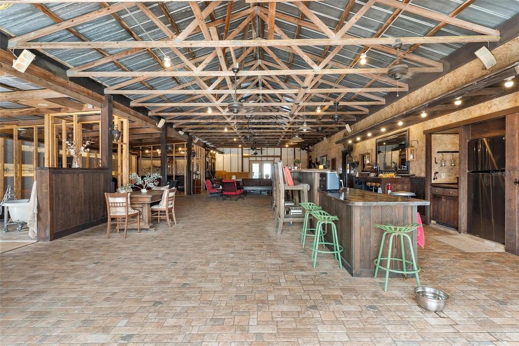 One-of-a-Kind Barndominium Estate on 5.6 Acres. Discover one of Lake County's most unique properties, offering unmatched versatility and privacy on 5.6 fully fenced acres with 2 entry gates, main gate is solar powered. This exceptional estate features two barndominiums, multiple metal buildings, a pool, and a wealth of outdoor living spaces. The main barndominium provides 1,957 sq ft of stylish living space with 2 bedrooms, a spacious walk-in closet, an open kitchen and living area, and a large full bath with a beautifully tiled walk-in shower. Attached is a 1,243 sq ft storage/workshop with an overhead door and an expansive 80' x 20' concrete patio perfect for entertaining or hobbies. The second barndominium offers over 2,800 sq ft of open living space, complete with a full kitchen, bar area with kegerator, stainless steel BBQ station, outdoor shower, and half bath. Inside, enjoy 900 sq ft of heated and cooled space that includes a private bedroom with walk-in closet, a full tiled bath with walk-in shower, and a living room with laundry closet. Step outside to a 50' x 28' screened-in solar heated pool with a 20' x 16' pool house, featuring a mini-split system, built-in bar, and kegerator ideal for year-round entertaining. Additional highlights include a 23' x 24' concrete firepit, a 30' x 10' wood deck patio, a 24' x 24' detached two-car garage, and a 40' x 24' metal building with overhead door for even more storage or workspace. 650 amp service all on one meter and 500 gallon propane tank. This property offers endless possibilities expand the main residence, create a family compound, or enjoy it as a private retreat. All of this is centrally located in Central Florida, with easy access to Leesburg (The Lakefront City), Tavares (The Seaplane City), and the Florida Turnpike.