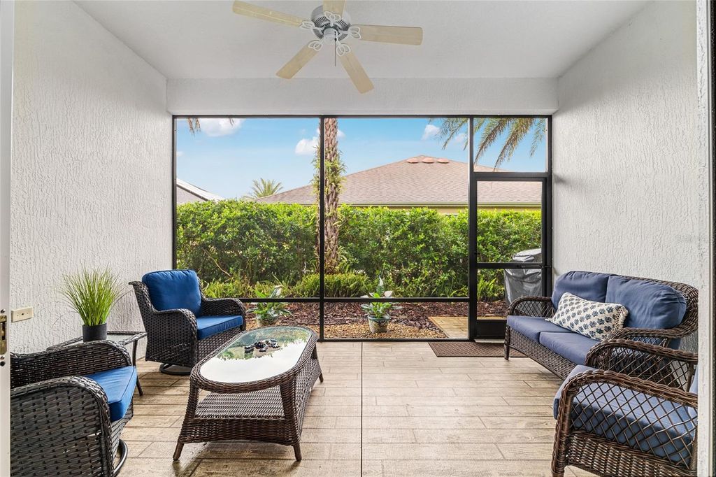 WELCOME TO THIS BEAUTIFUL DESIGNER HOLLY MODEL HOME IN THE VILLAGE OF CHARLOTTE! This well-maintained home offers a spacious and functional layout with numerous UPGRADES throughout. The kitchen is appointed with TILE FLOORS, GRANITE COUNTERTOPS, STAINLESS STEEL APPLIANCES, LOTS OF CABINETS, POT DRAWERS, a DESK AREA, and a NEW REFRIGERATOR with additional WATER FILTRATION under the sink. Enjoy the OPEN LIVING AREA with ROUNDED CORNERS, a 9FT SLIDER to the SCREENED LANAI, and TRANSOM WINDOWS for added natural light. The PRIVATE BACKYARD features a PAINTED FLOOR and a tranquil setting"”perfect for relaxing or entertaining. The LARGE PRIMARY SUITE offers DUAL SINKS, DOUBLE CLOSETS, SEPARATE WATER CLOSET, ROMAN TILED SHOWER, and a LINEN CLOSET. Your guest will love the privacy with a POCKET DOOR that creates a private suite with 2 additional bedrooms, including one with a WALK-IN CLOSET. The INDSIDE LAUNDRY has a built-in sink and cabinets. The 2-car garage has an EPOXY FLOOR, PULL-DOWN STAIRS to the attic space for additional storage Additional highlights include: WHOLE HOUSE WATER FILTRATION SYSTEM, 2024 QUIET BELT DRIVEN GARAGE DOOR OPENER, INSULATED GARAGE DOOR, PAINTED DRIVEWAY, EXTERIOR OF THE HOME PAINTED (OCT 2024). Most of the furniture is negotiable. This Gem is nestled in a QUIET NEIGHBORHOOD, SHORT DISTANCE TO THE POOL, and offers both comfort and convenience. The Village of Charlotte is centrally located near Brownwood Paddock Square, Colony Plaza, golf courses, recreation centers, shopping, dining, and nightly entertainment. THIS HOME IS MOVE-IN READY AND A MUST SEE - CALL TODAY TO SCHEDULE YOUR PRIVATE SHOWING! BOND BALANCE $12,972.56