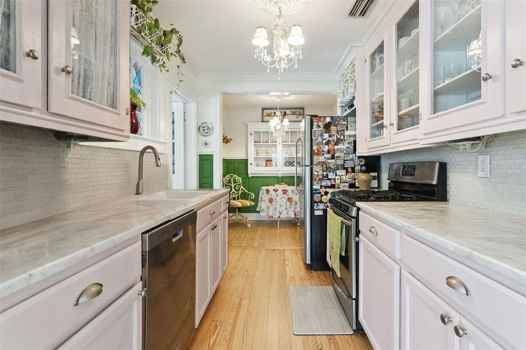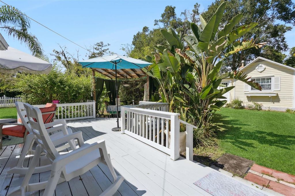 Price improvement for this charming Vintage Mount Dora Homes Just Steps from Downtown! Located within seven blocks of Mount Dora's quaint downtown and nestled on the eastern shore of Lake Dora"”part of the Harris Chain of Lakes"”this beautifully updated historic property offers both charm and versatility. The main home features two bedrooms, one bath, formal living and dining rooms, a spacious kitchen with a cozy eating area, indoor laundry, and a den that could serve as a third bedroom or office. A welcoming front porch with a classic porch swing and an expansive back deck provide perfect spots to relax and entertain. A brick pathway leads through the lush gardens to a delightful one-bedroom, one-bath cottage complete with kitchenette"”ideal for guests, extended family, or rental income. Set on nearly one-third acre and enclosed by a picturesque white picket fence, this property blends vintage Mount Dora character with modern updates and timeless appeal.