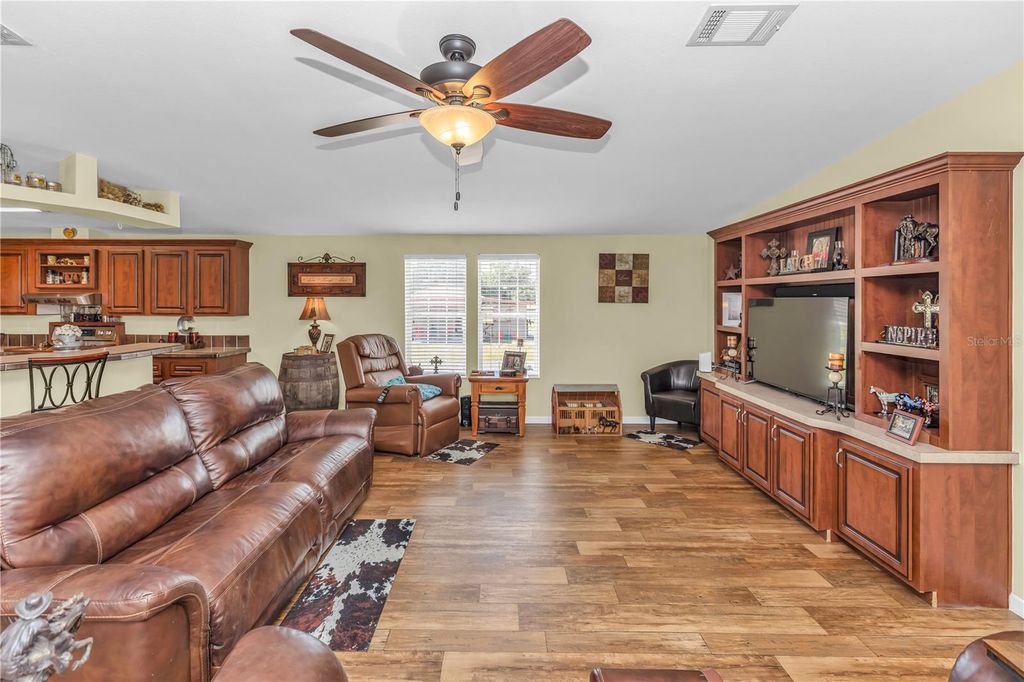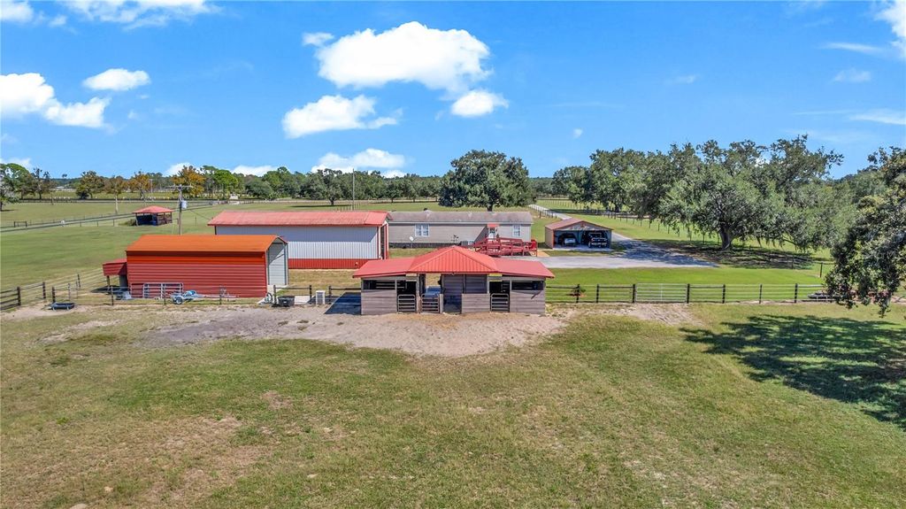 Surrounded by distinguished estates and equestrian properties, this 3-bedroom, 2-bath residence offers a rare blend of comfort, privacy, and premium amenities. The 2,000 square foot home sits on 6.38 fenced and cross-fenced acres designed for both style and function. Equestrians will appreciate the three-stall barn, feed and tack room with hay racks, automatic waterers, dedicated wash area, and high-end electric fencing with separate pastures. An oversized 54'X24' detached garage and workshop provides generous space for equipment or hobbies, complemented by covered parking for horse trailer and RV with 30 and 50 AMP plugs. With sweeping views, thoughtful infrastructure, and a setting among some of the area's most desirable homes, this property delivers the best of Central Florida's refined rural lifestyle. Located just minutes from the charming shops and restaurants of Mount Dora and the waterfront attractions of Tavares - Florida's Seaplane Capital - this property also offers easy access to Orlando's world-class attractions while maintaining the peace and beauty of country living. Enjoy a lifestyle where refined comfort meets the freedom of the open countryside along the Harris Chain of Lakes.