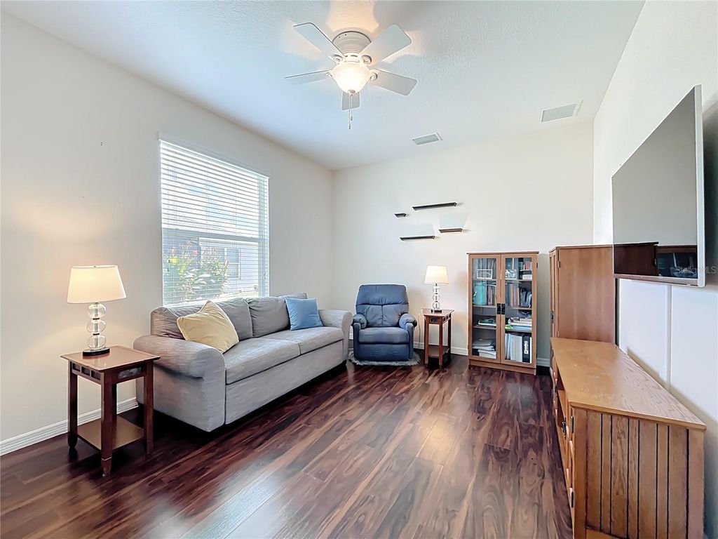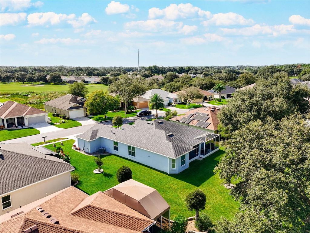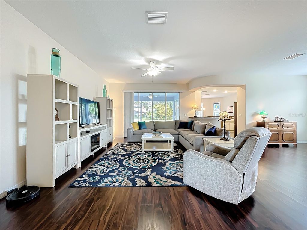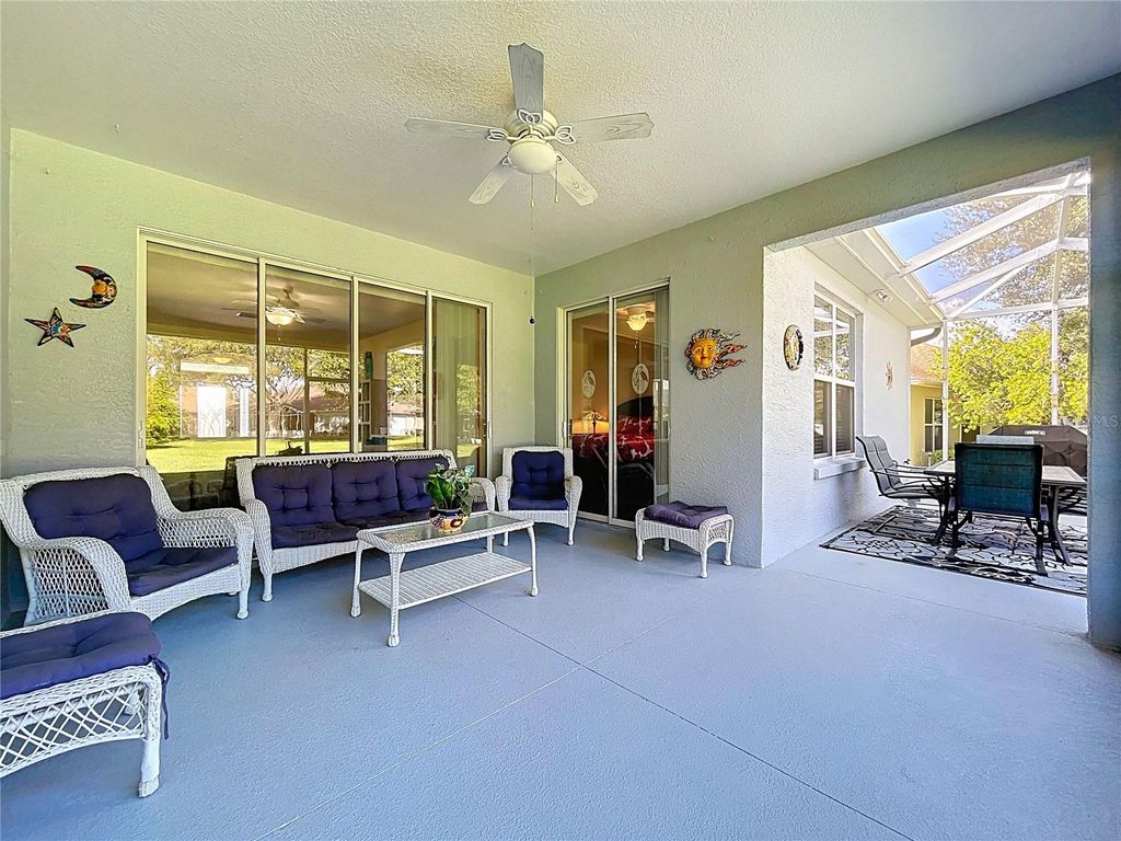 Fantastic Gated Golf Community for Active 55+ Living! This home offers a unique and versatile layout, featuring 4 bedrooms, or 3 bedrooms plus an office/study, an uncommon find in a 55+ community! Enjoy the flexibility to create the perfect space for guests, hobbies, or a quiet workspace, all within a premier golf community known for its beautiful surroundings and resort-style amenities. This gorgeous home features a WHOLE HOUSE GENERATOR, thermal pane windows, a beveled glass front door, epoxy garage floor, extra closet space throughout, and beautiful, easy-care landscaping designed for stress-free living. Open and bright kitchen featuring 42-inch cabinets, granite countertops, a convenient breakfast bar, soft-close drawers, pull-out shelves, recessed lighting, and a spacious breakfast nook, perfect for casual dining and morning coffee. Wonderful space throughout this home! There's plenty of room to accommodate family and friends when they come to visit. The primary suite is extra spacious, featuring a huge walk-in closet and a beautifully designed bath with a large tiled walk-in shower with a built-in seat, an extended vanity with a makeup area, a generous linen closet, and a private water closet for added comfort and privacy. Lastly, enjoy evening cookouts or gatherings on the large covered patio and open screened areas, ideal for hosting friends and family during Florida's perfect weather months. The backyard offers wonderful privacy, with neighbors set back at a distance, a spacious grassy area, and mature trees that create a peaceful, secluded atmosphere. So much to offer! This wonderful community offers an exceptional lifestyle! Enjoy a Championship golf course surrounded by a winding river and majestic old oaks that frame all 18 holes. Take advantage of the resort-style pool, perfect for cooling off on warm Florida days, or stay active in the spacious fitness center. Additional amenities include tennis courts, a full-service restaurant and bar, numerous clubs and activities, and so much more! With two convenient gated entrances and plenty of sidewalks throughout, this is truly a premier Central Florida location. Just 10-15 minutes to the Florida Turnpike, 45 minutes to Disney World and major theme parks, and 30 minutes to historic downtown Mount Dora. The Villages are only a short drive away, and everyday conveniences like an emergency care hospital, dog park, restaurants, grocery stores, and pharmacies are just minutes from your doorstep. Come discover the perfect blend of relaxation, recreation, and community. Make this gorgeous home and lifestyle yours today!