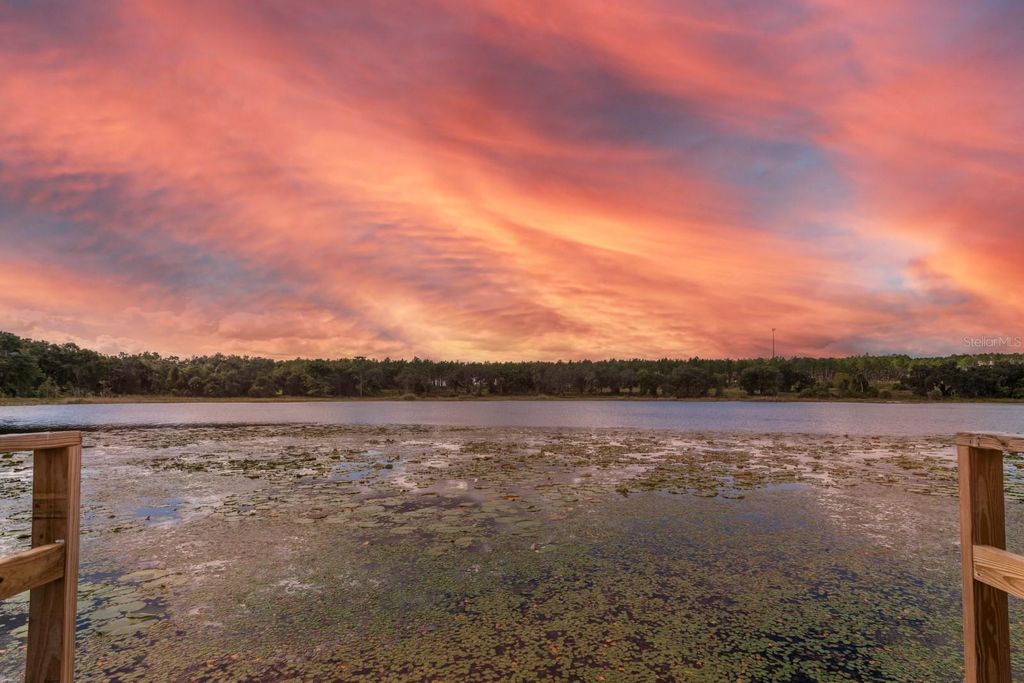 Nestled on 3.5 acres of serene waterfront countryside, this immaculate lakefront home offers the ultimate escape to peaceful rural living with no HOA! This charming 3-bedroom, 2.5-bath main residence includes a newly built 2-bedroom, 1-bath in-law suite with its own private entrance, perfect for guests or extended family. Embrace the tranquility of country life on a sparkling private lake, surrounded by sprawling acreage. The home boasts a 2015 metal roof, a security system, and updated windows, with a new A/C installed in 2019 and a whole-home gas generator for worry-free living. Fresh neutral paint graces both the interior and exterior, and the property is fully fenced, complete with a new chicken coop and resident egg-laying hens for that authentic farmstead feel. Step outside to a newly renovated private dock and a screened-in lakeside retreat, ideal for soaking in the beauty of outdoor country living. A majestic canopy of trees lines the driveway, welcoming you to the home's inviting foyer. Inside, the expansive living room opens up with large windows showcasing breathtaking lake views. Luxury vinyl and tile flooring flow throughout, complemented by a kitchen and separate dining room that share the same stunning waterfront vistas. A fully glassed-in sunroom off the kitchen invites you to bask in the natural beauty, while a screened pergola with an upper deck leads to an above-ground pool for warm summer days. The spacious primary bedroom captures the lake's serene beauty. It features two closets, including a walk-in, plus a renovated en-suite bath with a walk-in tub, double vanity, and updated cabinetry. The fully renovated guest bath adds modern comfort, while the guest bedroom overlooks the front yard's newly planted orchard, brimming with avocado, orange, peach, and banana trees. Just minutes from The Villages and Lake Weir, with boat ramps a half-mile away for access to the Chain of Lakes and Silver Springs, this property is a haven for outdoor enthusiasts. Enjoy endless recreational activities, from fishing and boating to soaking in spectacular sunsets. If you dream of peaceful country living by the water, with wide-open spaces and rural charm, this lakefront gem is your perfect home!