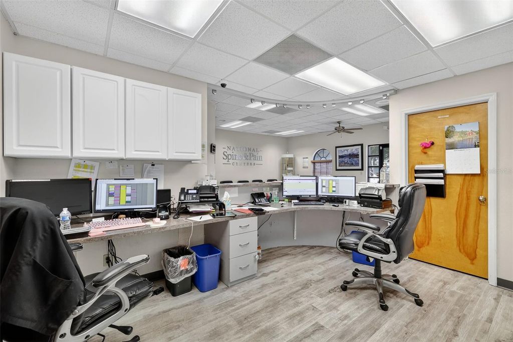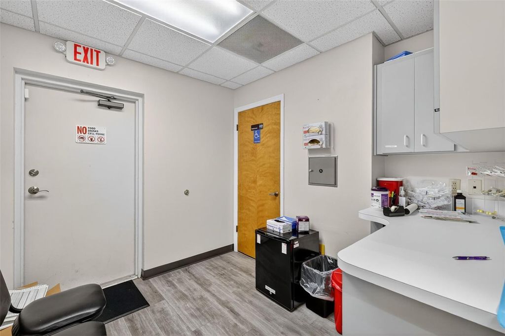 Excellent opportunity to establish your business venture in The Lady Lake Professional Plaza. Units 2 & 3 offer over 2300 sq ft of space to configure as needed. It currently offers a covered entry into a large waiting area with an extended Reception area and Patient Rest Room. This area opens to the main Hallway and 6 additional work areas to be utilized as Patient or Office rooms. To your left, the second Hallway opens to 2 more Patient Rooms, multiple Storage rooms and 2 additional Rest Room Facilities. There is also a separate Employee Lunch Room with its own Entry/Exit door. This easy access location is immediately off US HWY 441 in Lady Lake surrounded by The Villages Community. Call for your private tour. NOTE: All Pictures were taken after normal Business Hours........