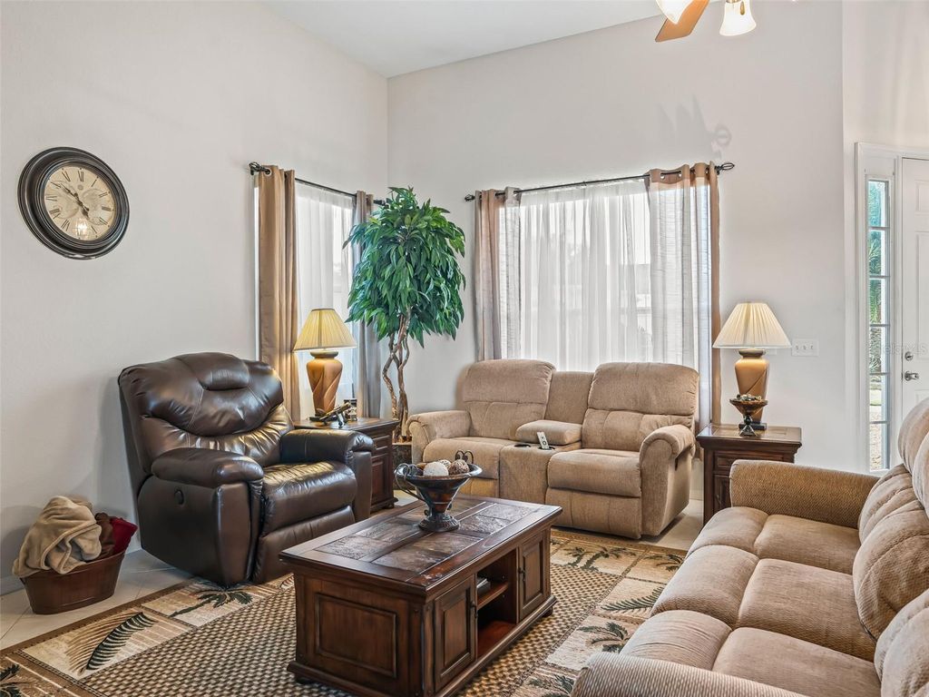 Welcome to your luxurious retreat at 17243 SE 116th Court, Summerfield, FL 34491. This stunning, TURN KEY furnished POOL home is located in the highly desirable, gated active adult community of Stonecrest. Offering a perfect blend of elegance and resort-style living, this residence provides an exceptional lifestyle with extensive amenities"”all without bonds. Situated at the end of a peaceful cul-de-sac on a generously sized, professionally landscaped lot, this home is surrounded by towering palms and flowering trees that provide privacy and beautiful scenic views of the countryside, including tranquil pastures and grazing cows. Relax and enjoy the soothing sounds of a cascading waterfall and vibrant pool lighting as the sun sets"”pure serenity. The spacious two-car garage features epoxy flooring, plus an additional garage for your golf cart, along with gutter systems and convenient pull-down attic stairs. Inside, you'll find impressive architectural details like arched doorways, textured walls and ceilings, ceiling fans, and an inviting eight-foot front door. The Sanibel model boasts three bedrooms and two bathrooms with an open, split-floor plan designed for comfort and elegance. High ceilings of 10-12 feet create a grand atmosphere, while the seamless flow between the living, dining, and breakfast areas makes entertaining a breeze. The kitchen is a chef's dream, with ample oak cabinetry, stylish granite countertops, recessed lighting, black and stainless appliances, and a large pantry. Through the eight-foot sliding glass doors, step out onto your private lanai and enjoy the inviting pool and backyard oasis. The primary suite is a true sanctuary, featuring sliding glass doors that lead directly to the pool area, a spacious walk-in closet, dual granite vanities, abundant natural light from a glass block window, built-in shelving, and a private bath with a corner soaking tub and walk-in shower. Outdoor living is a highlight with a backyard designed for entertaining"”featuring a waterfall, colorful lighting, cool decking, and a pool cage. The covered front porch and large lanai offer additional space to relax and enjoy the Florida sunshine. Recent upgrades include a roof replaced (2023), air conditioning system (2023), new washer, and pool pump, ensuring comfort and peace of mind. Practical features like an epoxy garage floor, gutter system, and pull-down attic stairs add to the convenience. Living in Stonecrest means embracing an active Florida lifestyle. Enjoy four pools, pickleball courts, softball, and over 90 clubs for socializing, fitness, and hobbies"”just a short golf cart ride from your door. Don't miss this exceptional opportunity. Schedule your private showing today and start living the dream in beautiful Stonecrest! Use this link for a Virtual walkthrough; https://opulent-rem.aryeo.com/videos/019a12dc-7209-7278-a1de-4ed9f2a26916
