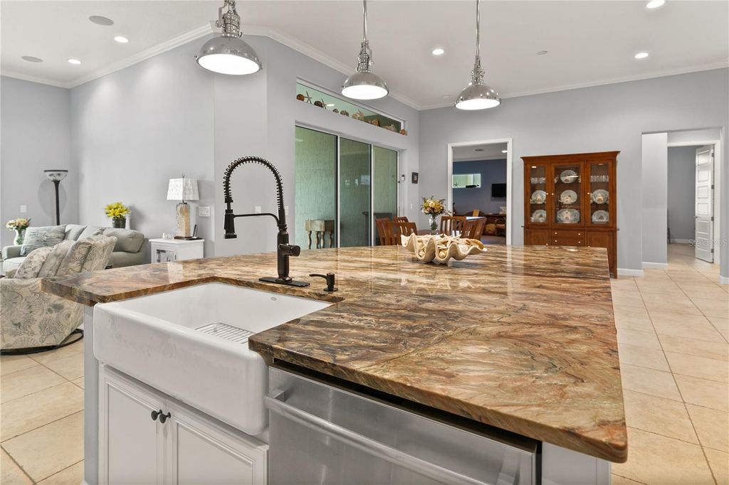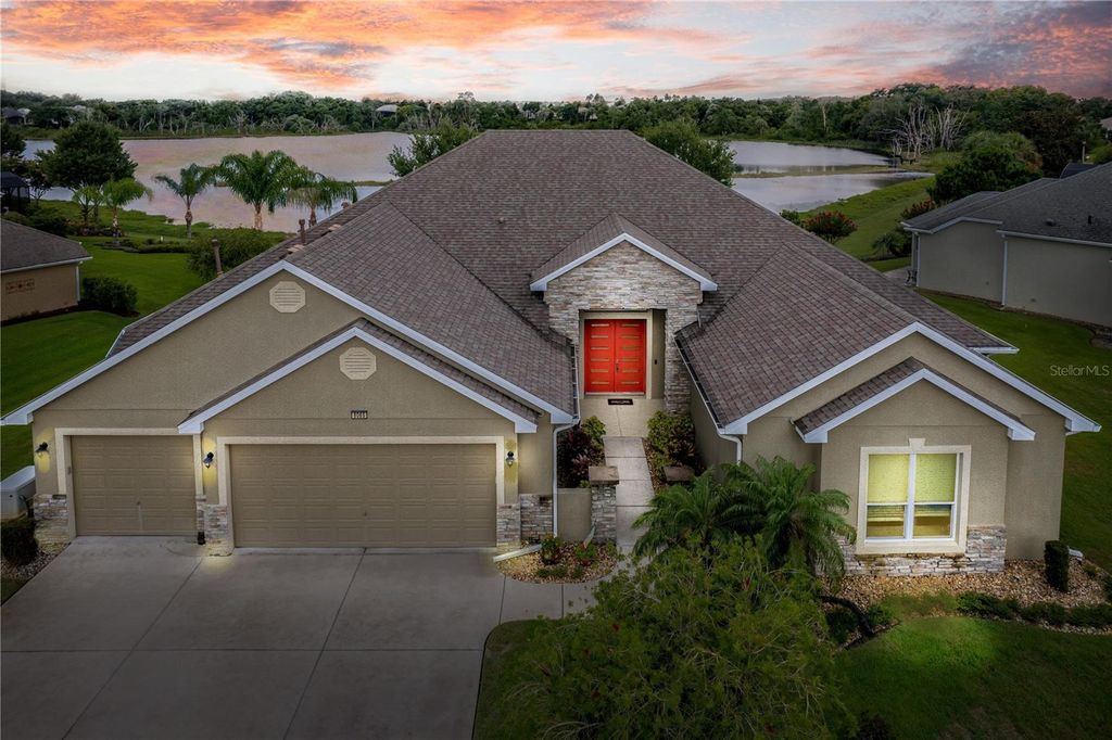 Welcome to your dream home nestled on a serene waterfront lot, where luxury meets functionality. This custom-built residence boasts exceptional features designed for comfort and sophistication. Key Features Include: Solar Heated Saltwater Pool and Jacuzzi: Enjoy year-round swimming and relaxation in a pristine, environmentally friendly pool and jacuzzi. Large 3 Car Garage: Includes an electric attic lift for additional storage, catering to automotive enthusiasts and ample storage needs. Custom Built with High-End Finishes: Featuring built-ins, high ceilings, and elegant crown molding throughout. State-of-the-Art Chef's Kitchen: A culinary masterpiece with unique fusion granite countertops, top-tier built-in cabinetry, and professional-grade appliances. Entertainment Spaces: Bonus room designed as a stylish man cave with a built-in bar, adjacent half bath, and sliders offering pool and lake views. Deluxe Primary Bedroom Suite: Highlights oversized custom his and her closets, French doors opening to the pool area, and a luxurious ensuite bathroom. Spacious Guest Suites: Includes a guest suite with a built-in Murphy bed, ensuring comfort and versatility. Additional Features: Massive guest bedroom would make an ideal space for an in-law suite if desired. Whole House Generator and Enhanced Security: Ensuring peace of mind with reliable backup power and advanced security features. This exceptional property combines luxury with practicality, offering unparalleled amenities for discerning homeowners. Experience waterfront living at its finest with every detail meticulously crafted for your comfort and enjoyment. The Lakes of Mount Dora which is seen by many as one of the premier 55+ communities in all of Central Florida, has many amenities for your use, including a 18,000 sq ft club house that offers large library room, billiard room, arts/craft room, card/game room, and fitness center along with the social hall where many events and activities are held. Plenty of clubs for those who like to be social. Outside the club house you'll find a resort style pool with hot tub, walking trail, bocce ball and croquet lawn, pickle ball and tennis courts. Besides all this, your monthly HOA fee also includes cable and internet, gated RV/Boat parking, and reclaimed sprinkler water. 10 minutes away is the picturesque town of Mount Dora with all the festivals and quaint restaurants, unique shops, gorgeous sunsets over Lake Dora, boat tours, etc., there is something for everyone! Less than an hour from Disney/Orlando. When you see it you will love it! Call for more details!