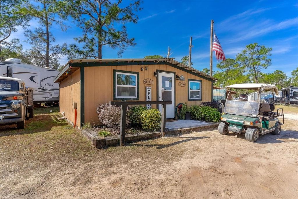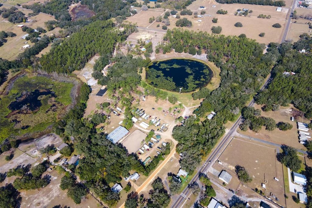 This unique property, located in the rolling hills of North Lake County, is situated on over 13 acres of lakefront pasture and hills. Fiddlers Green RV Park has 26 full-hookup RV sites, two 1,500 SF 2-bedroom 2-bath villas, a 1-bedroom 1-bath park model, a bathhouse, and laundry. The equestrian amenities are anchored by the 9,600 SF covered arena, unique to the area, horse barns, stalls, paddocks, tack and feed rooms, and plenty of grazing area. The park has been a long-established venue for many equestrian activities and a great place to camp and begin your exploration of over 100 miles of horse trails in the Ocala National Forest. With its unique flexibility, this property's tranquil surroundings would be a great setting for a "Non-profit Entity" seeking a pastoral setting with a connection to the outdoors. With over 13 acres and plenty of room to build, the multigenerational family can enjoy this lifestyle while having an alternate source of income from the park operation. Contact your agent to arrange for a private showing or to receive more detailed information. Due to the ongoing operation of the park, no one should enter the property without being accompanied by the listing agent.