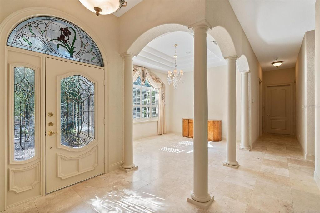 One or more photo(s) has been virtually staged. Experience an exceptional blend of luxury, craftsmanship, and estate style living in this custom built home on over an acre of beautifully manicured land. Offering nearly 3000 square feet, this residence was designed with intention and built with premium materials that set it apart from anything else on the market. Every detail reflects elevated quality from the fourteen foot ceilings to the tray accents, intricate cut outs, crown molding, and artisan finishes that define each room. ROOF 2022, AC 2023, WELL 2023 The heart of the home is the expansive kitchen designed with curated details, abundant cabinetry, and a massive walk in pantry. The primary suite is a true retreat with a resort style marble bathroom featuring a fully marble bathtub, step, and shower along with a large custom closet. Additional bedrooms are spacious with high ceilings and include thoughtfully crafted built in shelving and a dedicated desk area. The enclosed back porch offers an elegant extension of the home with generous space for an outdoor kitchen, morning coffee, or evening gatherings. Mature landscaping, two electric water fountains, and a stone gas fireplace frame the property with an estate like feel. A massive laundry room, a well maintained two car garage, a young roof, young AC, and a new well complete the home with long term peace of mind. Stained glass accents add character and artistry throughout while natural light enhances the home's warm and inviting design. Adjacent access to Lake Dorr provides opportunities for boating, fishing, and kayaking offering a rare combination of luxury living and outdoor recreation. Conveniently located within twenty minutes of grocery stores and twenty five to thirty minutes from downtown Eustis and Mount Dora for dining and entertainment. This home stands as a one of a kind offering where quality, comfort, and craftsmanship come together. It is ready to be brought to life by its next owner.