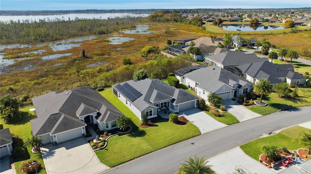 Stunning TURNKEY Aspen Model in the Highly Desired Village of Dunedin "” NO BOND! Welcome to this beautifully maintained three-bedroom, two-bath Aspen model perfectly situated in the prime Village of Dunedin. From the moment you arrive, the attractive curb appeal stands out with manicured landscaping, and a EXPANDED two-car garage. Roof 2016 solar panels installed 2021 and paid off in full. Inside, an open and airy floor-plan greets you with abundant natural light, soaring ceilings, and elegant diamond-pattern tile throughout the main living areas. The spacious kitchen is ideal for both everyday cooking and entertaining"”featuring Quartz countertops, TALL cabinetry, a movable island, and a stylish built-in wine or coffee bar. A pocket door creates a private guest suite where visitors will appreciate a generously sized bedroom, a hallway closet, and an updated guest bath with granite counters and a walk-in tile shower. The primary suite offers a peaceful retreat with tray ceilings, four large windows, and an additional solar tube. The en-suite bath includes QUARTZ counters, a walk-in tile ROMAN shower, a private water closet with a pocket door, and a large walk-in closet. Additional highlights include an indoor laundry room with upper cabinets and an expanded garage complete with floor-to-ceiling storage cabinets and a utility sink. One of the home's most impressive features is the oversized lanai, spanning the width of the home. This inviting outdoor living space offers diamond-pattern tile, collapsible patio doors, and tranquil views of a wildlife preserve"”perfect for relaxing, entertaining, and even offering ROOM FOR A POOL. Energy-efficient living is already built in with a PAID-IN-FULL solar power system and a new water filtration system. All of this just 3 miles from Brownwood Paddock Square and close to Evans Prairie, Bonifay, and Belle Glade Country Clubs"”putting golf, pickleball, pools, recreation centers, and more right at your fingertips. Come see why this Dunedin gem is the perfect place to call home. Enjoy the beautiful video included!