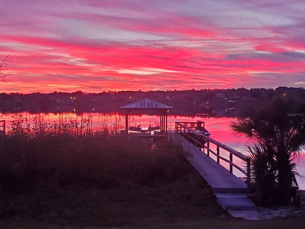 Experience the best of waterfront living in this beautifully custom-built home, perfectly situated on Lake Saunders with 64 feet of direct lake frontage. The property features a private boathouse equipped with an electric lift and a spacious dock, making it ideal for boating, fishing, or simply relaxing by the water. A covered entrance with a welcoming fountain sets the tone as you arrive, and expansive lake views can be enjoyed from multiple rooms throughout the home. Built in 2004, this block construction custom built one owner home offers 2,901 square feet of thoughtfully designed living space. The split floor plan includes three bedrooms and two bathrooms, providing both privacy and comfort. Real wood flooring runs throughout the main living areas, while tile is used in wet zones for durability and plush carpeting in each of the three bedrooms. The family room features a wood-burning fireplace and sliding glass doors that open to a screened lanai, perfect for enjoying gorgeous sunset views over the lake. With 10 ft high ceilings and open window view of the lake from the master bedroom, living room, kitchen, breakfast nook, back porch and dining room it looks like you live on a boat with the best sunsets you have ever seen. The kitchen is equipped with solid wood cabinetry, granite countertops, a large center island with a four-burner electric cooktop, and stainless-steel appliances. There is a generous pantry closet, a breakfast nook, and a formal dining room for family gatherings. The master bedroom includes a spacious walk-in closet, and the master bathroom features a double vanity with engineered stone countertops, a jetted Jacuzzi tub, and a 6x3 walk-in shower with dual shower heads. The Roof was replaced in 2022 and Windows replaced in 2019 - all permitted. An oversized two-car garage provides plenty of space for vehicles and storage, and numerous upgrades are found throughout the home. The HOA amenities include lawn service for homeowners, a Clubhouse with full kitchen, restrooms, pool, shuffleboard courts, community boat ramp, and additional boat slip with additional cost. Schedule your private tour today and discover the exceptional lifestyle this Lake Saunders Pointe home has to offer. All info is deemed correct but we recommend the Buyer verify all information.