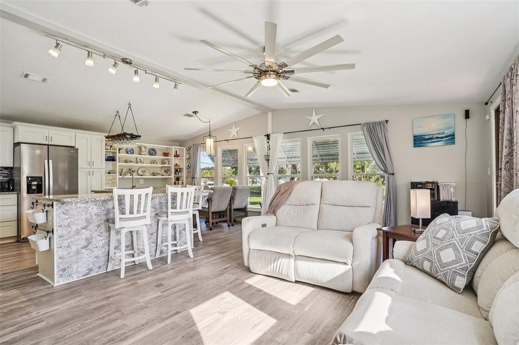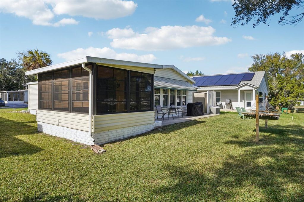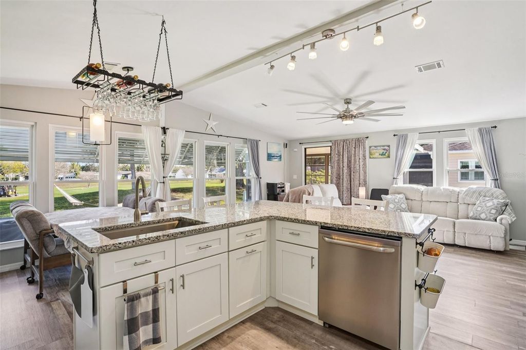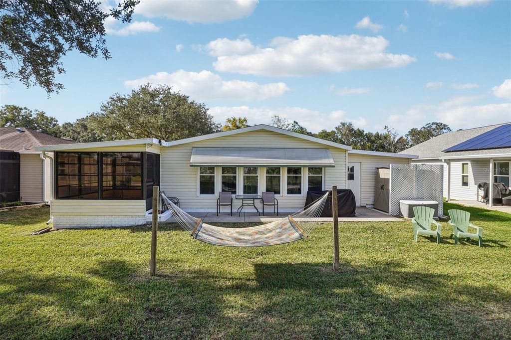 Claim your piece of paradise in the world's most exciting retirement community, The Villages, FL!!! This TURNKEY, MOVE-IN READY GOLF-FRONT RETREAT is where comfort, style, and breathtaking views come together! This beautifully upgraded 2-bedroom, 2-bath home with 1,144 sq. ft. is perfectly positioned to capture sweeping golf course vistas from nearly every angle"”whether you're relaxing by the large double-paned windows in the living, dining, and kitchen areas, unwinding in the Florida room, enjoying the back patio, or swaying gently in a hammock overlooking the fairway. The absolute showstopper is the FULLY UPGRADED KITCHEN, designed to impress and inspire, featuring soft-close wood cabinetry, GRANITE COUNTERTOPS, a stylish tile backsplash, pull-out drawers, and a massive island that's perfect for entertaining or casual dining. NEW LUXURY VINYL PLANK FLOORING flows seamlessly throughout the home, enhancing both beauty and durability. The ENCLOSED SCREENED CARPORT with sliding doors adds versatile living space"”ideal as a bonus room, hobby area, or breezy lounge. Additional highlights include a NOVA WHOLE-HOUSE WATER FILTRATION SYSTEM, Wi-Fi-controlled thermostat, surround sound in the living room, and a cozy ELECTRIC FIREPLACE for added ambiance. Outside, you'll love the WIDENED DRIVEWAY accented with solar lighting and a convenient outdoor storage shed. Peace of mind comes standard with major updates already completed: ROOF (2019), HVAC (2020), and HOT WATER HEATER (2023). This is GOLF-FRONT LIVING AT IT'S FINEST"”stylish, serene, and truly move-in ready. Just bring your suitcase and start enjoying the view and all the world-class amenities in The Villages: endless recreation, championship golf, live entertainment, dining, shopping, and beautiful town squares"”all connected by scenic golf-cart paths. With friendly neighbors, an active lifestyle, and sunshine year-round, The Villages is the perfect place to relax, explore, and truly enjoy life. Schedule your private showing today!