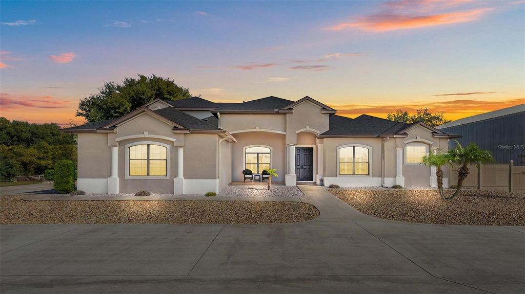 EXPERIENCE THE PERFECT HARMONY OF LUXURY, FUNCTIONALITY, AND NATURAL BEAUTY IN THIS MAGNIFICENT RESIDENTIAL MASTERPIECE ON 5 ACRES OF PRISTINE LAND!!! This masterfully constructed block home offers 5 Bedrooms. 4 Bathrooms, and 3 car garage. The main living floor hosts the sophisticated primary suite positioned for privacy & ease, featuring a tray ceiling, crown molding, separate sitting room, two California Custom Closets, a huge walk-in shower, French doors, a garden tub & plantation shutters. The thoughtfully designed split floor plan offers a bedroom in front of the home & a separate guest wing with 2 large guest bedrooms plus 2 nearby bathrooms. A chef's kitchen is appointed with a Whirlpool professional appliance suite, cooktop, double wall ovens, granite countertops, & 42" cabinetry that anchors an open-concept design. A formal dining room includes a tray ceiling, crown molding, plantation shutters, & beautiful lighting. The main floor offers a spacious & inviting layout designed for both quiet relaxation and gracious entertaining with guests. Relax by the warmth of the wood burning/gas fireplace in the exquisite living room, where two large windows offer tranquil views of nature. Upstairs features a guest suite, kitchenette, wet bar, storage room, plus a huge loft that is perfect for a recreation room. Step outside to your exceptional outdoor living area that is beautifully elevated with a generous lanai featuring a stunning resort-style saltwater pool with water features, all set within impeccably landscaped grounds. Adjacent to the pool deck is an impressive, Alfresco summer kitchen with a built-in grill that serves as the hub for an elevated lifestyle. The grounds are an active oasis, featuring a custom-installed putting green for golf enthusiasts and a croquet court for social gatherings & leisurely afternoon. A 40 x 60 "like new" metal building is a versatile & durable steel structure that offers 2,400 sq ft of interior space, which can serve for a wide range of uses. The walls are 18' tall, center is 24' tall & has (TWO) 14' insulated doors. This extraordinary property will not last long. Schedule your private showing today!! At the entrance of this property is an electric gate & 12' wide driveway with over 7000 sq ft of 4" thick concrete. The property is bordered by an extensive run of modern Four-Rail (Tan) Vinyl fence which provides a simple but elegant boundary without obstructing views of the land. AC units are BRAND-NEW & the roof was replaced in 2022. THE HOT TUB DOES NOT CONVEY WITH THE HOME BUT MAY BE PURCHASED OUTSIDE OF CLOSING.