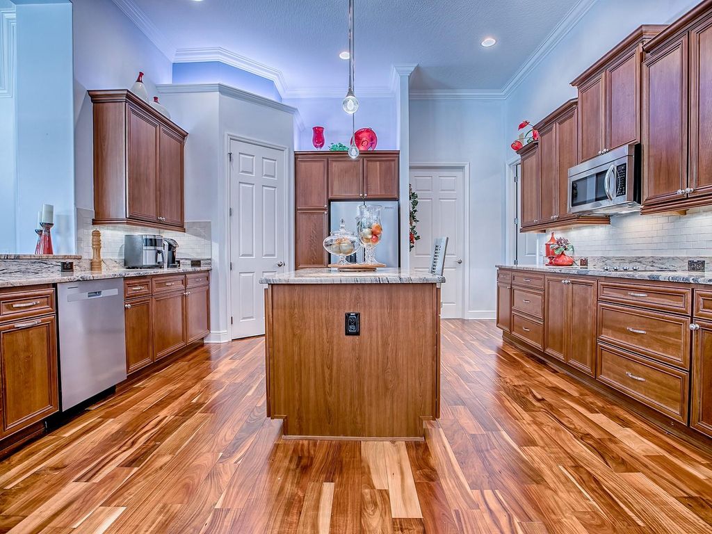 STUNNING, REMARKABLE, CUSTOM, EXPANDED 4700+ SF GRANDVIEW PREMIER HOME WITH SPECTACULAR POOL AND SPA, SUMMER KITCHEN, LARGE BONUS ROOM, OVERSIZED 1100+ SF GARAGE LOCATED IN THE VILLAGE OF LAKE DEATON. This AMAZING home sits on almost an acre of land and offers COMPLETE PRIVACY with a BEAUTIFUL WOODED VIEW. The lovely LEADED GLASS front doors give you a glimpse of what you will find once you enter the home! GORGEOUS ACACIA WOOD flooring throughout much of the home, CROWN MOLDING, custom FIREPLACES, even an upstairs BONUS ROOM! The formal living room has an amazing view of the pool area as do so many of the other rooms in the home. You'll find a Butler's pantry in the hallway to the kitchen, an area you will really enjoy when entertaining. The kitchen offers the same beautiful wood flooring, CHERRY cabinetry, GRANITE countertops (which you will find on all countertops in the home), subway TILE backsplash, under and over cabinet lighting, a WALK-IN CLOSET PANTRY, an island with pendant lighting, and all KITCHEN AID STAINLESS appliances with a DOUBLE WALL OVEN, and a brand new refrigerator! The kitchen opens out to the spacious family room with a casual dining area, and a BUILT-IN GAS STONE FIREPLACE. This room as well as the formal living room open with sliding glass doors out to the vast POOL AREA. This is such a great space for enjoyment with the POOL & SPA, Summer kitchen, gas fireplace and TV, and another gas firepit area to enjoy as well as many other spaces for lounging, dining, and entertaining. This split floor plan model offers more privacy for you and your guest with 3 of the guest rooms on one side of the home with their own guest bath. The 3rd bedroom even offers a private entrance to the pool area. These rooms have all been freshly painted and all have nice large closets. The primary bedroom has French doors that open out to the pool area, a tray ceiling with crown trim, and an EN-SUITE bath, and 2 large WALK-IN closets. The bath has dual sinks, a vanity, a soaking tub, Roman shower, separate toilet room and linen closet. A custom room was built off of the kitchen and does have a large closet, therefore can be a 5th bedroom if needed. The inside laundry has a FRONT LOAD washer and dryer that do convey with the home and a large storage closet. There is a mudroom off of the hallway that leads to the upstairs where you'll find the BONUS ROOM - great for the grandkids, workout room, game room - the skies the limit! And then there is the OVERSIZED HUGE GARAGE with room for 4 cars, golf cart, and all your toys. This is a unique, SPECTACULAR HOME - an UNUSUAL FIND! You'll love the location, whether it's GOLF, RECREATION, SHOPPING, DINING or ENTERTAINMENT, everything is close to home! The EVANS PRAIRIE CHAMPIONSHIP GOLF COURSE is close by as well as the Eisenhower Recreation Center and Brownwood Town Square! COME SEE ALL THIS HOME AND AREA HAS TO OFFER!