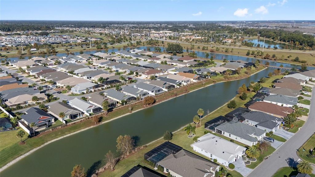 Experience refined courtyard villa living in this stunning 3-bedroom, 2-bath Winslow-C located on a quiet cul-de-sac in Linden Isle, one of the most desirable enclaves of The Villages. This exceptional home offers a seamless blend of modern elegance and serene outdoor living, highlighted by a panoramic water view that brings beauty and tranquility into every day.From the moment you arrive, the home makes a striking impression with its custom decorative driveway and walkway, upscale garage doors, and timeless architectural detailing. Step inside and experience an expansive, open floor plan filled with natural light. Wide, luxury vinyl plank flooring flows throughout the main living areas, creating a warm, sophisticated ambiance. The heart of the home is the chef's kitchen, featuring an abundance of cabinetry, upgraded hardware, under-cabinet lighting, subway-tile backsplash, a center island, and premium stainless-steel appliances including a gas range"”perfect for the culinary enthusiast.Massive sliding glass doors open fully to an impressive EAST facing screened lanai with electronic privacy screens, transforming the indoor-outdoor experience and framing sweeping water views that feel both private and picturesque. Whether enjoying morning coffee or evening gatherings, this space will quickly become your favorite room in the house. Beyond the lanai, a beautifully finished patio with decorative coating and fenced yard offer additional outdoor living and entertaining areas.The spacious primary suite enjoys peaceful views and offers a luxurious retreat with its ensuite bath including duel sinks , Roman shower, separate water closet, and a custom walk-in closet.. Two additional guest rooms provide comfort and flexibility for visitors, a home office, or hobby space.Additional upgrades include epoxy-style coated garage flooring, designer lighting, newer finishes throughout, and impeccable landscaping that enhances both curb appeal and privacy.With its premium location, gorgeous water views, and elevated interior design, this Winslow-C Villa stands out as a rare opportunity"”an exquisite blend of style, comfort, and the sought-after Florida lifestyle. Call today for your tour!