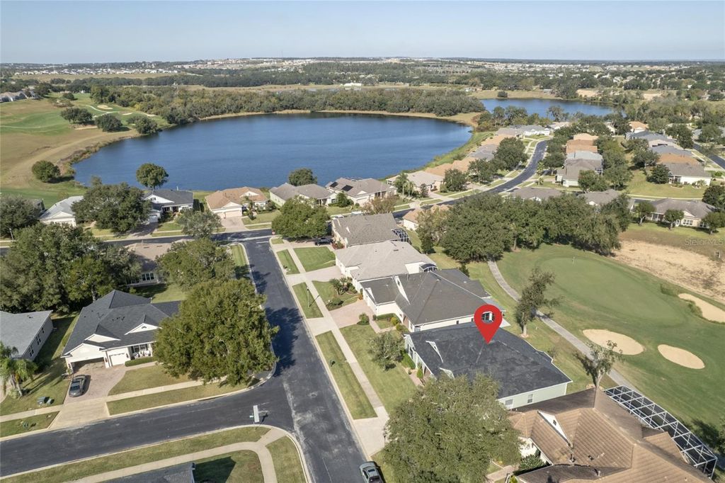 Great view on the golf course from the family room, kitchen, living room, office and primary bedroom! Gated golf community with 769 single family homes built by Levitt & Son's between 2000-2005. Pinehurst floor plan, very open, 2209 SF, Gorgeous view of mature trees in backyard. Carpet only in bedrooms. Approach this home past front paver sidewalk and driveway. There is 1 set of patio siders off the living room to screened in lanai with paver bricks & 1 off the family room. Kitchen has 42" wood cabinets, appliances, double sink, granite counter-tops, stove, closet pantry, and eating space in the kitchen. Den has a jack and jill bathroom in between to rooms. Huge Master bedroom has 2 lg walk-in closets. The master bath has lg separate shower, private commode, walk-in tub and double vanities. 2rd bedroom can be for those lovely grandchildren when they visit or your friends from up north that are trying to escape from the cold. 3 car garage has extra storage, gas hot water heater. BONUS: NEW TILE ROOF IN 2024, AC has been replaced. Other extras include: etched front door, crown molding, rounded corners, new landscaping, 10' ceilings., exterior of home has been recently painted, screened in lanai, all under roof, all window treatments stay and fans and fixtures. Backyard view is very serene and peaceful, Resort style 28,000 SF clubhouse has 8 clay lit tennis courts, 7 new pickleball courts, shuffleboard, bocce, heated indoor-outdoor pools/sauna, gazebo, ballroom/stage & dance floor, kitchen for catering, billiard room, office, 2 card rooms, arts & crafts room/kiln, lobby, 19th Hole/bar & lg screen TV, library & too many clubs & activities to mention. Full time HOA representative and activities director on property. Location is pristine, 4 mi. off turnpike, 1/2 hr. to theme parks or Orlando airport, 1 hr. to either coast, many lakes, NTC, bike trails & hospital. Many lakes in Clermont for fishing & it has become a main attraction for Triathlons because of its hills, lakes & perfect weather. Best kept secret in Florida, safe, friendly (dogs too), golf cart friendly, and affordable. Call today for a showing. There is a onetime transaction fee paid to the HOA by the buyer in the amount of $1,738.30.