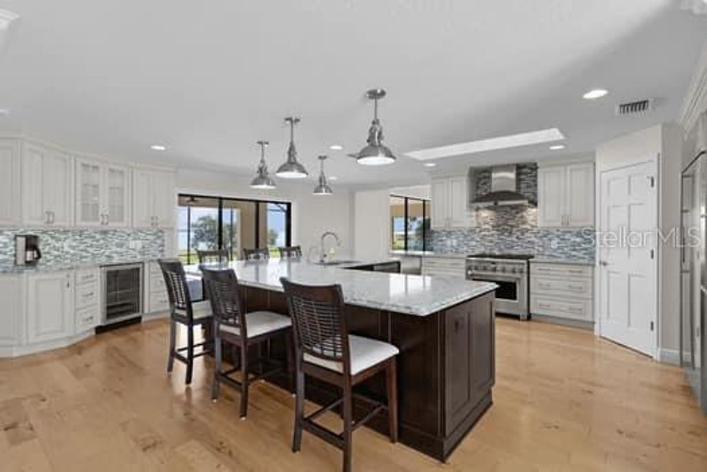Must see this totally updated, custom built 4 bedroom, 3.5 bathrooms w/ 3 car garage on beautiful Lake Griffin. Block & Stucco w/ hardy board finish, newer architectural shingle roof (2017), gutters & downspouts, widened concrete driveway, 5 skylights & stone facade. Impressive exterior front entry w/ leaded glass front door. Gigantic lanai + birdcage (48x21) overlooking panoramic views of lake with Eastern exposure. Stem wall has been built to protect .56 acre property. Newer, double pane windows throughout home. Lanai also has propane gas lines w/ propane tank buried on property. Multiple HVAC systems (2016). Hardwood floors throughout the home w/ 5 1/4" baseboards & crown molding. Orange peel walls & knockdown ceiling texture. Interior has been recently painted as well. Great Room has volume ceilings, fireplace & separate closet for surround sound/theater system. 3 large pocket patio sliders allow open access to lanai w/ incredible water views. Oversized kitchen w/ quartz countertops, soft-close cabinet doors, pull-out cabinet drawers, touchless faucet, glass backsplash, built-in coffee maker, top-of-the-line stainless steel appliances, commercial grade refrigerator, propane gas convection range/oven, warming drawer, Advantum oven/microwave, walk-in pantry & island that seats 8. Dry-bar w/ wine rack, wine cooler & icemaker. Inside laundry w/ tub. Lots of additional storage throughout home. Water softener/filter & insta-hot system creates immediate hot water on demand. There is a bedroom that could serve as in-law suite. Large bedroom, w/ closet & full bathroom w/ tiled shower. All bedrooms have gorgeous views of Lake Griffin. Master Bedroom has large walk-in closet. Granite countertops, walk-in tile shower & 2 sink bowls. All bedrooms have closet organizers. Separate 220 electric to charge electric vehicles in garage. Pocket door that separates bedrooms from living area for additional privacy. Call Kevin today for your personal tour of this amazing home.