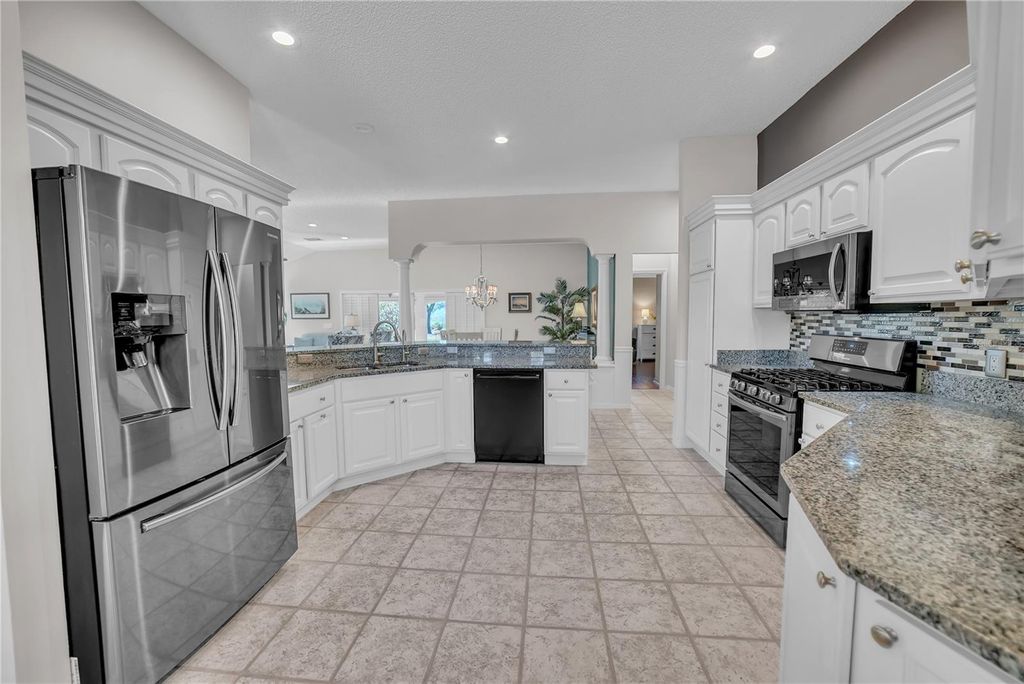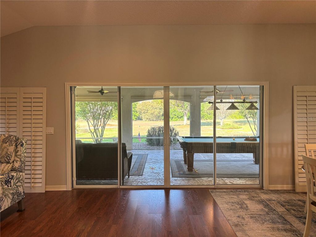 LOOKING FOR BACKYARD LANAI SUNSETS/Room for a Pool/Large under cover Lanai/Room for an Outdoor Kitchen? THIS IS THE HOME FOR YOU! SIGNIFICANT PRICE IMPROVEMENT - SELLER SAYS BRING ALL OFFERS! Rare opportunity to own true golf course frontage on desirable Hazelwood Loop! This beautifully maintained Magnolia Model is perfectly positioned on the 6th hole of Amberwood Golf Course with no rear neighbors, offering exceptional privacy, peaceful views, and an oversized backyard with room for a pool and expanded lanai equipped with Gas, Electrical and Water connections-Put your own flair OUTDOOR KITCHEN IN. NO BOND | MAJOR UPDATES COMPLETED: --Roof (2018) - HVAC (2021) -Water Heater (2018) - Fresh Interior & Exterior Paint n 2023/2025 No carpet, Vaulted Ceilings, open concept, privacy guest bedrooms and bath equipped with a pocket door separating rest of the home, Beautiful Glass entry door with slide screen for marvelous cross breeze throughout the living area. Step inside to a bright, open floor plan featuring a chef's kitchen with granite countertops, abundant cabinetry, newer stainless-steel appliances, gas range, Bosch dishwasher, and a high-top breakfast bar overlooking the main living area. Sliding glass doors lead to your expanded screened lanai, designed for entertaining with upgraded flooring, recessed lighting, new fans (3), privacy screens, and stunning golf & wooded views. Outdoor kitchen area is already equipped for gas, electric, and water"”just add your grill and cabinets ADDITIONAL FEATURES INCLUDE: "¢ 3 Bedrooms / Den | 2 Bathrooms "¢ Luxury laminate & upgraded tile flooring "¢ Plantation shutters throughout "¢ Shiplap accents & modern lighting "¢ Three solar tubes for natural light "¢ Indoor laundry with sink & cabinetry "¢ Oversized garage with epoxy floors, cabinetry & electronic privacy screen "¢ Attic with pull-down stairs, flooring, lighting & ventilation "¢ Updated ceiling fans, outlets & finishes "¢ Low-maintenance, manicured landscaping with butterfly gardens BONUS: Some furniture conveys (list available), including pool table and lanai furniture"”making this home truly move-in ready or ideal for seasonal use. Enjoy close proximity to recreation, golf, dining, and all the lifestyle amenities that make this community so desirable. Chatham Rec Center Competitively priced and repositioned based on market feedback"”this is one of the best values on a golf course lot in the area. Schedule your private showing today and experience the views, privacy, and potential this home offers!