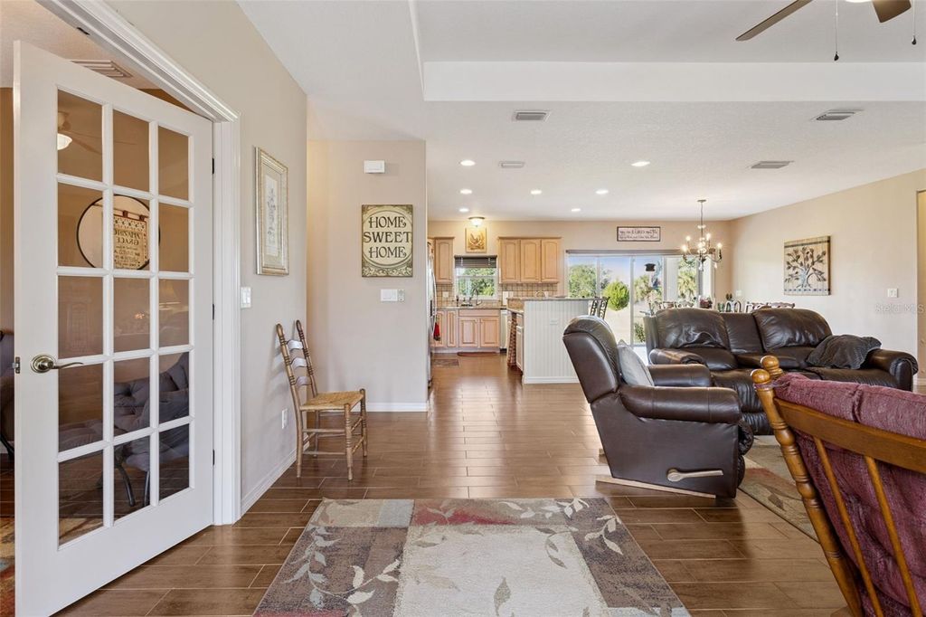 Under contract-accepting backup offers. Quiet lifestyle can be found in this beautiful custom built home on 4.62 acres. Fully fenced, gate entrance, and a pole barn. Plenty of room if you decide you want to add a swimming pool or another garage. Three bedrooms, two bathrooms and a home office. Primary bedroom & bathroom have a large walk in closet, inside laundry room, tub, shower and double vanities. All ceramic tile floors throughout the house. Great Room with WB fireplace, dining room and kitchen offer great entertainment space. Guest bathroom has a walk in shower and double sinks. House was built with energy efficiency in mind with additional insulation in the walls and attic. Open porch is on the front and back of the house. Underground utilities and county taxes. Come walk the property and you will fall in love with this home!
