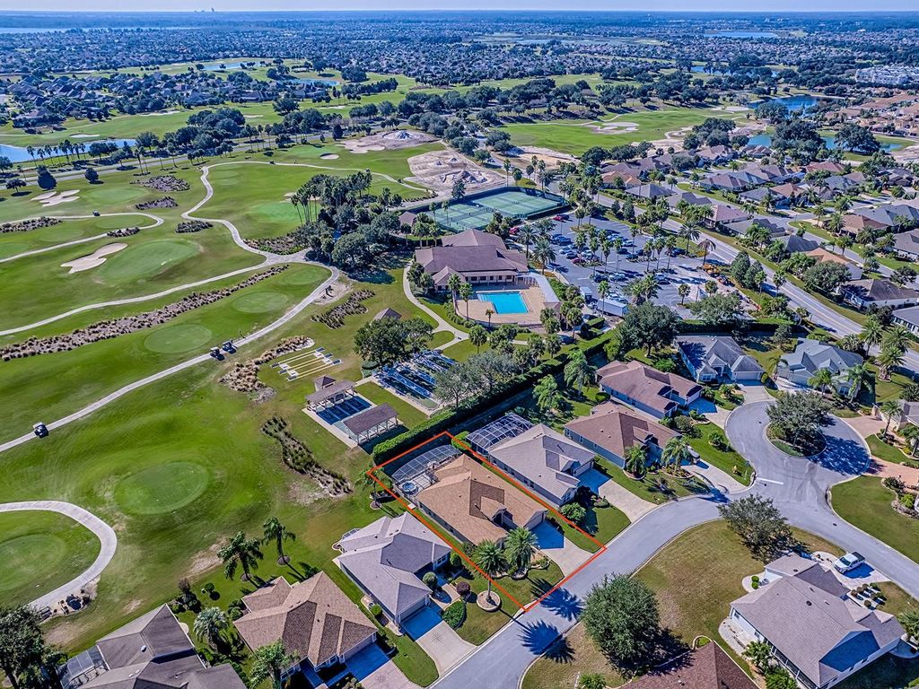 BOND PAID! This beautifully updated GOLF-VIEW, SPA home is located in the desirable Village of Hemingway and offers a thoughtful blend of comfort, style, and outdoor living. From the moment you arrive, you'll appreciate the manicured landscaping and inviting front entry with new full view decorative glass accents. The Interior is beautiful, but for many, the true highlight of the home is the expansive screened lanai, designed for year-round enjoyment. Through sliding glass doors, you'll find a COVERED OUTDOOR LIVING area complete with a full OUTDOOR KITCHEN, dining space, and seating area "” perfect for entertaining. The open cage design showcases EXPANSIVE GOLF COURSE VIEWS while the in-ground heated spa offers a relaxing place to unwind. Easy rear access to walk to and use Truman Recreation Center. MUST SEE THIS SPACE. Inside, an open floor plan is enhanced by tile flooring throughout the main living areas and vaulted ceilings that create a bright, airy feel. The kitchen features wood cabinetry, granite countertops, stainless steel appliances, and a functional layout ideal for everyday living and entertaining. The dining area flows seamlessly into the living space, making it easy to host family and friends. The spacious primary suite features vaulted ceilings, a walk-in closet, and an ensuite bathroom with dual sinks and a tiled shower. NEW Luxury Vinyl Flooring in master bedroom and walk in closet. NEW CUSTOM closet system in master bedroom. Guest bedrooms also feature vaulted ceilings, providing an open and comfortable retreat for visitors or flexible use as a home office or hobby space. Recent UPGRADES include new light fixtures throughout, a new roof (January 2024), and a new water heater (December 2023), providing added value and peace of mind. Conveniently located near Havana Country Club, executive golf courses, shopping, dining, and recreation, this home offers the lifestyle The Villages is known for. Optional turnkey furniture package and golf cart available separately.