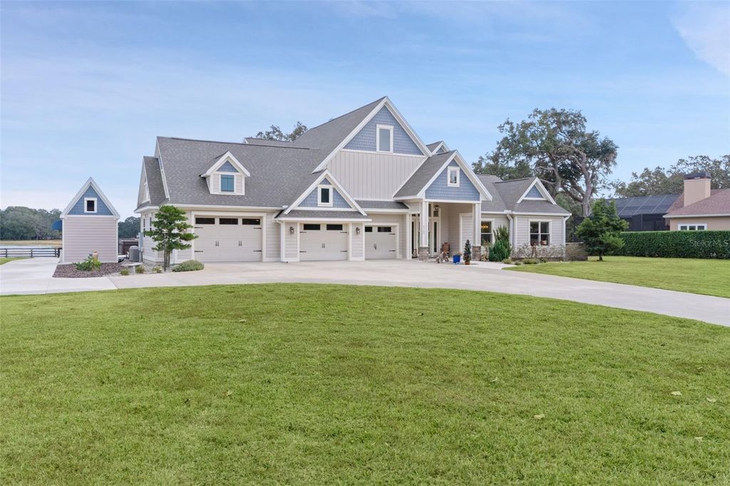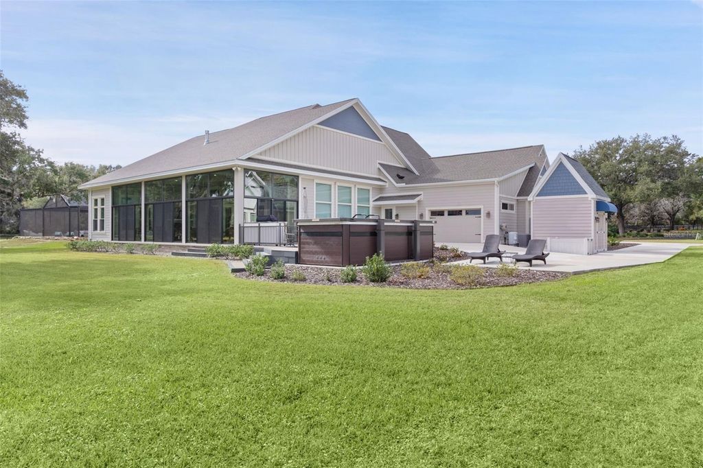 ~SMALL, PRIVATE GATED COMMUNITY~ ~PANORAMIC LAKE VIEW~ ~SELF CLEANING SWIM SPA~ ~5+ CAR GARAGE~ ~BUILT IN 2019~ ~PARTIALLY FURNISHED~ ~GLASS ENCLOSED LANAI~ ~MATCHING SHED~ ~TANKLESS WATER HEATER~ Welcome to a truly exceptional custom home in The Villages"”where luxury design and thoughtful functionality come together in one unforgettable residence. Overlooking a tranquil lake and offering GOLF CART ACCESS to The Villages; this mostly furnished home is a rare find. The expansive residence features 3 bedrooms, 3 full baths, and 2 additional half baths, creatively designed with comfort and entertaining in mind. From the moment you enter, you're greeted in the welcoming foyer with a COAT CLOSET and beautiful WHITE OAK ENGINEERED HARDWOOD FLOORING that flows throughout the home. The living room is highlighted by UPGRADED LIGHTING and opens seamlessly to an elegant dining area with SOARING CEILINGS and DESIGNER LIGHT FIXTURES"”perfect for hosting memorable gatherings. The culinarian's kitchen is stunning and functional, with QUARTZ COUNTERTOPS, TILE BACKSPLASH, LG APPLIANCES, LARGE CENTER ISLAND, and 69sf BUTLER'S PANTRY with generous storage. A SEPARATE BAR AREA adds an extra layer of sophistication for entertaining. The primary suite is a private retreat with HIGH CEILINGS, ceiling fan, and high-set windows that flood the space with natural light. Also en-suite is the OVERSIZED/CUSTOMIZED 365sf WALK-IN CLOSET providing plentiful storage. Attached is a SEPARATE 106sf WALK-IN CLOSET that doubles as your HURRICANE SAFE SPACE. The spa-like primary bath boasts PORCELAIN TILE FLOORING, beautifully TILED ROMAN SHOWER, double sinks with QUARTZ countertops, private water closet. The 2nd bedroom includes a CUSTOMIZED BUILT-IN CLOSET and is complemented by a stylish bath with PORCELAIN TILE, tiled tub/shower combination, and QUARTZ countertops. The 3rd bedroom features a custom built-in closet and ceiling fan, with an adjoining bath showcased by PORCELAIN TILE, QUARTTZ countertops, TILED ROMAN SHOWER. A well-appointed powder room with porcelain tile and QUARTZ countertops adds convenience for guests. Additional interior highlights include a LARGE INSIDE LAUNDRY ROOM with extensive cabinetry and SAMSUNG appliances, as well as high-quality fixtures and finishes throughout the home. Step into the expansive, GLASS-ENCLOSED LANAI"”finished with ceramic tile, under heat and air, DOUBLE-PANE HURRICANE-RATED WINDOWS, 2 ceiling fans, and a cozy FIREPLACE"”creating a year-round indoor/outdoor living space. Just beyond, enjoy the large, SELF-CLEANING SWIM SPA with POWER LID that raises up and down. Swim spa splits into hot tub and workout sections, perfectly positioned to take in serene lake views. Car enthusiasts and hobbyists will appreciate the OVERSIZED AIR-CONDITIONED 5+-CAR GARAGE, complete with an AUTO LIFT, workbench, powder room with a large sink, SAUNA, UPSTAIRS STORAGE, and exceptional insulation. The home also features a sprinkler system. There is an additional MATCHING SHED for storing yard equipment, she-shed, man cave or playhouse, also air-conditioned. This custom home offers unmatched craftsmanship, abundant storage, luxury amenities, all within access to the vibrant and amenity-rich lifestyle of The Villages. This is truly Florida living at its finest. Located off Hwy 466, it is close to the Polo Fields and is a short drive to shopping, dining, and medical in Southern Trace and Laurel Manor.